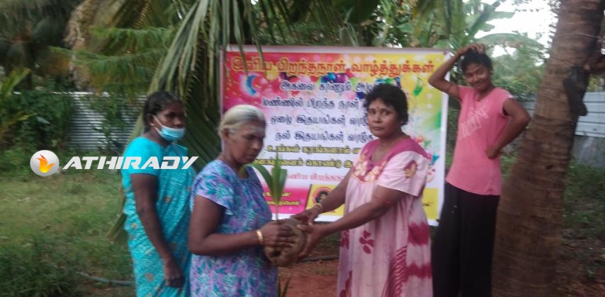 புங்குடுதீவு மண்ணை பூர்வீகமாகக் கொண்டவரும், கொழும்பு மருதானை பிரபல வர்த்தகரும், லண்டனில் அமரத்துவமடைந்தவருமான அமரர் முருகேசு சொக்கலிங்கம் அவர்களின் பாரியாரான “நாகேஷ் அக்கா” என அன்போடு அழைக்கப்படும் அமரர்.திருமதி சீதேவிப்பிள்ளை சொக்கலிங்கம் அன்னையின் பிறந்தநாளை முன்னிட்டு பயன்தரு தென்னை மரக்கன்றுகள் இன்றையதினம் வழங்கி வைக்கப்பட்டது.