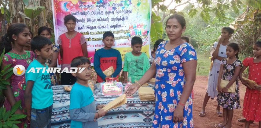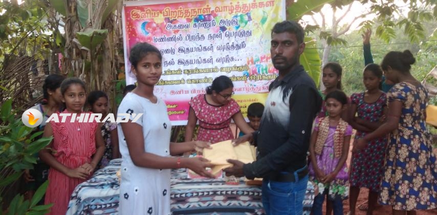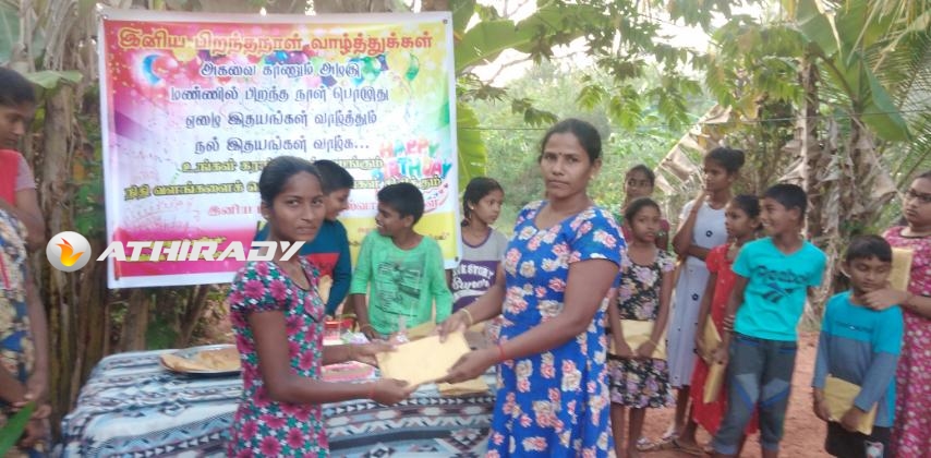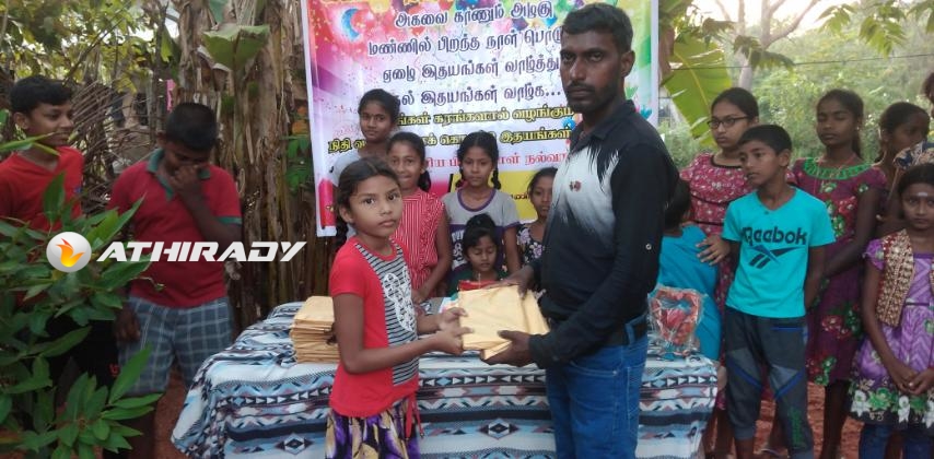 அதேநேரம் திருமதி மீரா யோகலிங்கம் அவர்களது நிதிப் பங்களிப்பில் பிறந்தநாள் நிகழ்வில் கலந்து கொண்ட மாணவ மாணவியர்களுக்கும், கற்றல் உபகரணங்கள் வழங்கி வைக்கப்பட்டது..