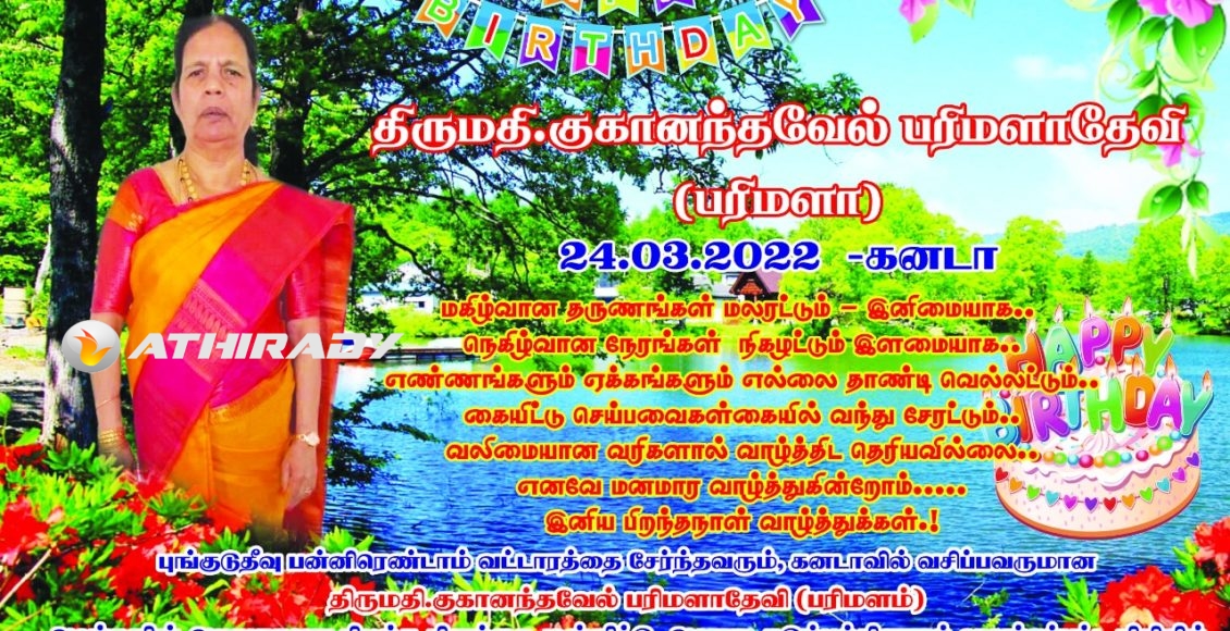 கனடா பரிமளா அவர்களின் பிறந்தநாளை முன்னிட்டு, பல்வேறு உதவிகள்.. (வீடியோ, படங்கள்) புங்குடுதீவு பன்னிரெண்டாம் வடடாரத்தை சேர்ந்தவரும், கனடாவில் வசிப்பவருமான “பரிமளா” என அன்புடன் அழைக்கப்படும் திருமதி.குகானந்தவேல் பரிமளாதேவி அவர்களின் அறுபதாவது பிறந்த தினம் இன்று பிறந்தநாள் வாழ்த்துப் பாடி, கேக் வெட்டிக் கொண்டாடப்பட்டது. புங்குடுதீவு பன்னிரெண்டாம் வட்டாரத்தை சேர்ந்த அமரர்கள் சின்னத்தம்பி செல்லம்மா தம்பதிகளின் மூத்த புதல்வியும், அமரர் குகானந்தவேல் அவர்களின் துணைவியாருமான கனடாவில் வசிக்கும் “பரிமளா” என அன்புடன் அழைக்கப்படும், திருமதி.குகானந்தவேல் பரிமளாதேவி அவர்களின் … Continue reading கனடா பரிமளா அவர்களின் பிறந்தநாளை முன்னிட்டு, பல்வேறு உதவிகள்.. (வீடியோ, படங்கள்)