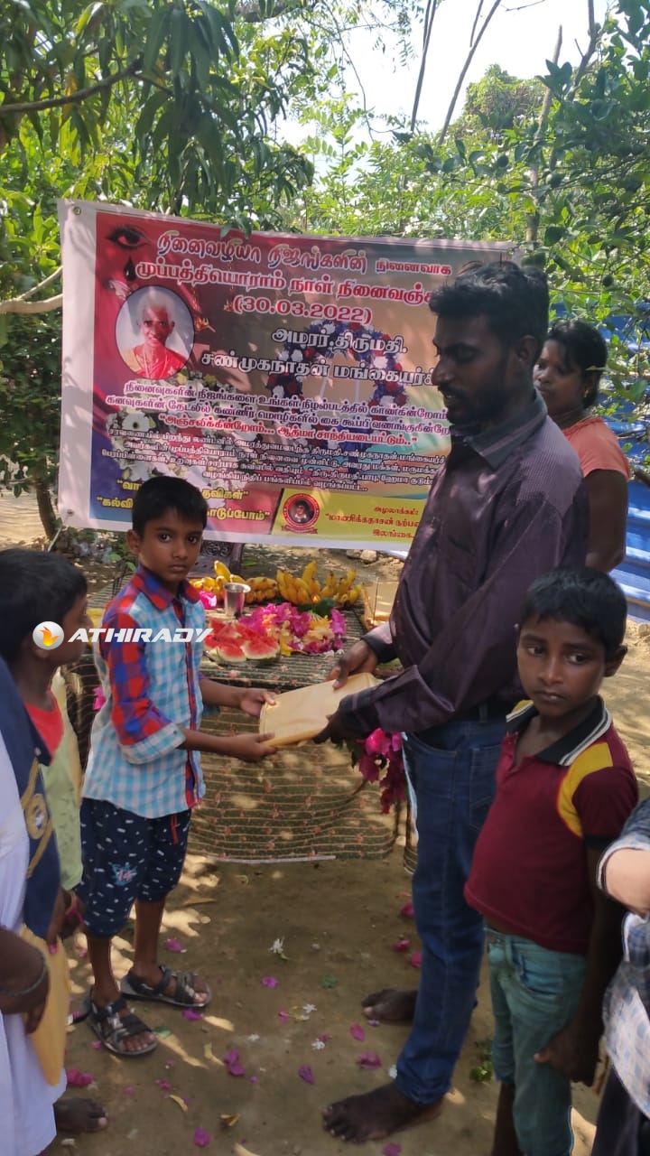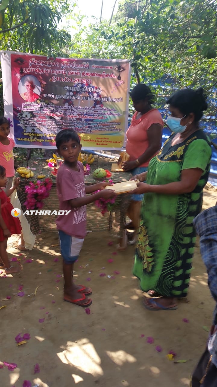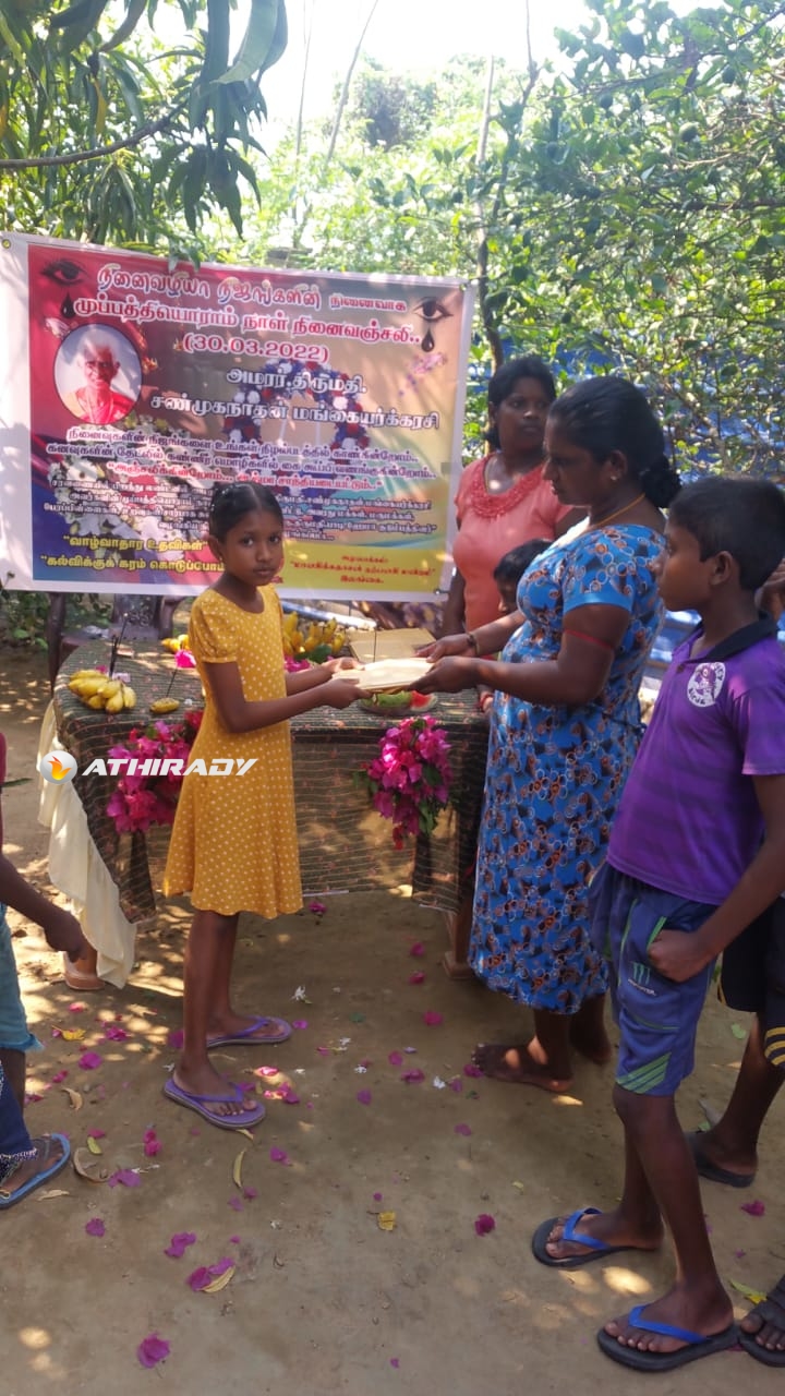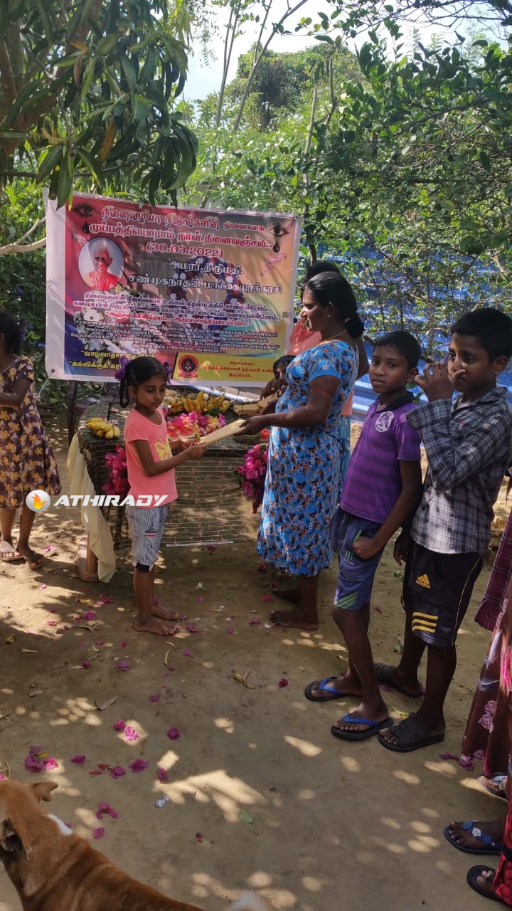 சரவணையில் பிறந்து லண்டனில் அமரத்துவமடைந்த திருமதி.. சண்முகநாதன் மங்கையர்க்கரசி அவர்களின் முப்பத்தியொராம் நாள் நினைவை முன்னிட்டு, அவரது மக்கள், மருமக்கள், பேரப்பிள்ளைகள், உறவுகள் சார்பாக சுவிஸில் வதியும் “திரு.திருமதி.பாபு, ஹேமா குடும்பத்தினர்” வழங்கிய நிதிப் பங்களிப்பில் இன்று காலை மட்டக்களப்பு “சக்தி இல்ல” மாணவிகளுக்கு விசேட உணவு வழங்கப்பட்டதை அடுத்து, இன்றுகாலை வவுனியா கற்பகபுரம் மூன்றாம் ஒழுங்கை பிரதேசத்தில் மாணவ மாணவிகளுக்கான கற்றல் உபகரணங்கள் வழங்கப்பட்டது.