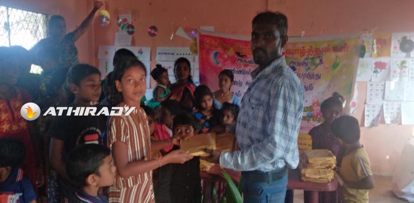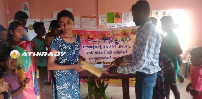 இங்கே வாழும் அநேக குடும்பங்கள் வறிய நிலையிலே தான் உள்ளார்கள். இவ்வாறான சூழ்நிலையில் வாழும் கிராமத்து மாணவ மானிகளுக்கு திருமதி.செல்வி சுதாகரன் அவர்களின் பிறந்தநாளான இன்று அவருடைய நிதிப்பங்களிப்பில் மாணவர்களுக்கும் கற்றல் உபகரணங்கள் “மாணிக்கதாசன் நற்பணி மன்றத்தினூடாக” வழங்கி வைக்கப்பட்டது. அத்துடன் அக்கிராம பெரியோர்கள் சிலருக்கு பயன்தரு தென்னைமரக் கன்றுகளும் வழங்கி வைக்கப்பட்டது.