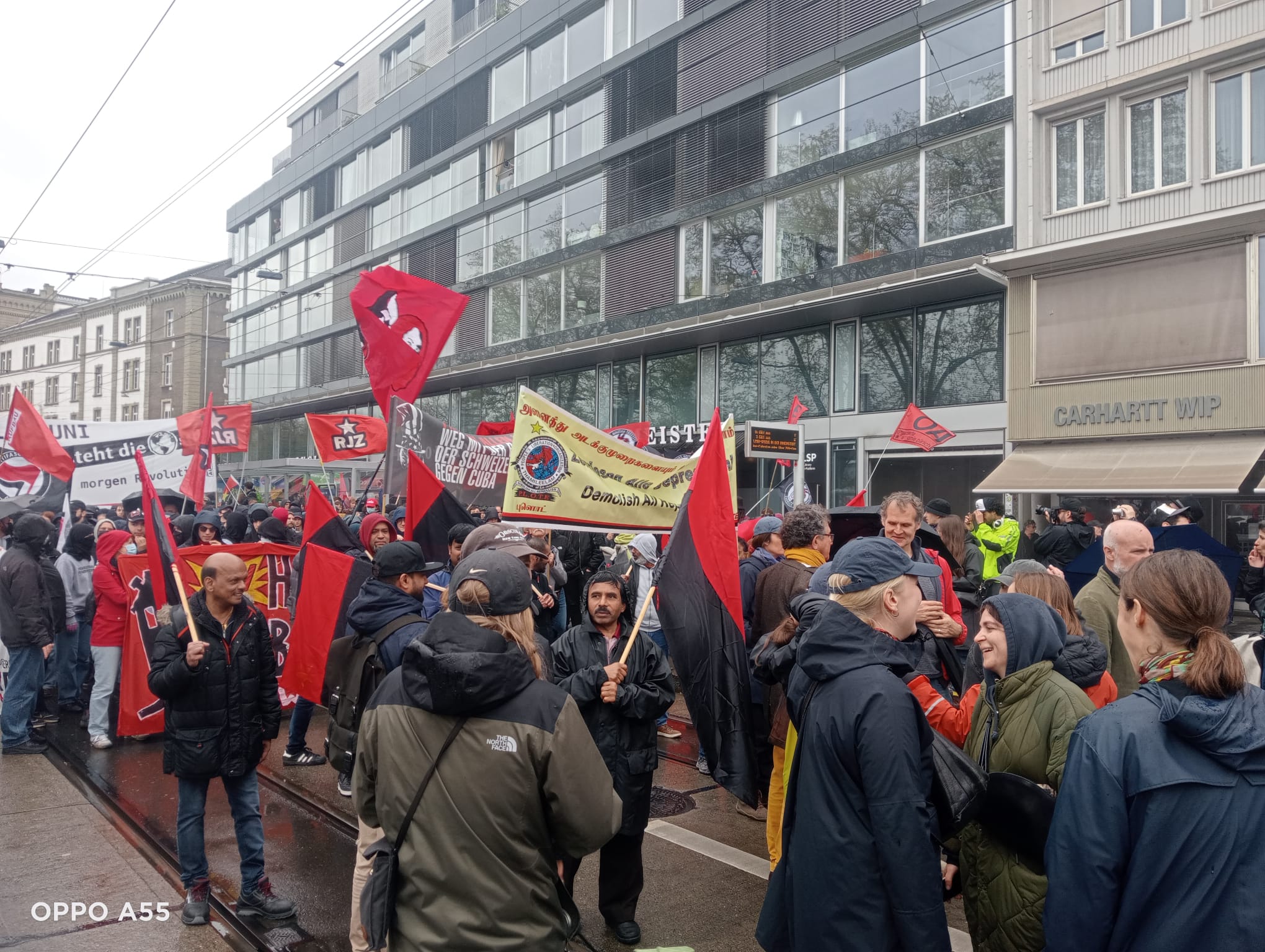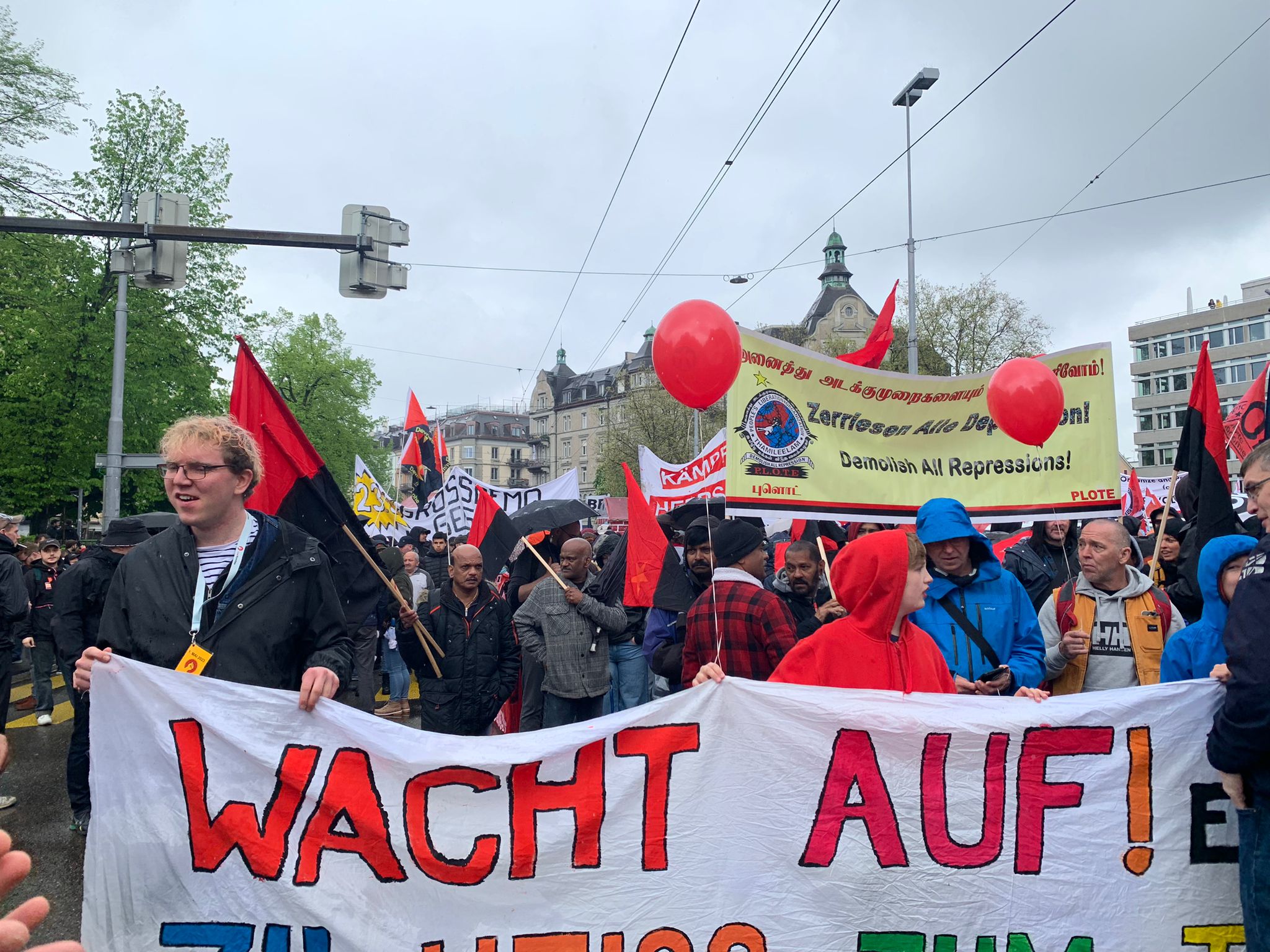 ஊர்வலத்தில் கலந்து கொண்டு தமிழீழ மக்கள் விடுதலைக் கழகத்தின் (புளொட்) சுவிஸ் கிளைத் தோழர்கள் “அனைத்து அடக்குமுறைகளையும் உடைத்த்தெறிவோம்” உழைக்கும் மக்களின் உரிமைக்காக போராடுவோம்” போன்ற பல கோஷங்களுடன், உழைக்கும் வர்க்கத்தின் கொள்கை மீதான பற்றுதலுக்கு ஆதரவளித்து சென்றதைக் காணக் கூடியதாக இருந்தமை குறிப்பிடத்தக்கது.