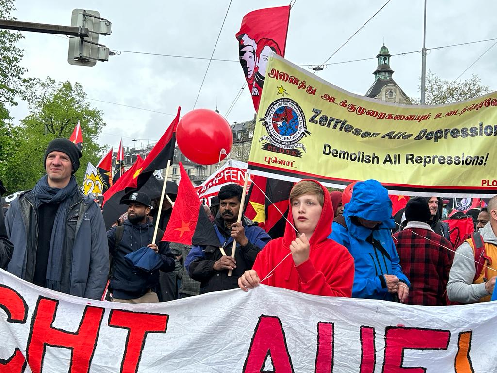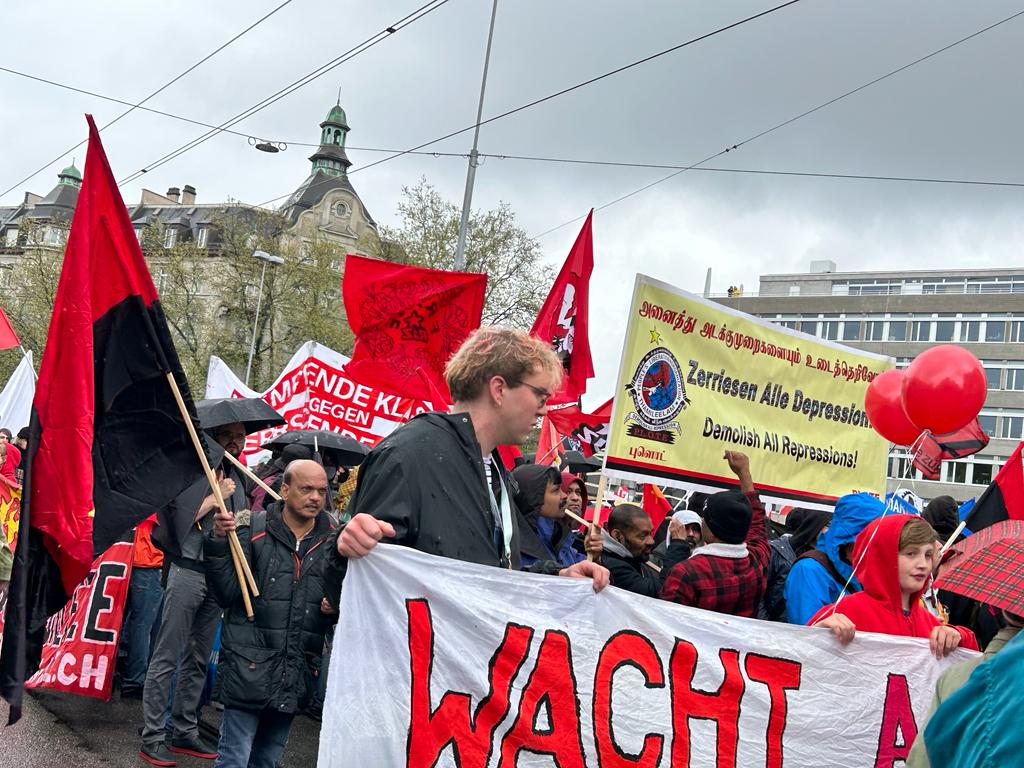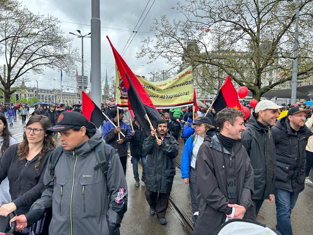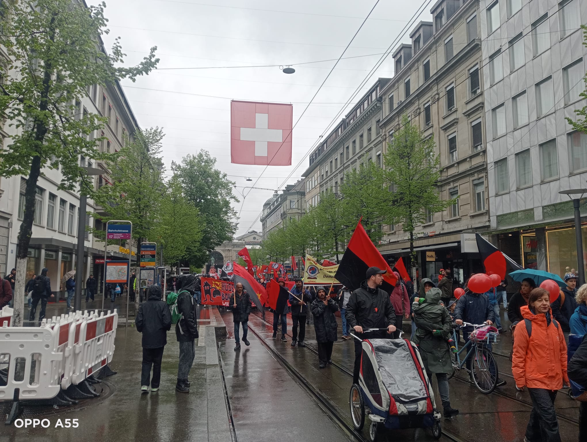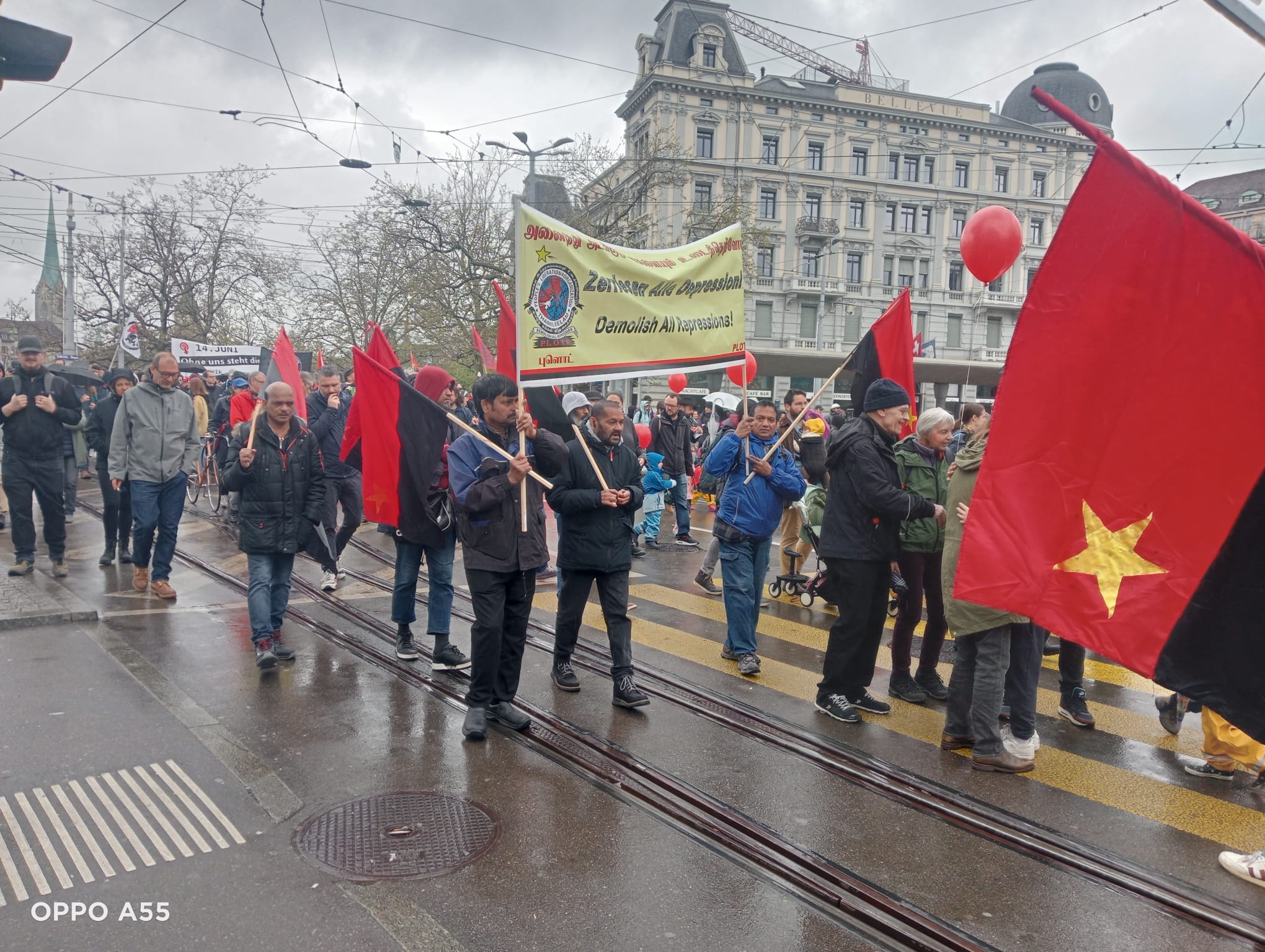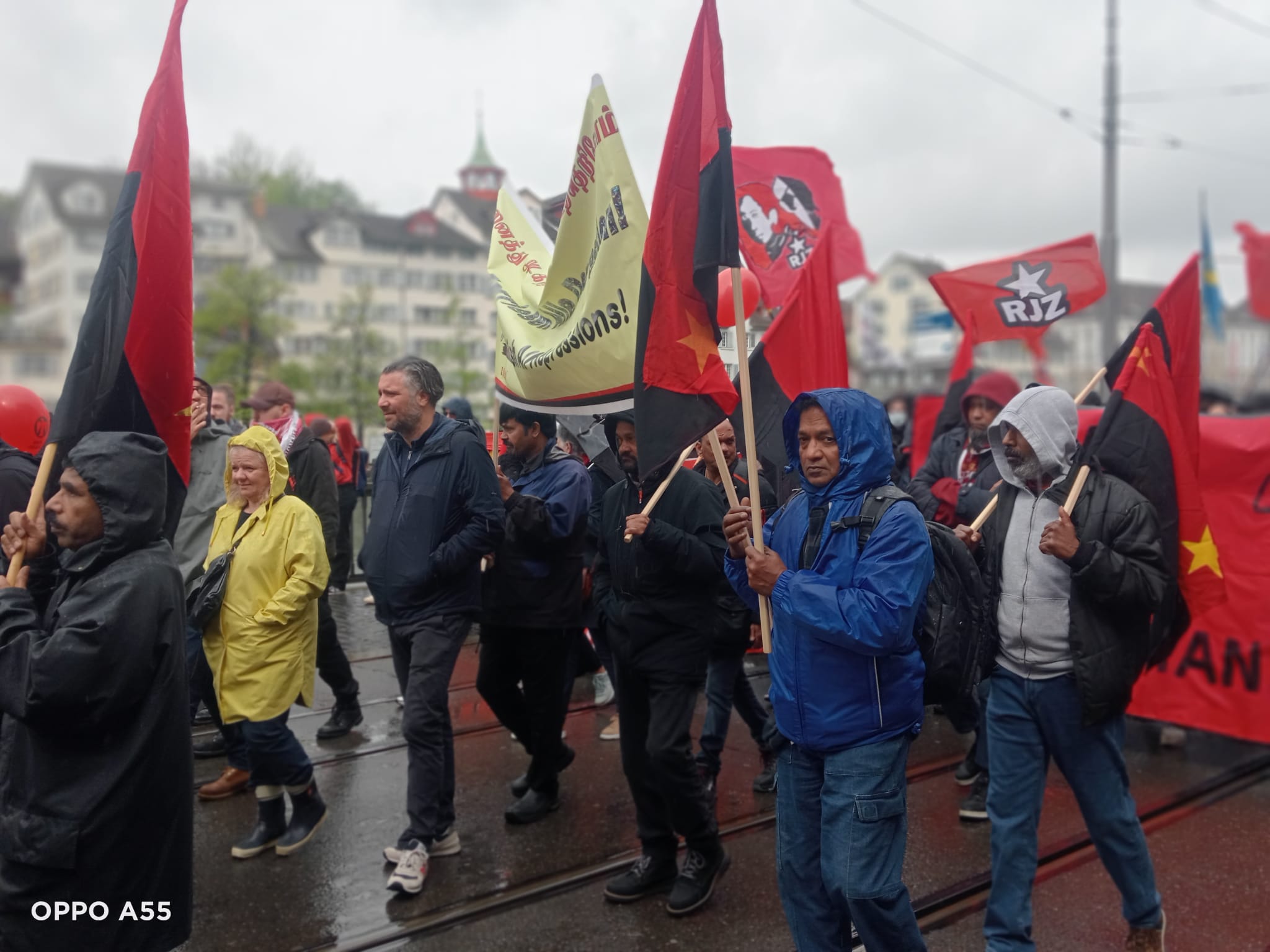 சுவிஸ் சோசலிசக் கட்சியின் ஏற்பாட்டில் இன்றையதினம் பலத்த மழைக்கு மத்தியில் நிகழ்த்தப்பட்ட மே தின ஊர்வலம் சுவிஸ் இடதுசாரி அமைப்புக்கள், முற்போக்கு முன்னணிகளுடன் சமூக அமைப்புகளுடனும், சுவிஸில் வாழும் பல நாட்டு மக்களின் விடுதலை அமைப்புகளும், சமூக மேம்பாட்டு அமைப்புகளும் இணைந்து நிகழ்த்தப்பட்டது.