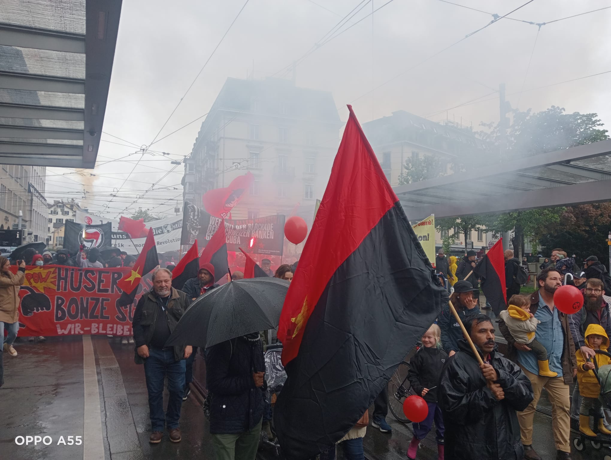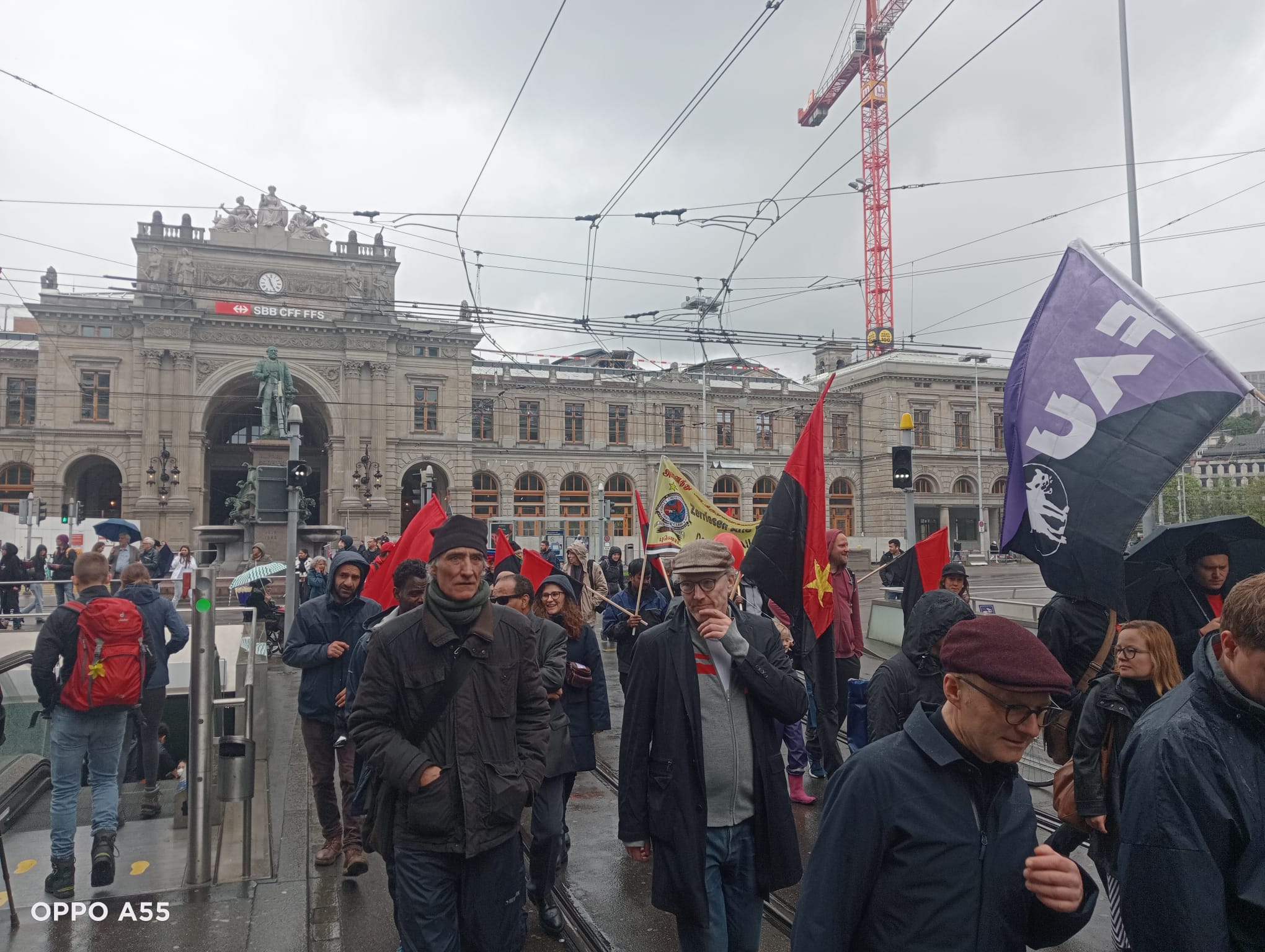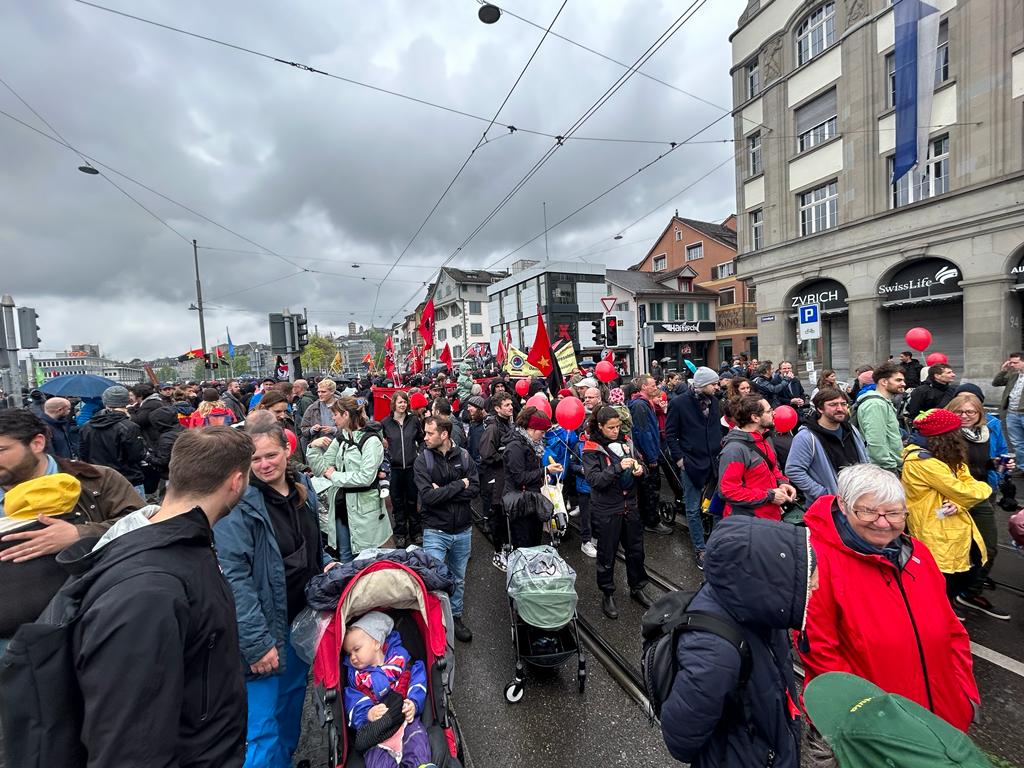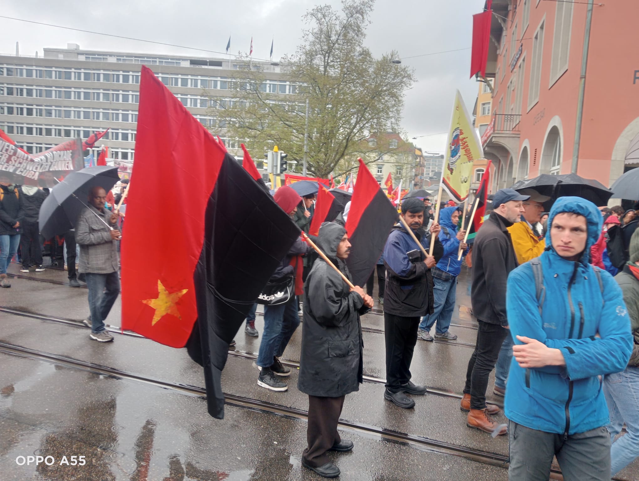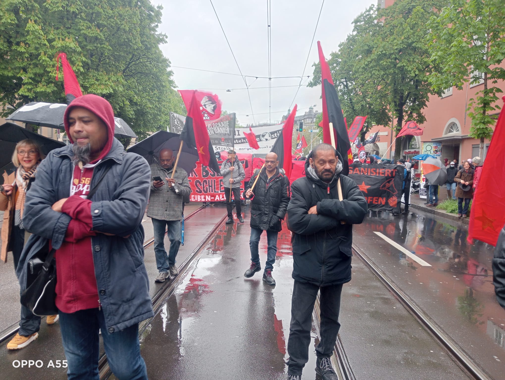 சுவிஸ் சோசலிசக் கட்சியின் ஏற்பாட்டில் இன்றையதினம் பலத்த மழைக்கு மத்தியில் நிகழ்த்தப்பட்ட மே தின ஊர்வலம் சுவிஸ் இடதுசாரி அமைப்புக்கள், முற்போக்கு முன்னணிகளுடன் சமூக அமைப்புகளுடனும், சுவிஸில் வாழும் பல நாட்டு மக்களின் விடுதலை அமைப்புகளும், சமூக மேம்பாட்டு அமைப்புகளும் இணைந்து நிகழ்த்தப்பட்டது.