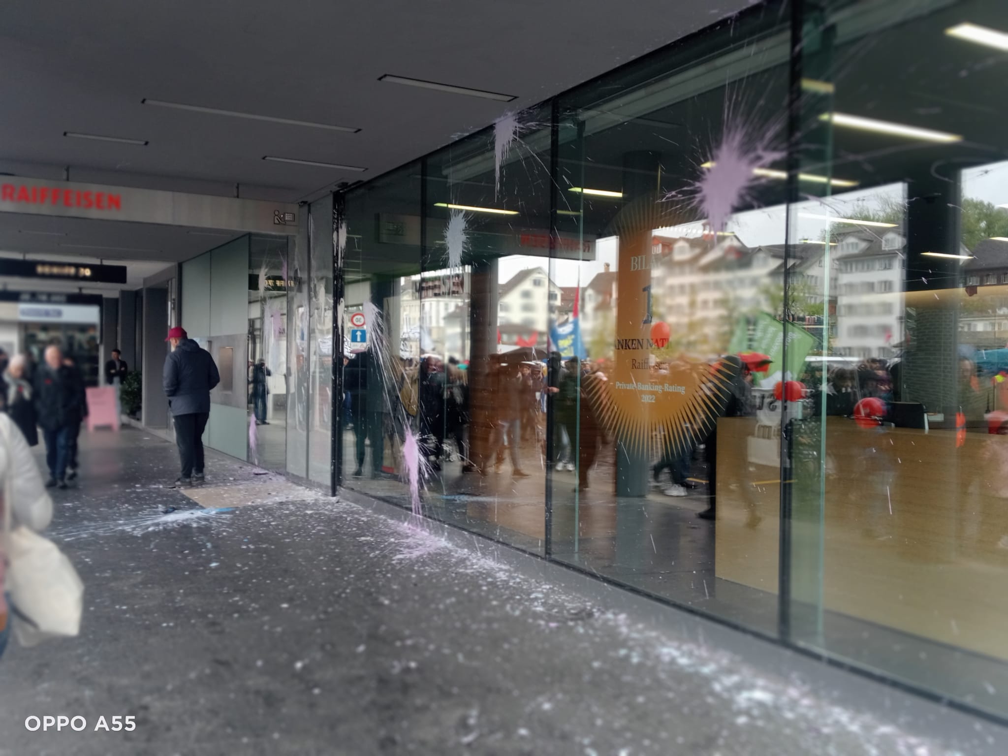 இதேவேளை வழமை போல் சுவிஸ் மேதின ஊர்வலத்தின் போது, அதிதீவிர இடதுசாரி கொள்கையுடைய சுவிஸ் நாட்டு இளையோர், யுவதிகளினால் சுவிஸ் வங்கிகள், சுவிஸில் உள்ள அந்நிய நாட்டு நிறுவனங்கள் மீது தாக்குதல் நடத்துவதினால், இம்முறையும் சுவிஸ் பொலிஸாரினால் பலத்த பாதுகாப்பு ஏற்பாடு செய்யப்பட்டு இருந்த நிலைமையிலும் சுவிஸ் வங்கிகள் மீது இவ்வூர்வலகத்தின் போது தாக்குதல் நடத்தப்பட்டது.
