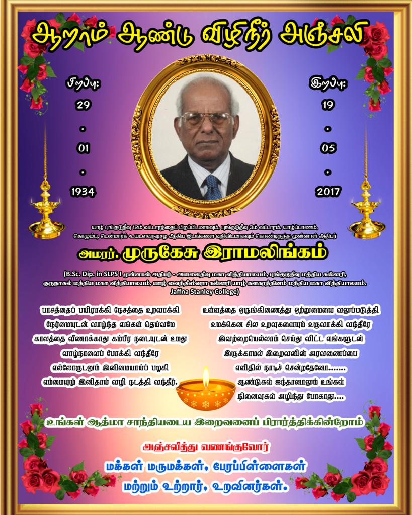 ஆறாமாண்டு விழிநீர் அஞ்சலி.. அமரர். முருகேசு இராமலிங்கம்