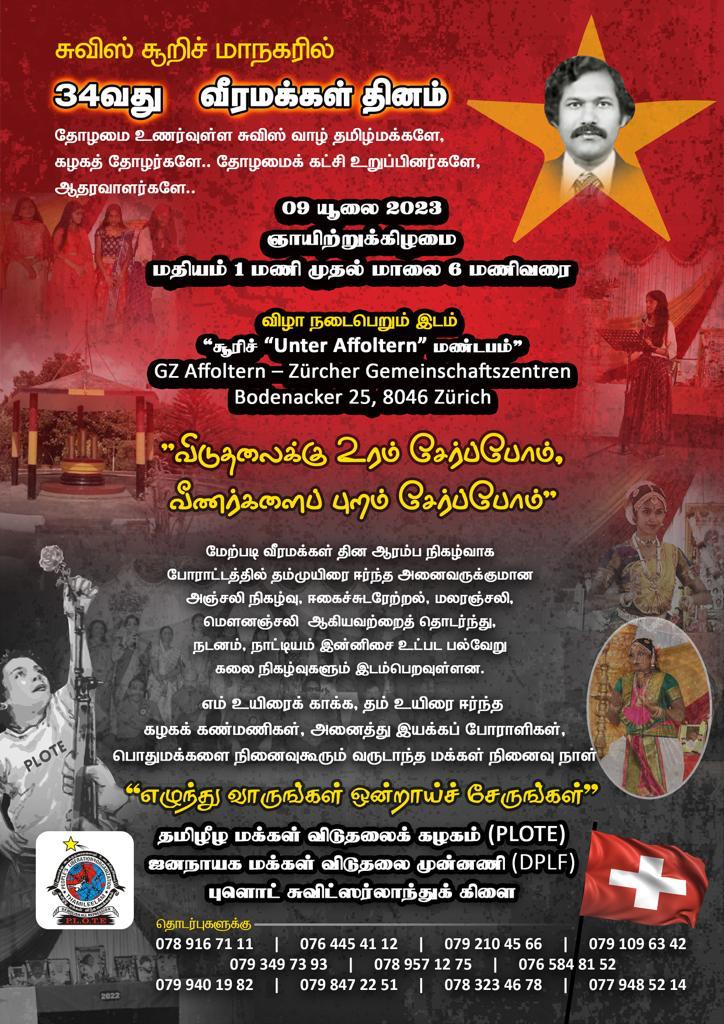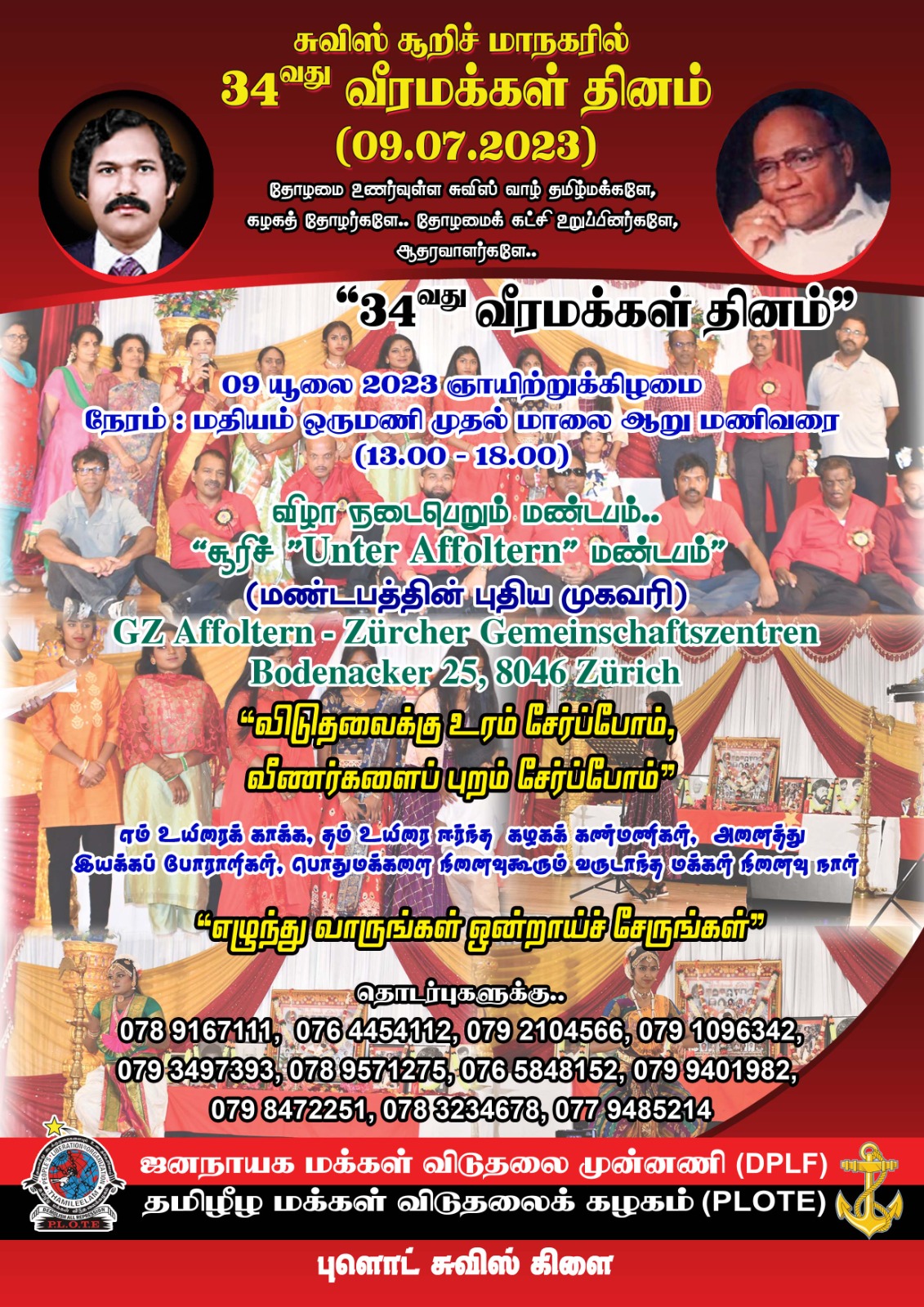 09.07.2023 இல் சுவிஸ் சூறிச் மாநகரில் “புளொட்” 34 வது வீரமக்கள் தினம்.. (அறிவித்தல்)