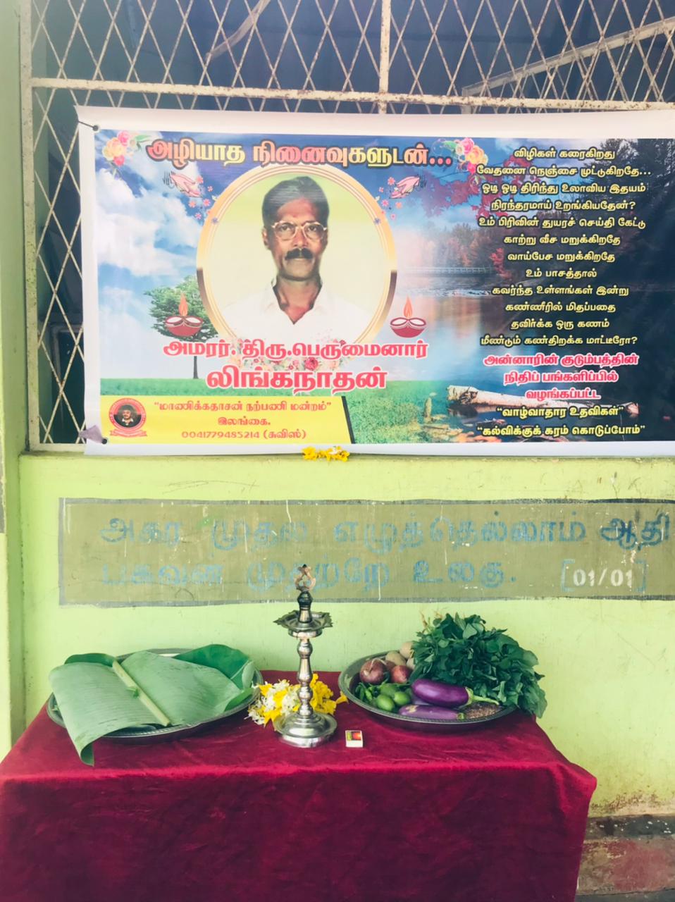 இன்று மதியம், “மாணிக்கதாசன் நற்பணி மன்றம்” அமரர் பெருமைனார் லிங்கநாதன் அவர்களது 10 ஆம் ஆண்டு சிரார்த்த ஆண்டுத் திவசத்தை முன்னிட்டு வவுனியா பாரதிபுரம் தமிழ் கலவன் பாடசாலை மாணவச் செல்லங்களுடன் இணைந்து இன்று அவரது நினைவாக விசேட மதிய உணவு வழங்கி வைக்கப்பட்டது.