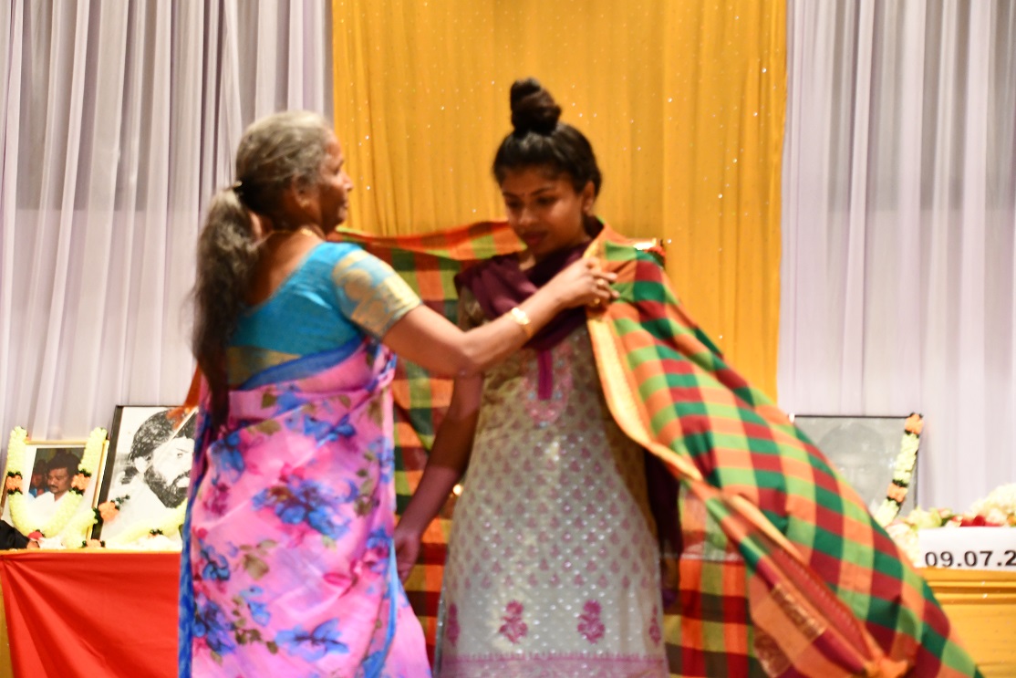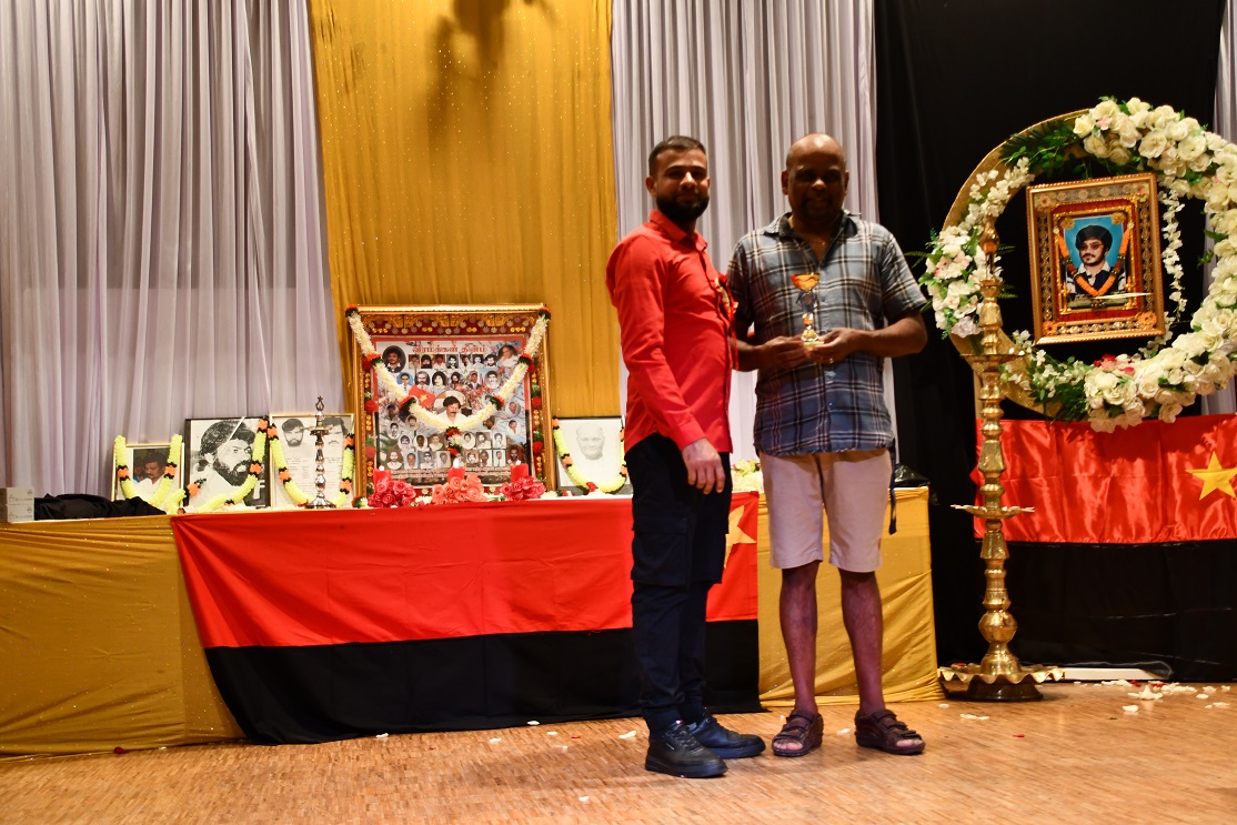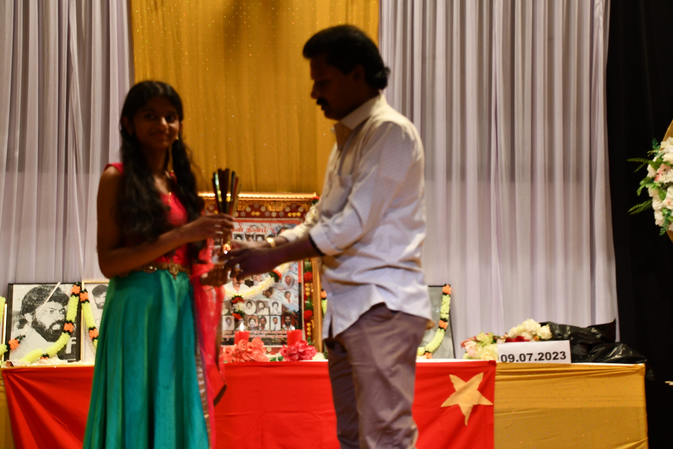 இதனைத் தொடர்ந்து திருமதி.வதனாம்பாள் புஷ்பானந்தசர்மா செல்வி.கேதாரணி இரட்ணகுமார் உட்பட கலைநிகழ்வுகள் தந்தோர் உட்பட பல்வேறு நாடுகளிலும் வந்து கலந்து கொண்ட தோழர்களும் கழக சுவிஸ் கிளையின் தோழர்கள் அனைவராலும் பரிசில்கள் வழங்கிக் கௌரவிக்கப்பட்டனர்.
