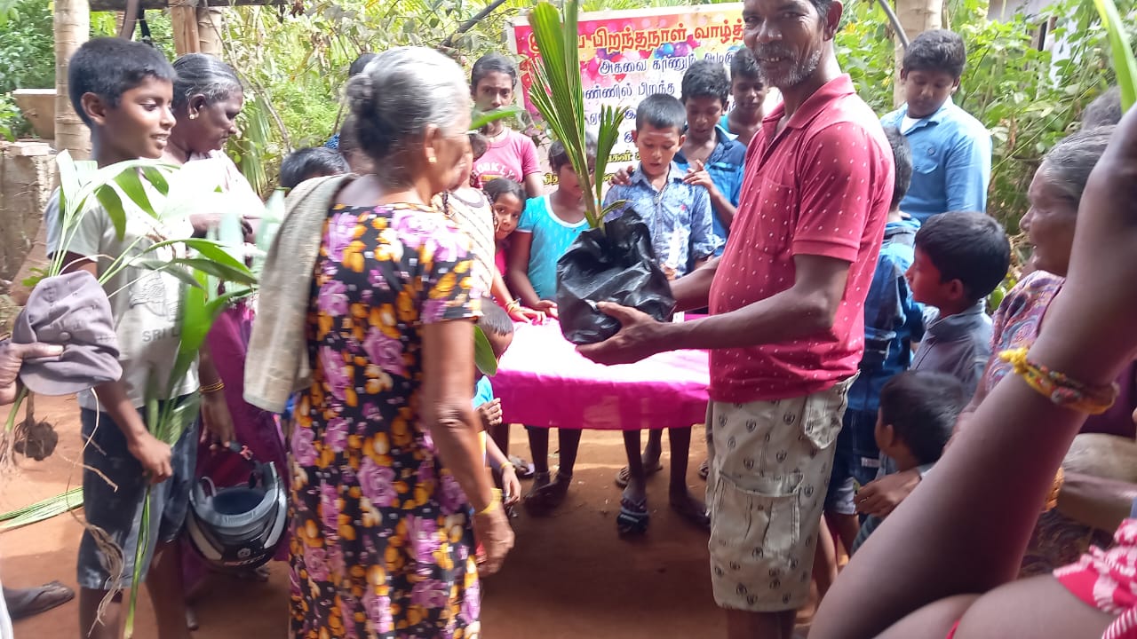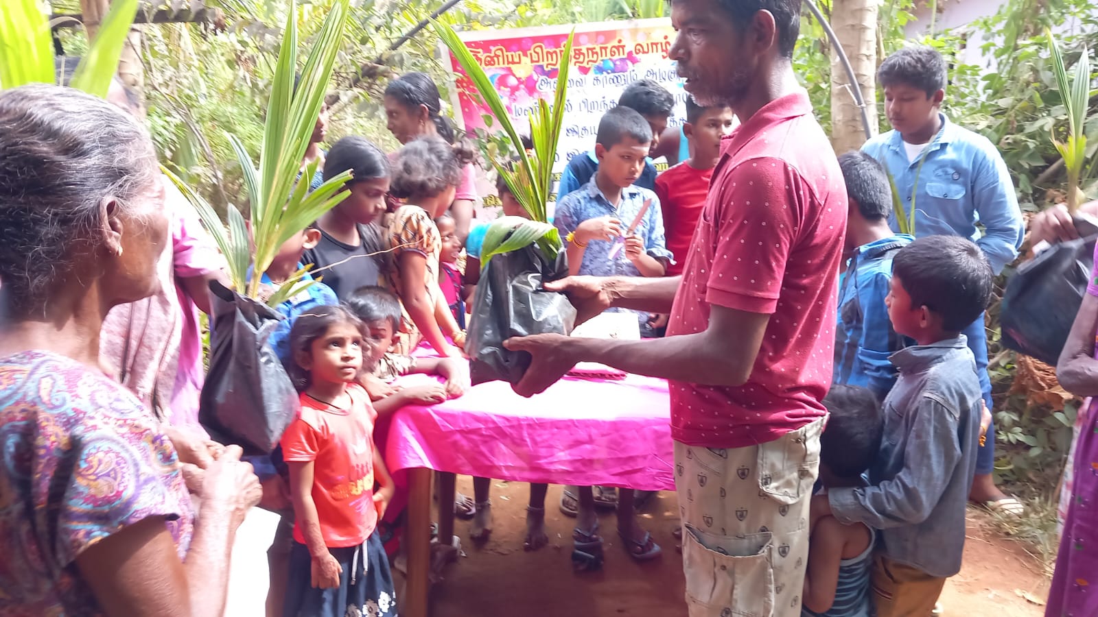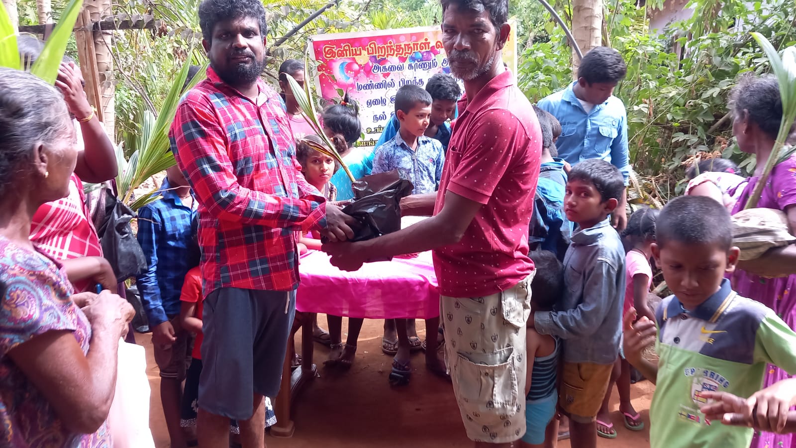 செல்வன்.சங்கீத்தின் பிறந்தநாளை முன்னிட்டு சங்கீத்தின் பெற்றோர்களான திரு.திருமதி ஆபிரகாம்லிங்கம் (இந்திரன்) கவிதா தம்பதிகளின் நிதிப்பங்களிப்பில் அக்கிராமத்தில் இருந்து கலந்து கொண்ட மக்களின் விருப்பத்துக்கு இணங்க பயன்தரு நல்லின தென்னைமரக் கன்றுகள் மாணிக்கதாசன் நற்பணி மன்றத்தினால் வழங்கி வைக்கப்பட்டது.