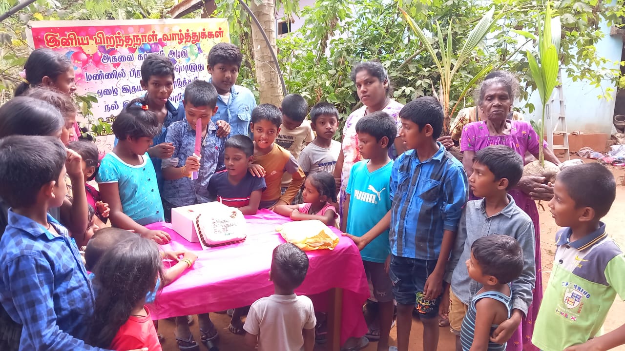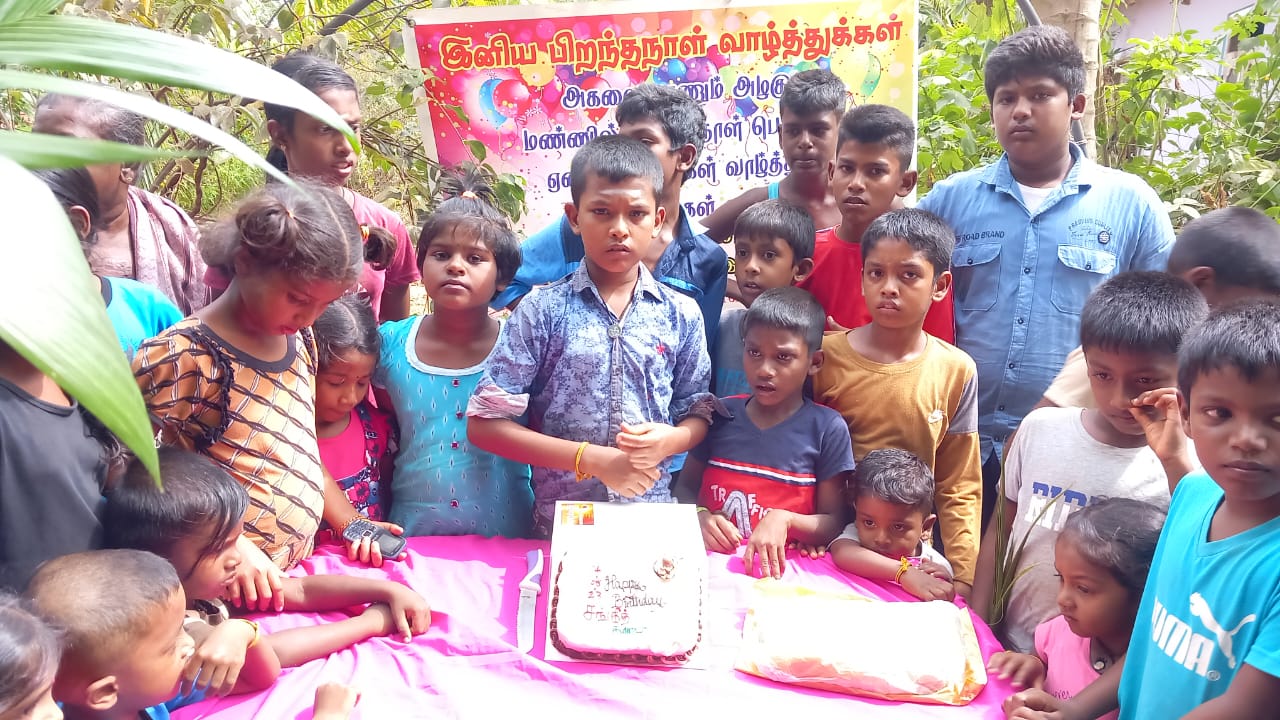 கனடாவில் வசிக்கும் திரு.திருமதி.ஆபிரகாம்லிங்கம் (இந்திரன்) கவிதா தம்பதிகளின் சிரேஷ்ட செல்வப் புதல்வன் சங்கீத் அவர்களின் பிறந்தநாள் வைபகம் வன்னி எல்லைக் கிராமமொன்றில் “மாணிக்கதாசன் நற்பணி மன்றத்தின்” வவுனியா மாவட்ட அமைப்பாளர் திரு.பெருமாள் சஞ்சீவன் அவர்களின் ஒழுங்கமைப்பில் சிறுவர் சிறுமியர் தொடக்கம் பெரியோர், முதியோர் வரை கலந்து சிறப்பித்து கேக் வெட்டி பாட்டிசைத்து கொண்டாடினர்.