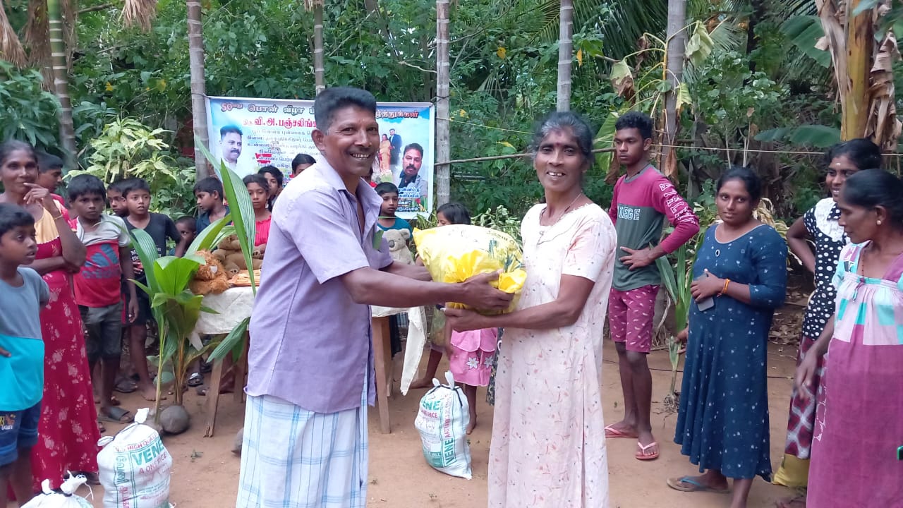 அந்தவகையில் இன்றைய நாளில் திரு.பஞ்சலிங்கம் அவர்களின் பிறந்தநாள் கொண்டாட்டத்தோடு பிறந்தநாளை நிறைவு செய்யாமல் வாழ்வாதார நிலையில் மிகவும் பாதிக்கப்பட்ட விசேட தேவையுடையோர், வயோதிபர்கள், நாளாந்த வருமானத்தை இழந்து தனித்து வாழ்வோர் என பலதரப்பட்ட சூழ்நிலையில் வாழ்வோருக்கு பெறுமதியான உலருணவுப் பொதிகளும், பயன்தரு நல்லினத் தென்னை மரக்கன்றுகளும் வழங்கப்பட்டமை அனைவராலும் பாராட்டப்பட்டது.