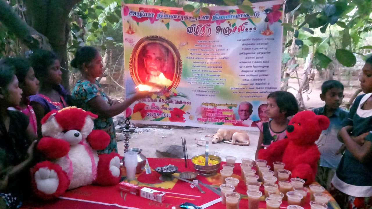 புங்குடுதீவைச் சேர்ந்தவரும், லண்டனில் வாழ்ந்து அமரத்துவமடைந்தவருமான “நாகேஷ் அக்கா” எனும் திருமதி. சொக்கலிங்கம் சீதேவிப்பிள்ளை அவர்களின் பன்னிரெண்டாவது நினைவாண்டில் மோட்ஷ பிரார்த்தனையுடன் நிகழ்வில் கலந்து கொண்ட அனைவருக்கும் “நினைவுக் கஞ்சியும்” வழங்கி வைக்கப்பட்டது.