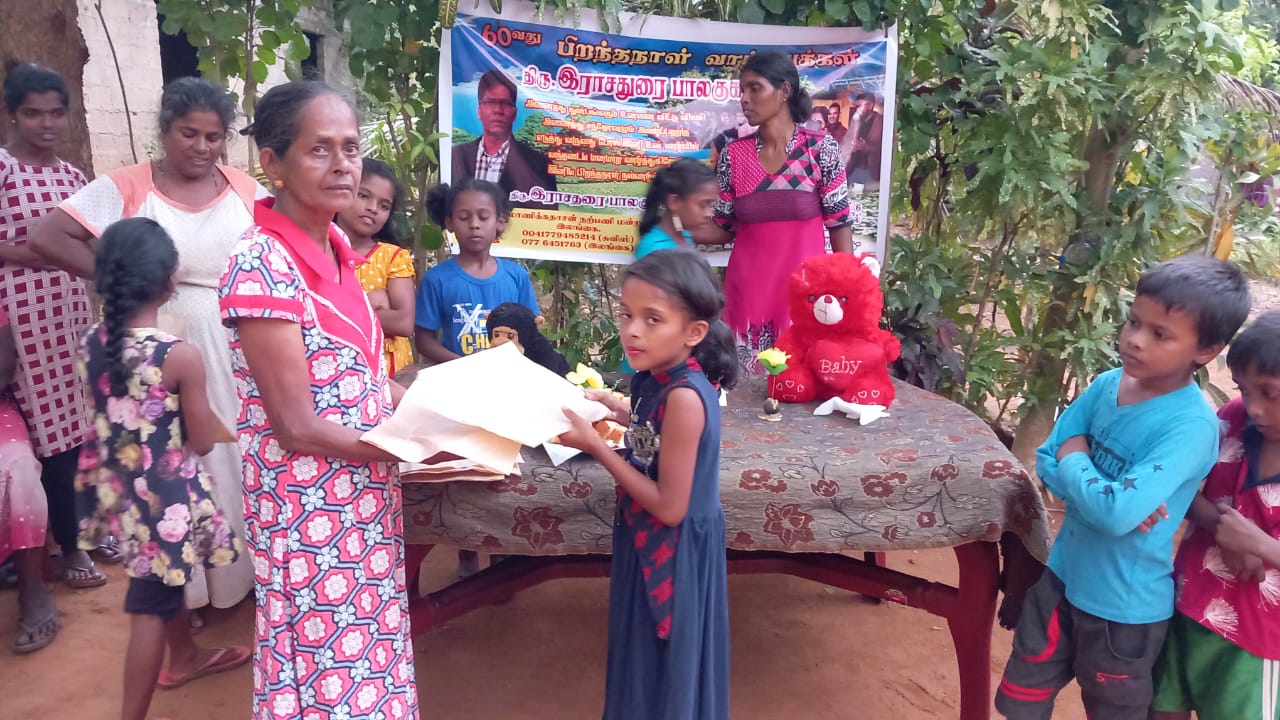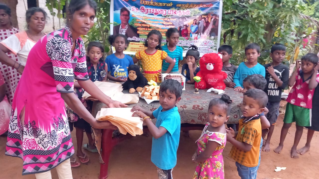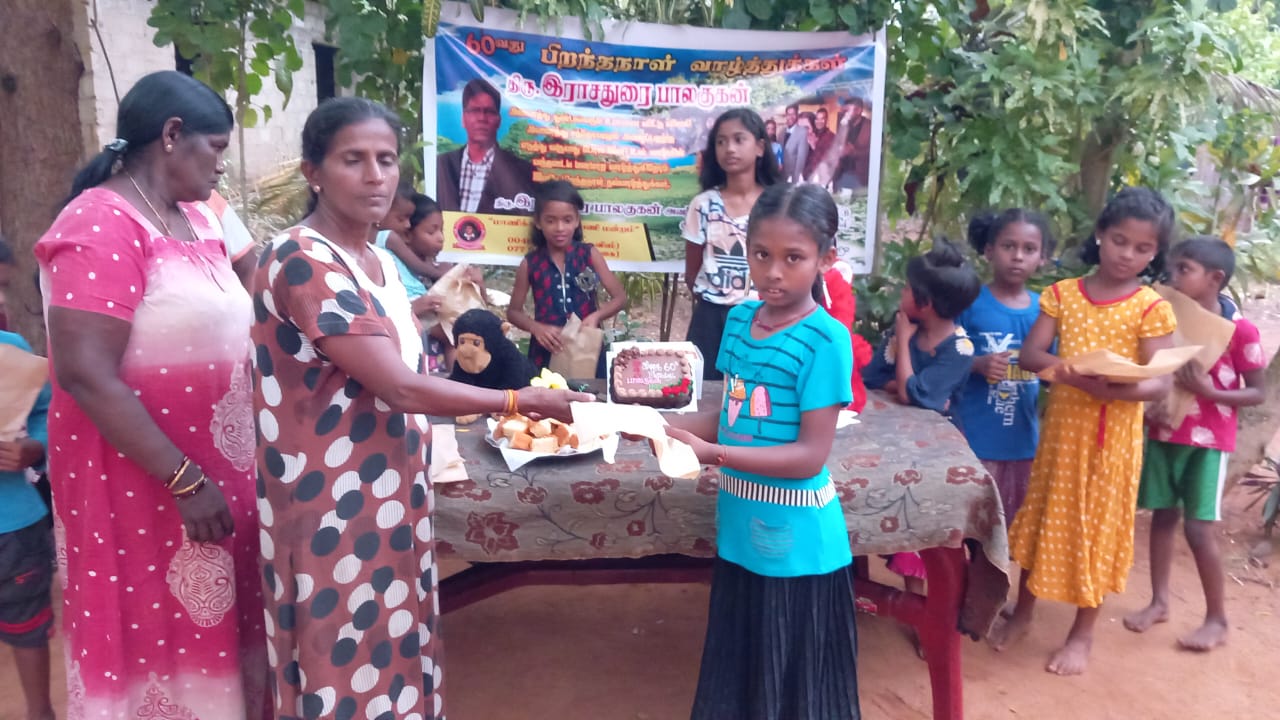 அந்த வகையில் இன்றைய தினம் வவுனியா எல்லைக் கிராமப் பிரதேசத்தில் மாணவர்கள் சிறுவர், சிறுமியர் அவர்களின் பெற்றோர்கள், அக்கிராம பொதுமக்கள் என பெருமளவானவர்கள் கலந்து கொண்டு திரு பாலகுகன் அவர்களது அறுபதாவது மணிவிழா பிறந்தநாள் கொண்டாட்ட நிகழ்வில் பங்கு கொண்டனர்.