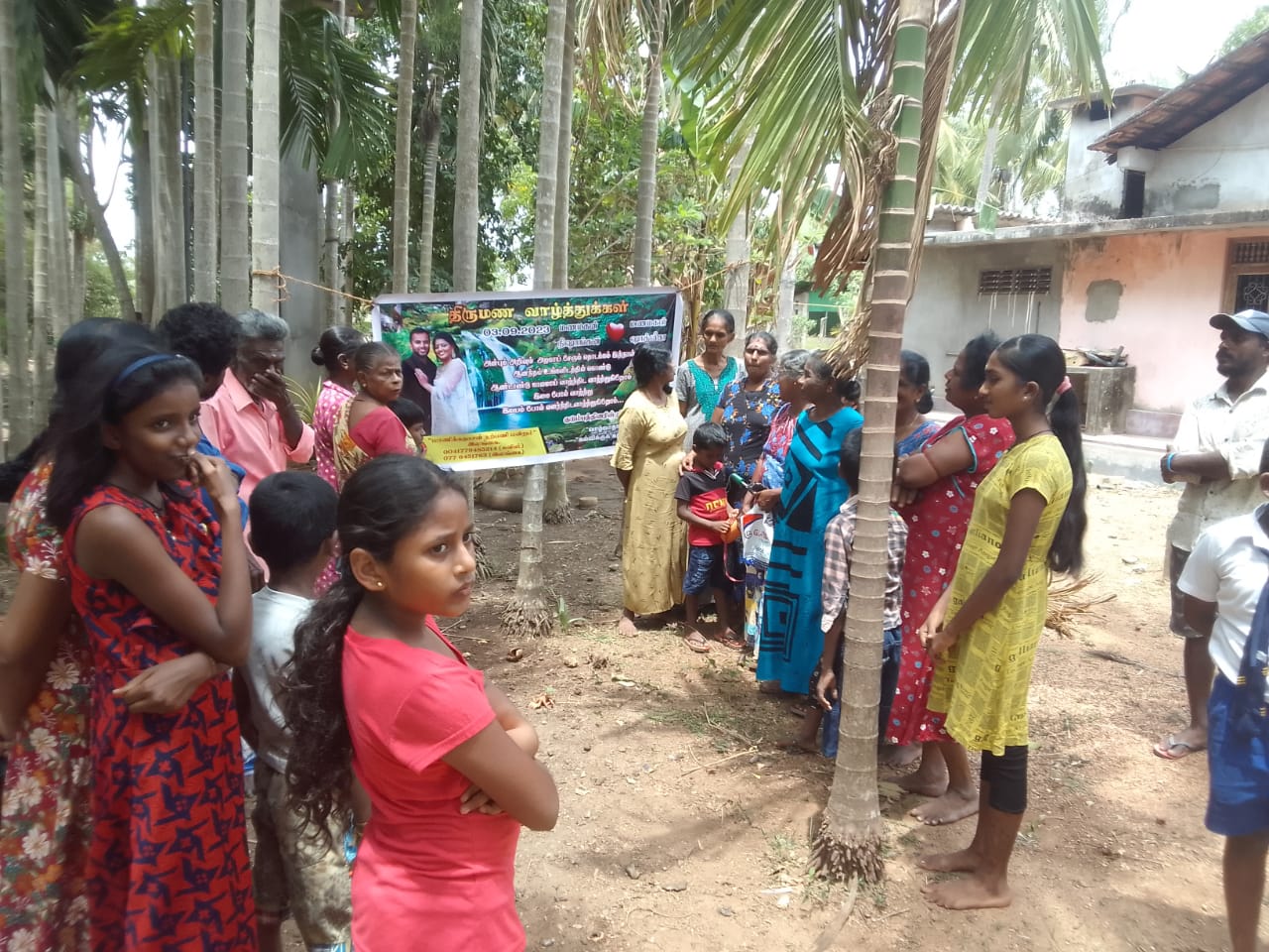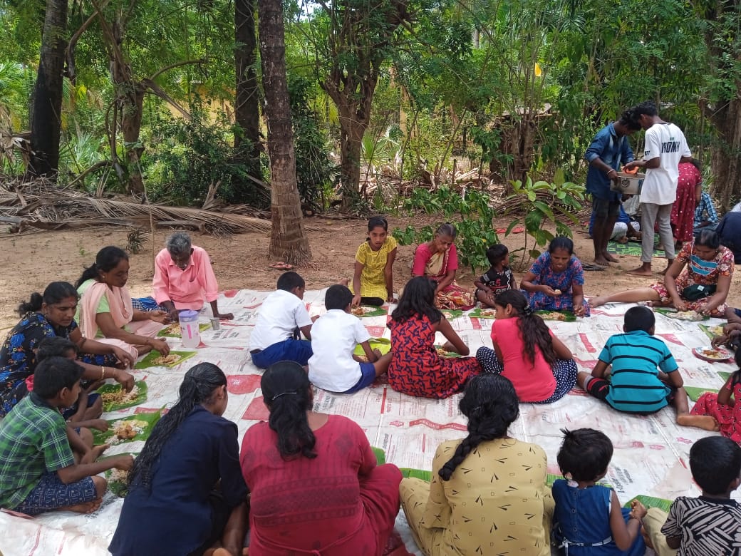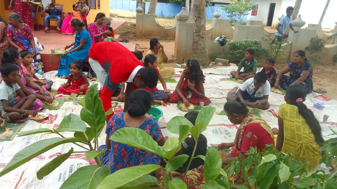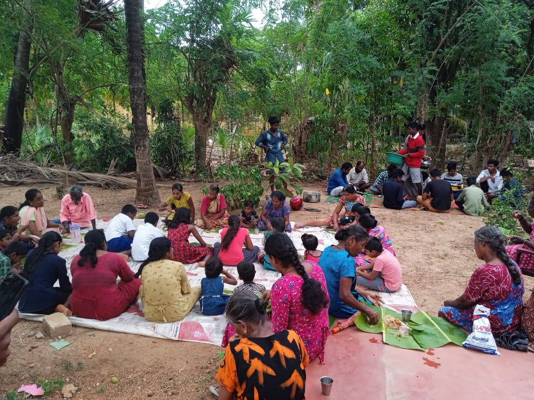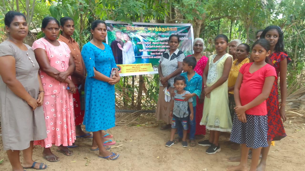மிகவும் பின்தங்கிய கிராமத்தில் ஒழுங்கமைக்கப்பட்ட திருமண மதிய அசைவ விருந்துணவு நிகழ்வில் அநேக கிராம மக்கள், சிறுவர், சிறுமியர்கள் என பலரும் கலந்து கொண்டு புதுமணத் தம்பதிகளை ஆசீர்வதித்து வாழ்த்திச் சென்றனர்.