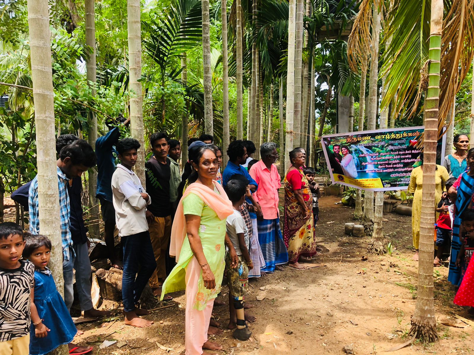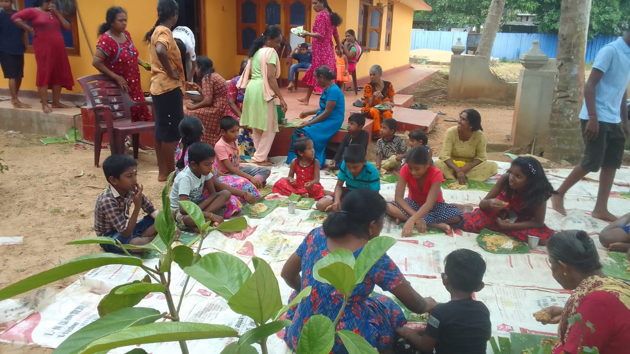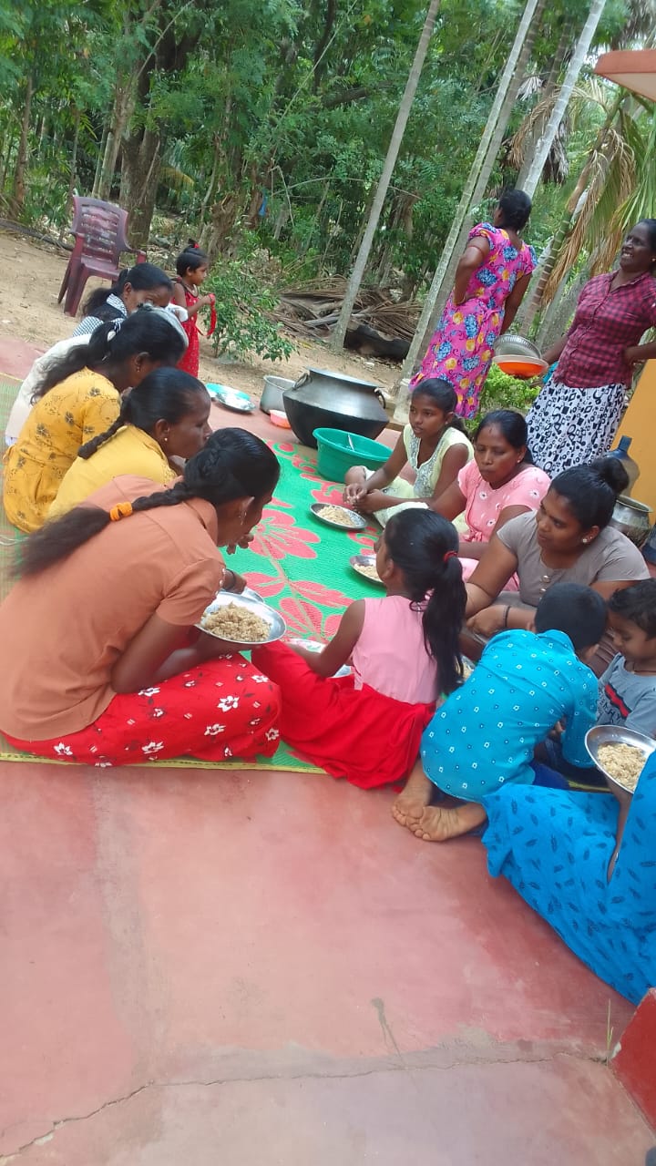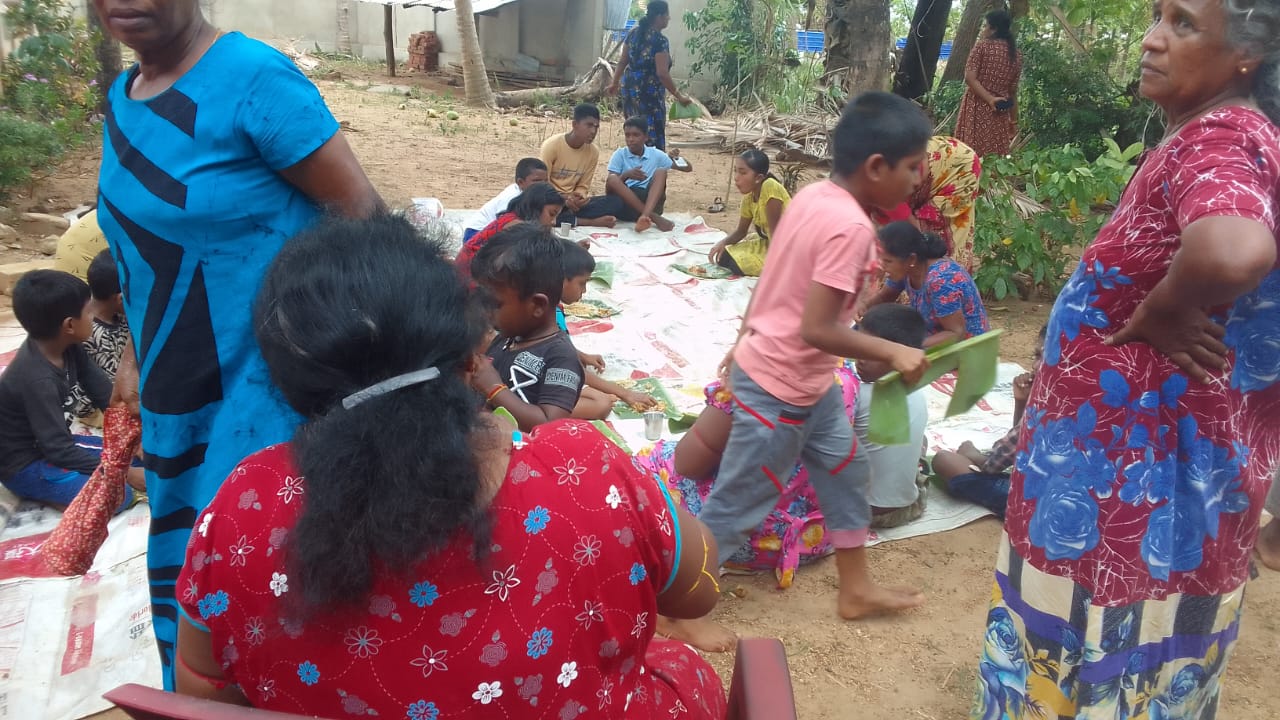 மிகவும் பின்தங்கிய கிராமத்தில் ஒழுங்கமைக்கப்பட்ட திருமண மதிய அசைவ விருந்துணவு நிகழ்வில் அநேக கிராம மக்கள், சிறுவர், சிறுமியர்கள் என பலரும் கலந்து கொண்டு புதுமணத் தம்பதிகளை ஆசீர்வதித்து வாழ்த்திச் சென்றனர்.