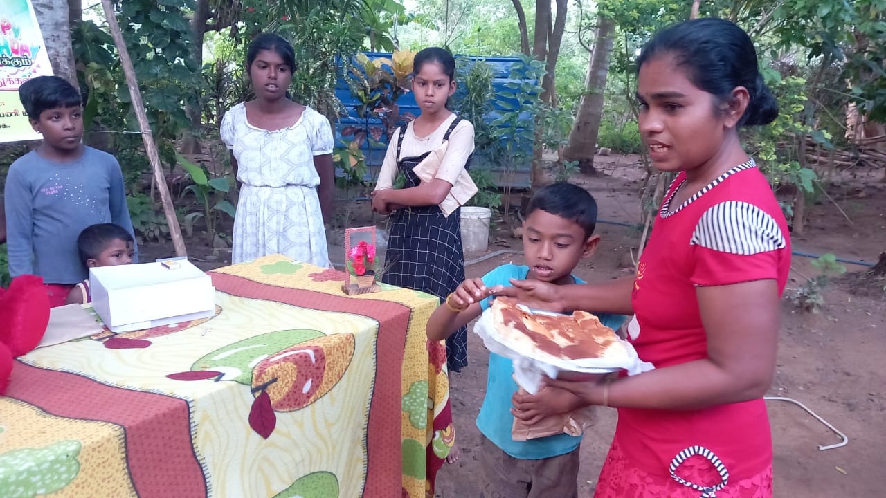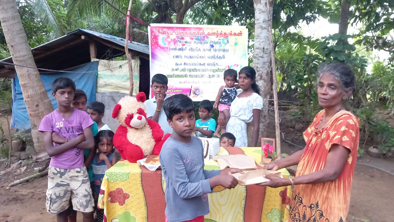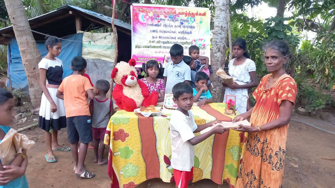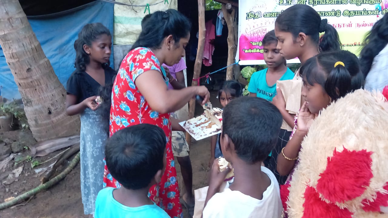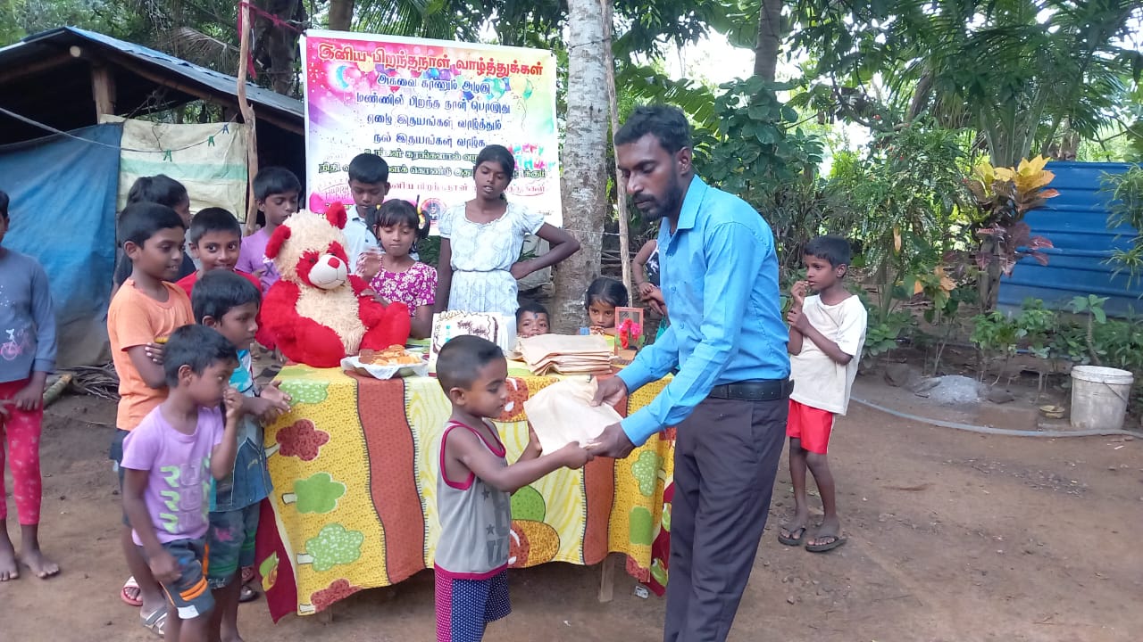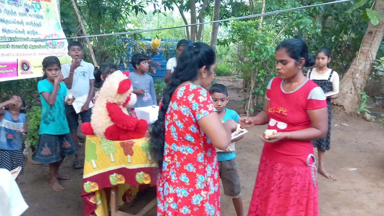 குறித்த நேரத்தில் பிறந்த நாள் நிகழ்வு ஆரம்பிக்க கலந்து கொண்ட அனைவரும் பிறந்த நாள் பாட்டுப்பாடி கேக் வெட்டி தமது வாழ்த்துக்களை தெரிவிக்க அனைவருக்கும் கற்றல் உபகரணமாக மாலைநேர வகுப்புக்கு செல்லும் மாணவ மாணவிகளுக்கு அப்பியாசக் கொப்பிகள் வழங்கப்பட்டு சிற்றுண்டிகளும் வழங்கப்பட்டது.