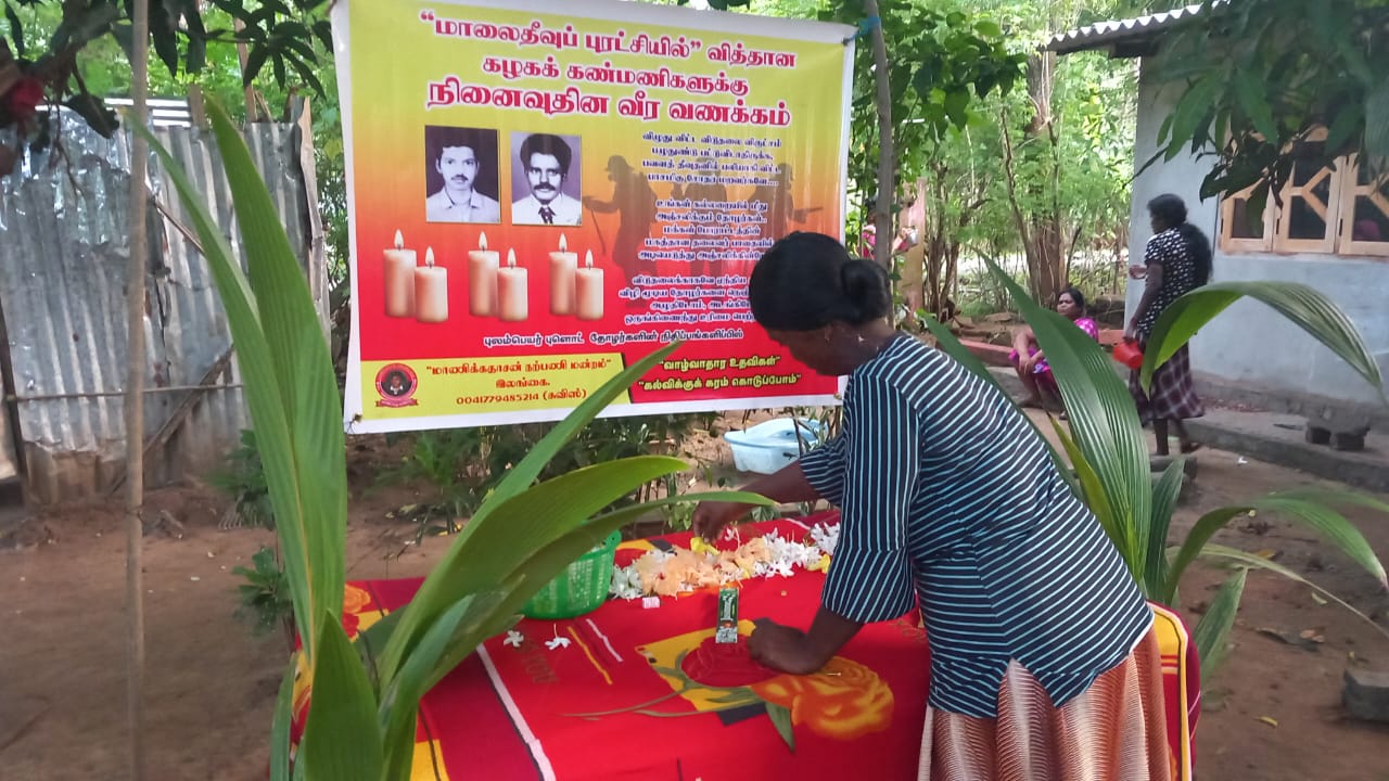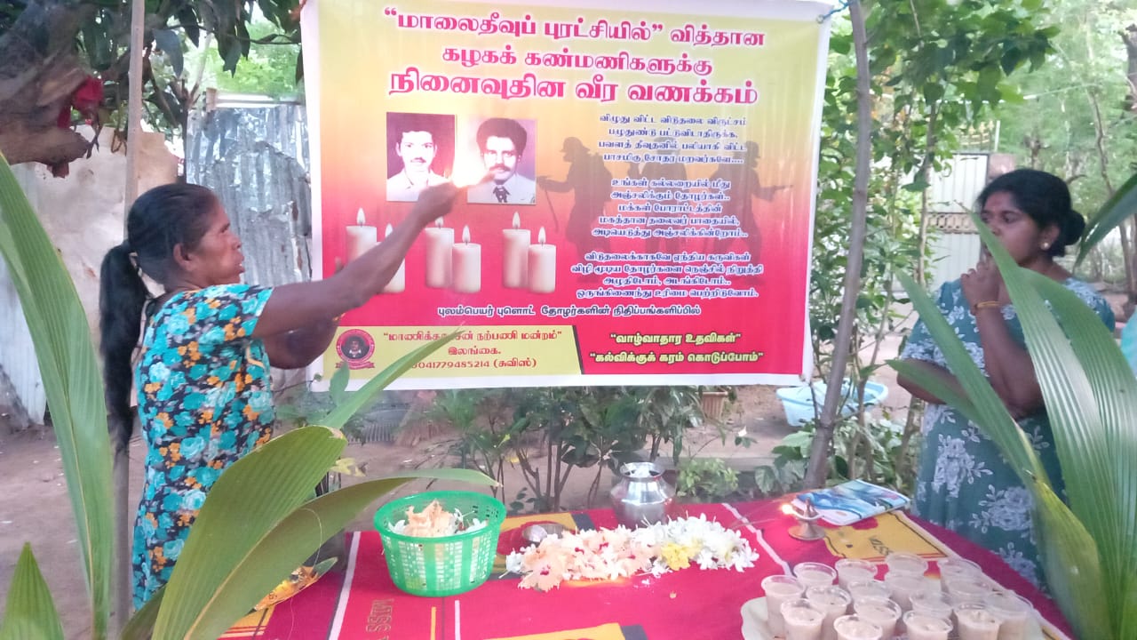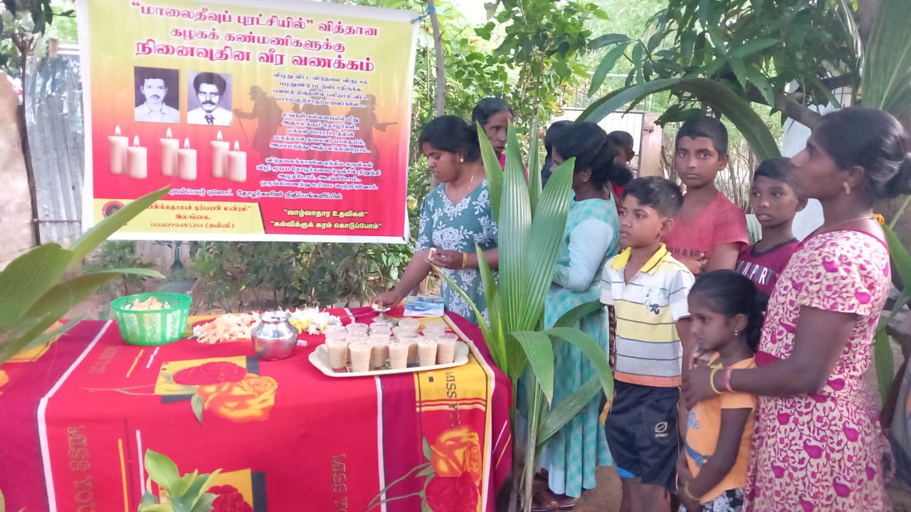 மாலைதீவுப் புரட்சியில் மரணித்தவர்களின் நினைவாகவும், அதில் மரணித்த அனைத்துத் தோழர்களின் ஆத்மா சாந்தியடைய வேண்டியும் நடைபெற்ற மேற்படி நிகழ்வில் முதலில் அனைத்துத் தோழர்களின் திருவுருவப் படத்துக்கு தீபாராதனை காட்டப்பட்டு, தேவாரபாராயணம் பாடப்பட்டு பொதுமக்களினால் அஞ்சலி செலுத்தப்பட்டது.