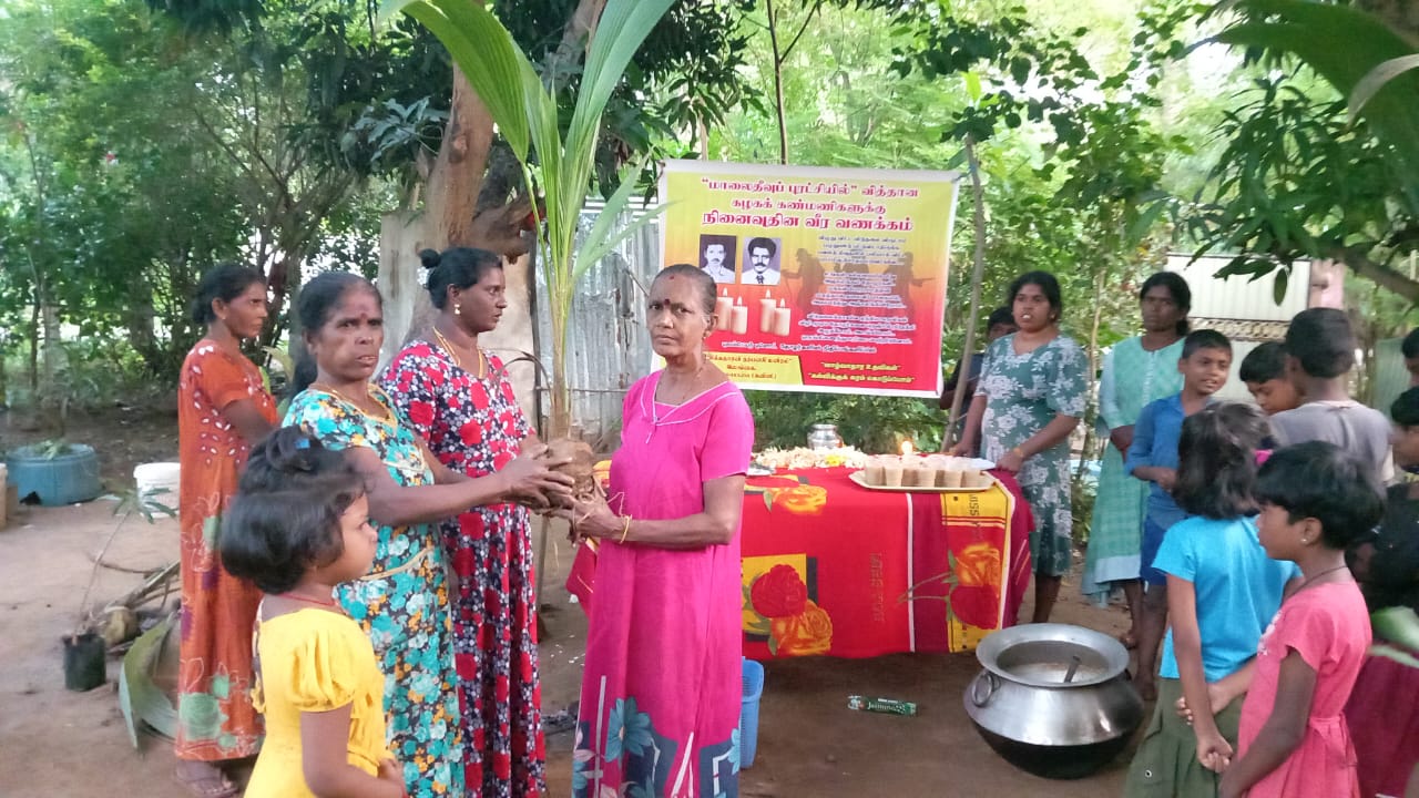 அத்துடன் இந்த மாபெரும் மாலைதீவு புரட்சியில் வீர காவியமான தோழர்களின் 35 வது ஆண்டு நினைவுதினத்தை முன்னிட்டு வன்னி எல்லைக் கிராமமொன்றில் வாழும் குடும்பங்களின் மேலதிக எதிர்கால வாழ்வாதார உதவியாக தோழர்கள் நினைவாக வீட்டுத் தோட்டத்துக்கு உதவியாக “உமா கிராம வீட்டுத் தோட்ட” திடடத்தின் கீழ், பயன்தரு மாங்கன்று, பலாகன்று, கஜூ கன்று, ஜம்புகன்று, மற்றும் நல்லின தென்னைமரக் கன்றுகளும் வழங்கப்பட்டது. மேற்படி நிகழ்வுகளை மாணிக்காதாசன் நற்பணி மன்றத்தினூடாக வழங்கப்பட்டது.