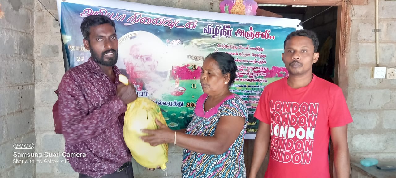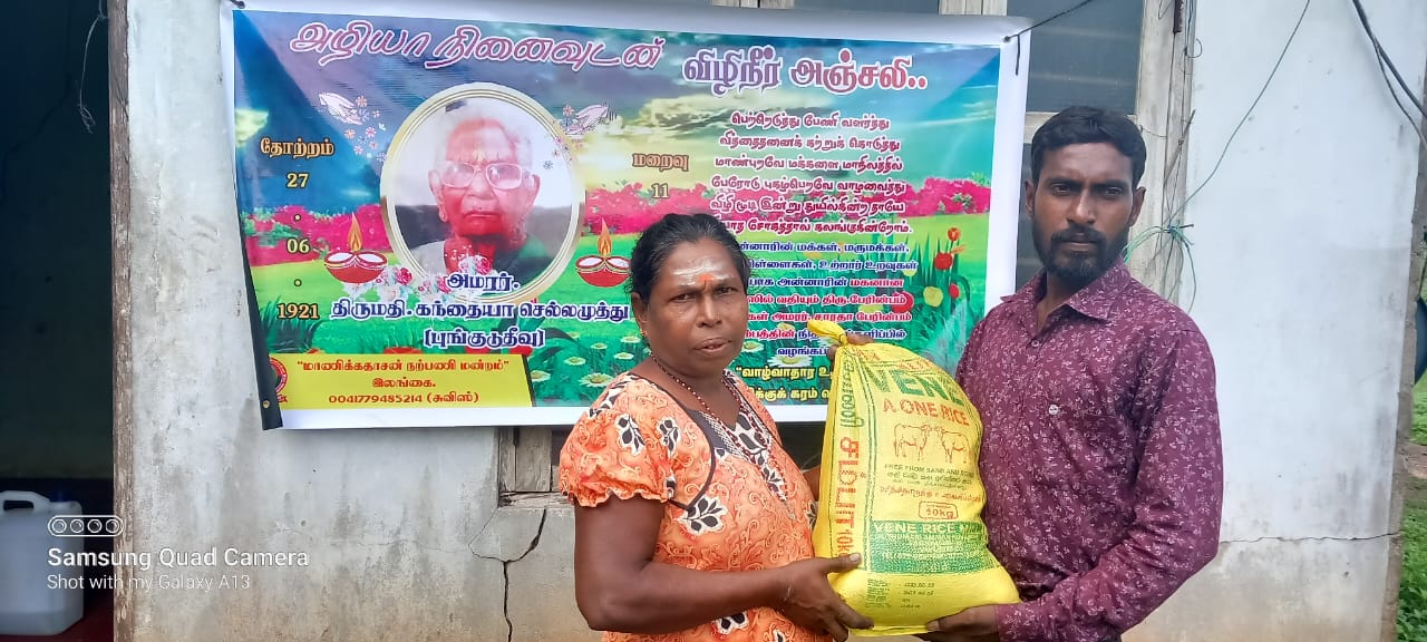 அமரர். கந்தையா செல்லமுத்து அவர்களின் ஒன்பதாம் ஆண்டு நினைவாக, நடைபெற்ற மதிய விசேட உணவு வழங்கும் நிகழ்வும், வாழ்வாதார உதவியாக பெறுமதியான உலருணவுப் பொருட்கள் அடங்கிய பொதிகள், மற்றும் பயன்தரு நல்லின மரக்கன்றுகள் வழங்கி வைக்கப்பட்டதும்,