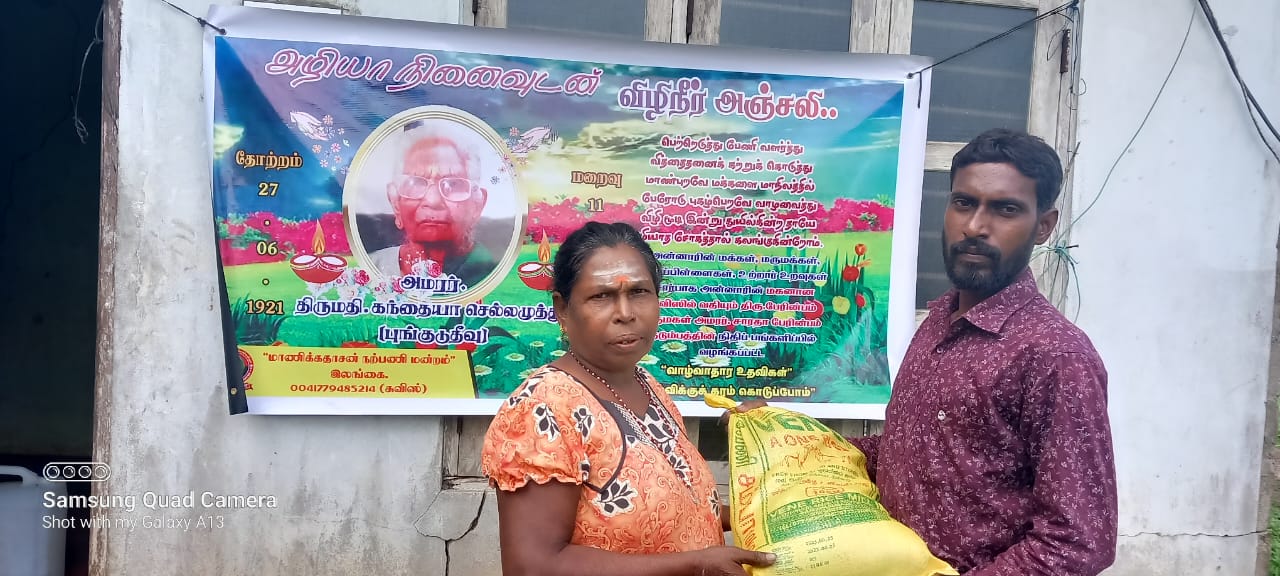 இதனைத் தொடர்ந்து அமரர். கந்தையா செல்லமுத்து அவர்களின் ஒன்பதாம் ஆண்டு நினைவாக, இந்நிகழ்வில் கலந்து கொண்ட தேவையுடைய அனைவருக்கும் இன்றைய நாட்டின் பொருளாதார சூழ்நிலையைக் கருத்தில் கொண்டு “பெறுமதியான உலருணவுப் பொதிகளும், நல்லின மரக்கன்றுகளும்” வழங்கி வைக்கப்பட்டது.
