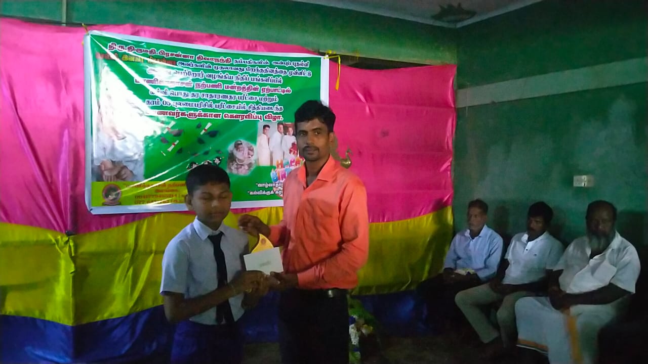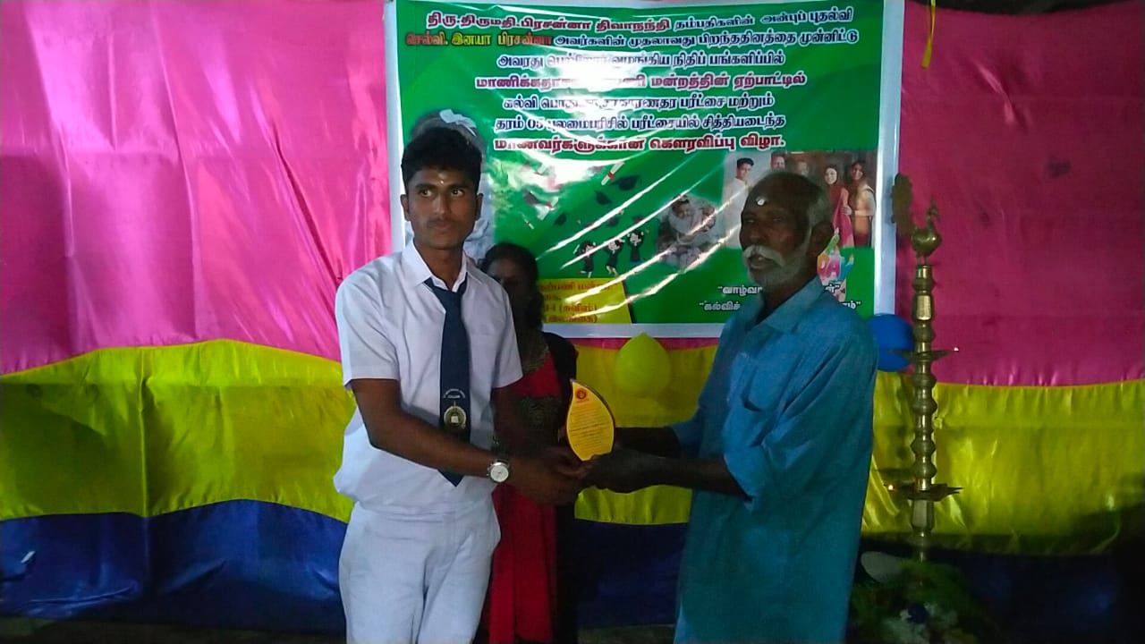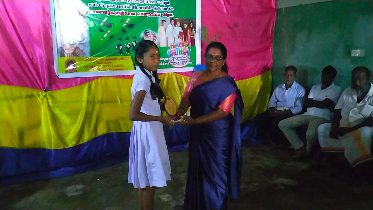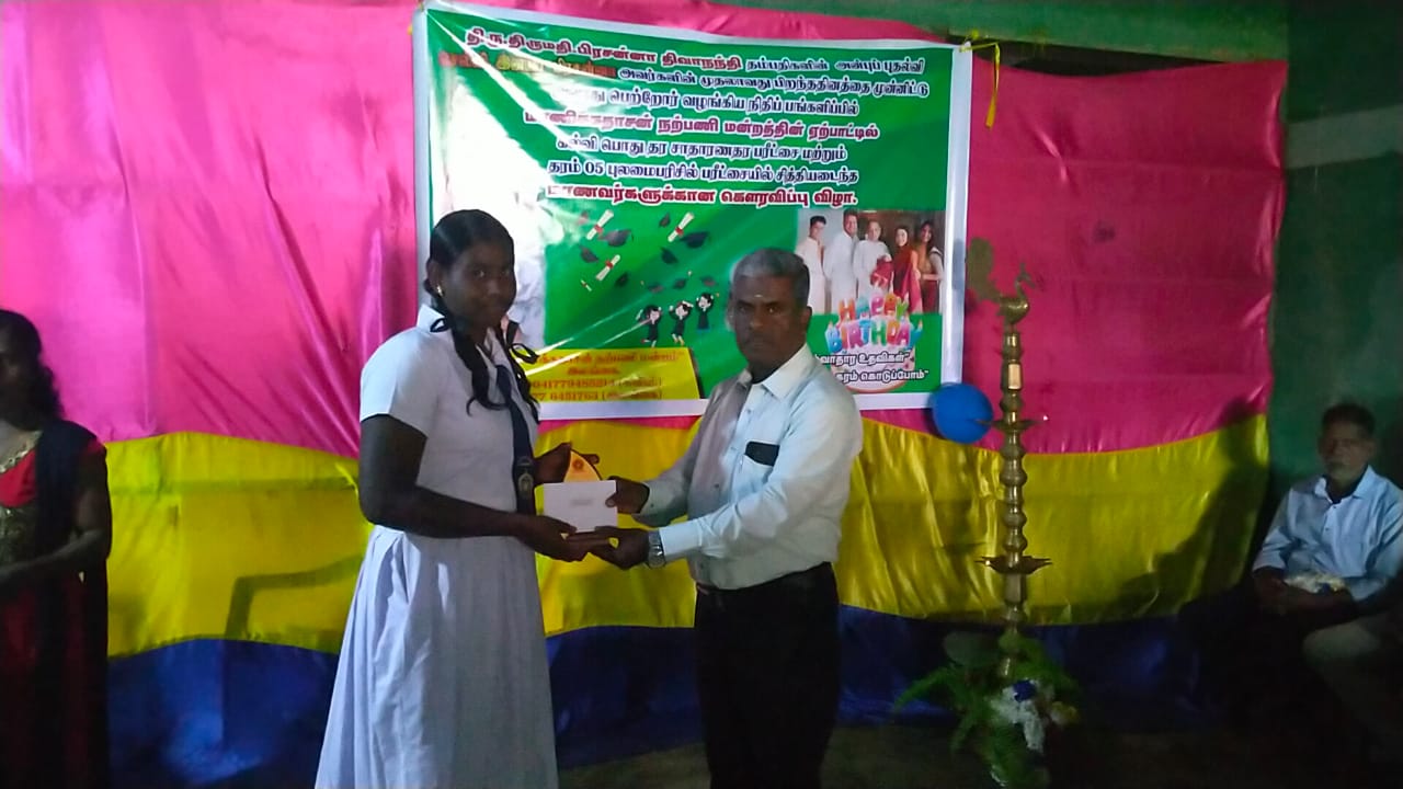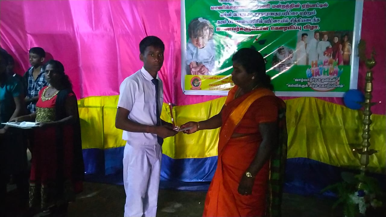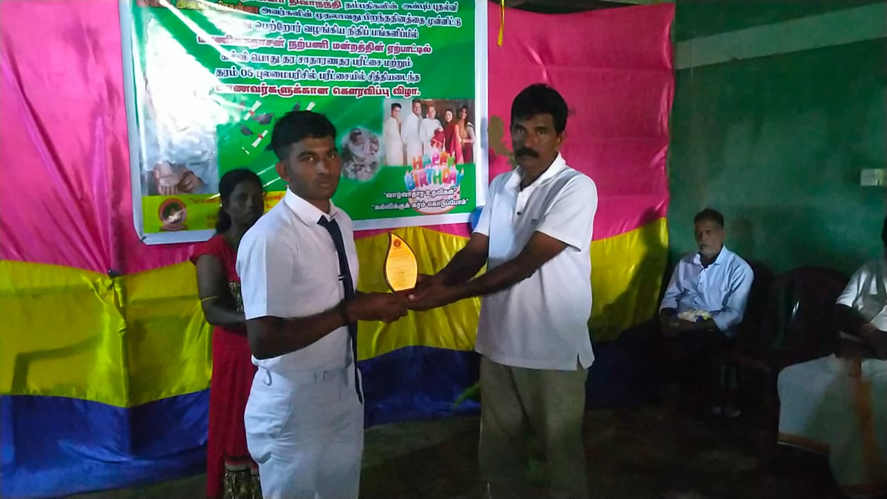 இதனைத் தொடர்ந்து வவுனியா சமளங்குளம், எல்லப்பர் மருதங்குளம், ஆச்சிபுரம், எல்லப்பர் மருதங்குளம் விவசாய கிராமம், இத்திகுளம், முருகனூர் ஆகிய கிராமங்களைச் சேர்ந்த “கல்வி பொது தர சாதாரணதர பரீட்சை மற்றும் தரம் 05 புலமைபரிசில் பரீட்சையில் சித்தியடைந்த” மாணவ,மாணவிகள், தமது எதிர்கால கல்வித் தேவைக்கான பெறுமதியான பணப்பரிசிலும், வெற்றிக் கேடயங்களும் வழங்கிக் கௌரவிக்கப்பட்டதுடன், இந்நிகழ்வை சிறப்பாக ஒழுங்குபடுத்தி செய்தமைக்காக ஸ்ரீ முத்துமாரியம்மன் அறநெறி பாடசாலை ஆசிரியை திருமதி வசந்தமலர் கலாநீதன் அவர்களுக்கு, மாணிக்கதாசன் நற்பணி மன்றத்தின் சார்பில் ஜனநாயக மக்கள் விடுதலை முன்னனி கட்சி உறுப்பினர் திருமதி.ஜெஷ்மின் ஹென்றி பெரேரா அவர்களினால் மலர்மாலை அணிவித்துக் கௌரவிக்கப்பட்டதுடன் நன்றியுரையுடன் நிகழ்வு இனிதே நிறைவேறியது.