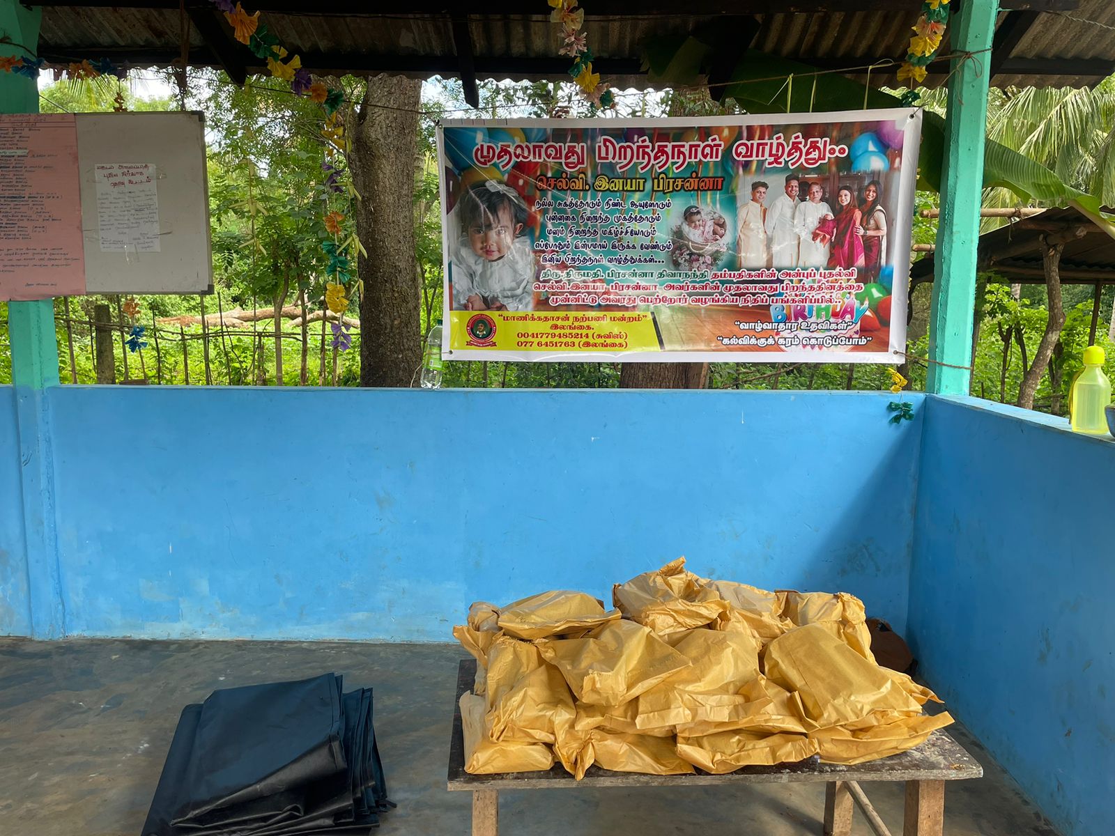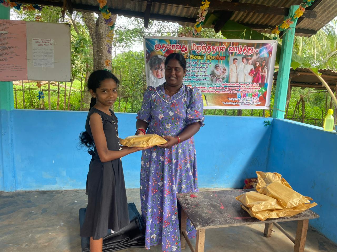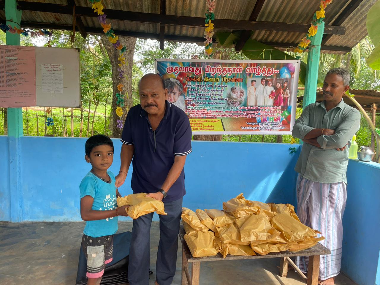 சுவிஸில் தூண் பிரதேசத்தில் வாழும் பிரசன்னா மற்றும் திவா என அன்புடன் அழைக்கப்படும் திரு.திருமதி. பிரசன்னா திவாநந்தி தம்பதிகளின் செல்வப் புதல்வி செல்வி.இனயா அவர்களின் முதலாவது பிறந்ததினத்தை முன்னிட்டு பெருமளவு நிதிப் பங்களிப்பு வழங்கி, மாணிக்கதாசன் நற்பணி மன்றம் ஊடாக இந்நிகழ்வை மட்டுமல்ல பல்வேறு வாழ்வாதார உதவிகள், கல்விக்கு கரம் கொடுப்போம் போன்ற நிகழ்வுகளை மேற்கொள்ளுமாறு கோரி இருந்தனர்.