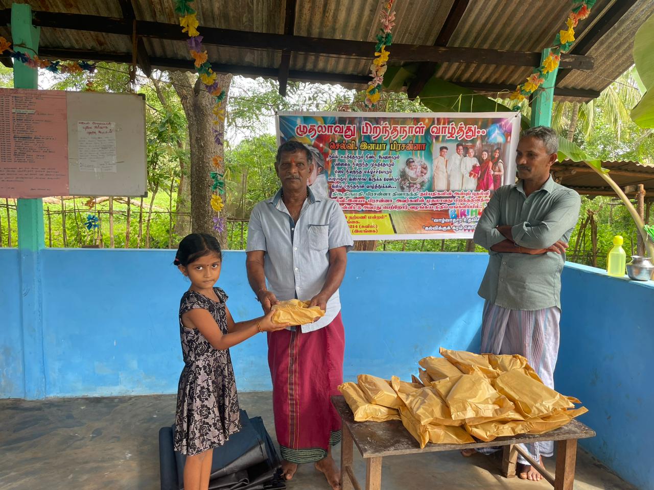 மேற்படி நிகழ்வில் தனது முதலாவது பிறந்ததினத்தைக் கொண்டாடும் செல்வி.இனயா பிரசன்னா அவர்களின் முதலாவது பிறந்தநாளை முன்னிட்டு மாணவ மாணவிகள் மற்றும் ஆசிரியர்கள் ஆர்வமாக கலந்து கொண்டு மிகவும் மகிழ்ச்சியுடன் பிறந்தநாள் பாட்டுப் பாடி மகிழ்ந்து தத்தமது சந்தோசத்தையும், மகிழ்ச்சினையும் செல்வி.இனயா பிரசன்னா அவர்களுக்கு பிறந்தநாள் வாழ்த்தினையும் தெரிவித்தனர். அத்துடன் கலந்து கொண்ட மாணவ,மாணவிகள் அனைவருக்கும் சிற்றுண்டிகளும் வழங்கி வைக்கப்பட்டது. தொடர்ந்து அவர்களுக்கான கற்றல் உபகரணங்களும் வழங்கி வைக்கப்பட்டது. அத்துடன் தற்போது பெய்து வரும் கடும் மழையினால் தமது வீட்டுக் கூரையின் நிலையை கருத்தில் கொண்டு முன்வைத்த இரண்டு குடும்பத்தினரின் வேண்டுகோளுக்கு இணங்க தறப்பாள்களும் வழங்கி வைக்கப்பட்டது.
