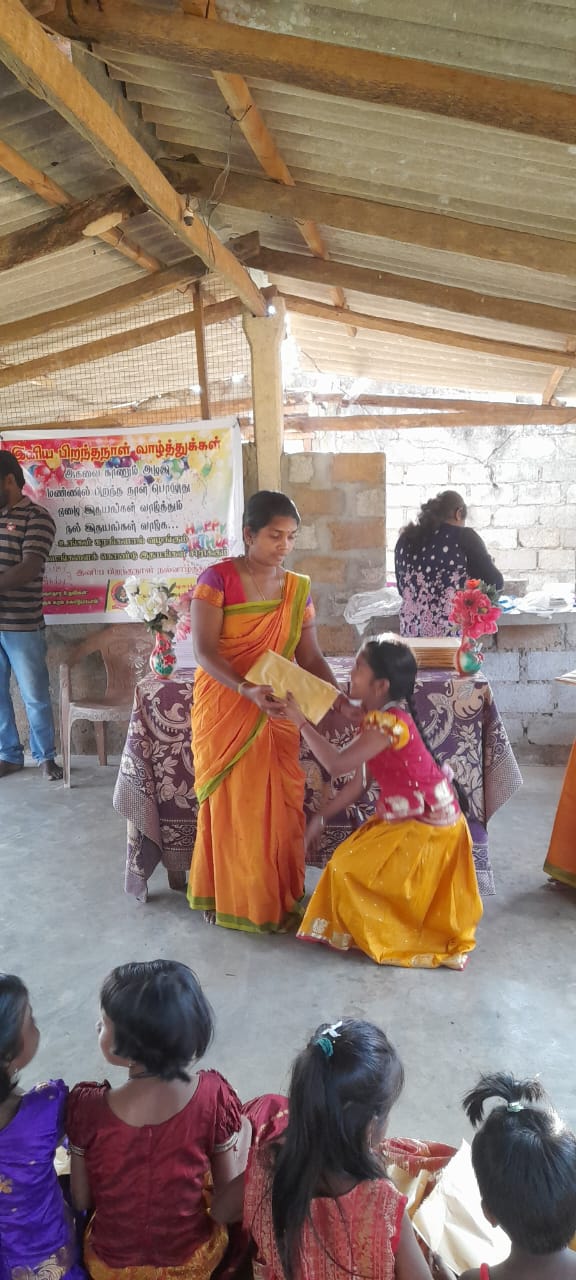 பிறந்தநாளான இன்று வன்னி எல்லைக் கிராமமொன்றில் அப்பிரதேச மாணவமாணவிகள் சிலரும் அவரது பெற்றோர்களும் இணைந்து பிறந்தநாள் கேக் வெட்டி, வாழ்த்துப் பாடி சந்தோஷமாகக் கொண்டாடப்பட்டது. கலந்து கொண்ட அனைவருக்கும் சிற்றுண்டிகள் வழங்கி வைக்கப்பட்டது.
