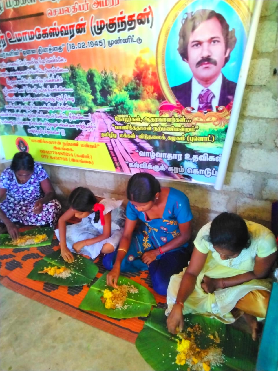 வவுனியா கிராமமொன்றில் அமரர் தோழர்.உமாமகேஸ்வரன் அவர்களது எழுபடத்தொன்பதாவது பிறந்ததினம் “மாணிக்கதாசன் நற்பணி மன்றத்தின்” முக்கியஸ்தர்களில் ஒருவரான திருமதி பாவலராணி நவரெட்ணம் அவர்களது மேற்பார்வையில்