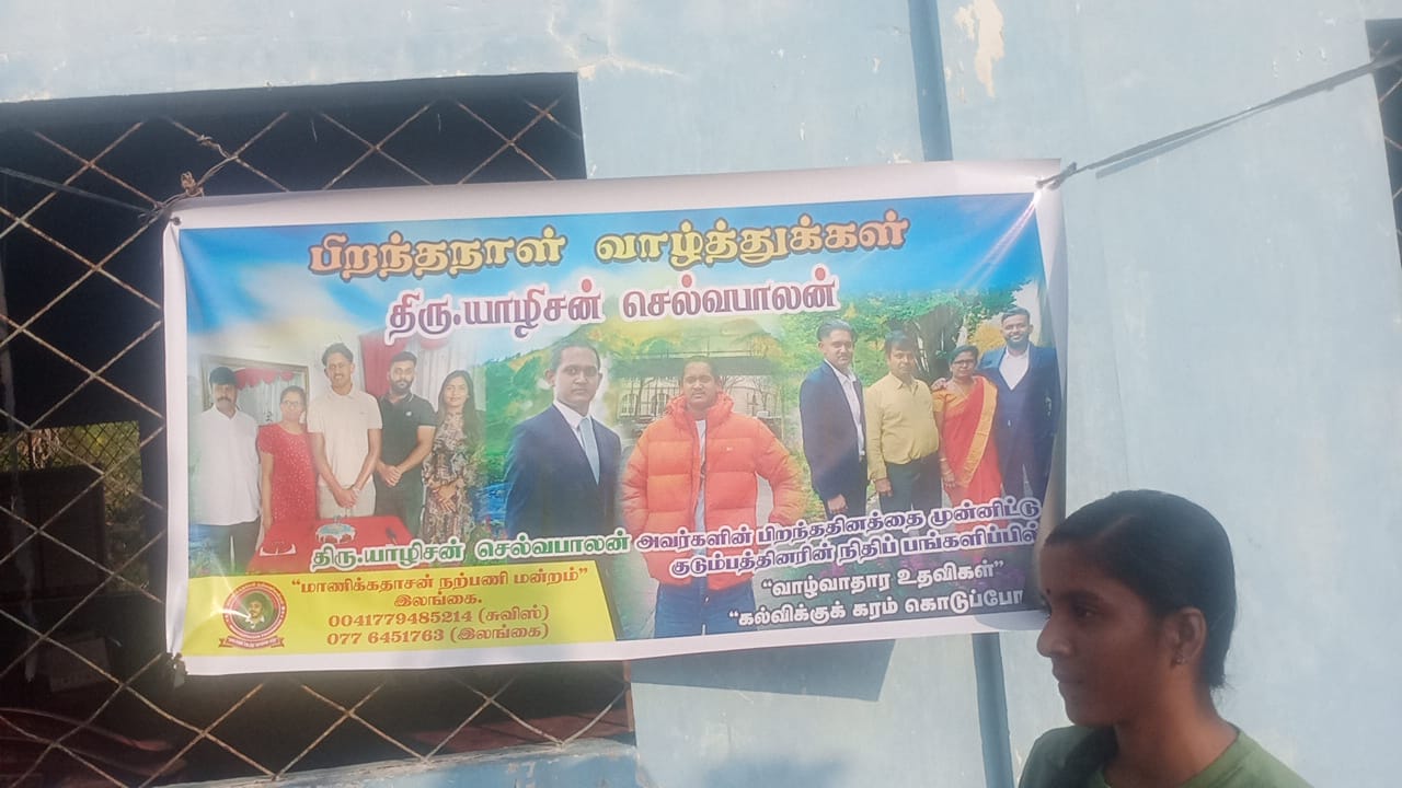 சுவிஸ் செல்வபாலன் மனோகரி தம்பதிகளின் சிரேஷ்ட புதல்வன் செல்வன்.ஈழதர்சன் அவர்களின் பிறந்த நாளில் மாணிக்கதாசன் நற்பணி மன்றத்தின் ஏற்பாட்டில் வாழ்வாதார உதவிகள் மற்றும் கல்விக்கு கரம் கொடுப்போம் நிகழ்ச்சித் திட்டத்தின் ஊடாக பலவேறு உதவிகள் தாயக உறவுகளுக்கு ஏற்கனவே வழங்கி இருப்பது குறிப்பிடத்தக்கது.