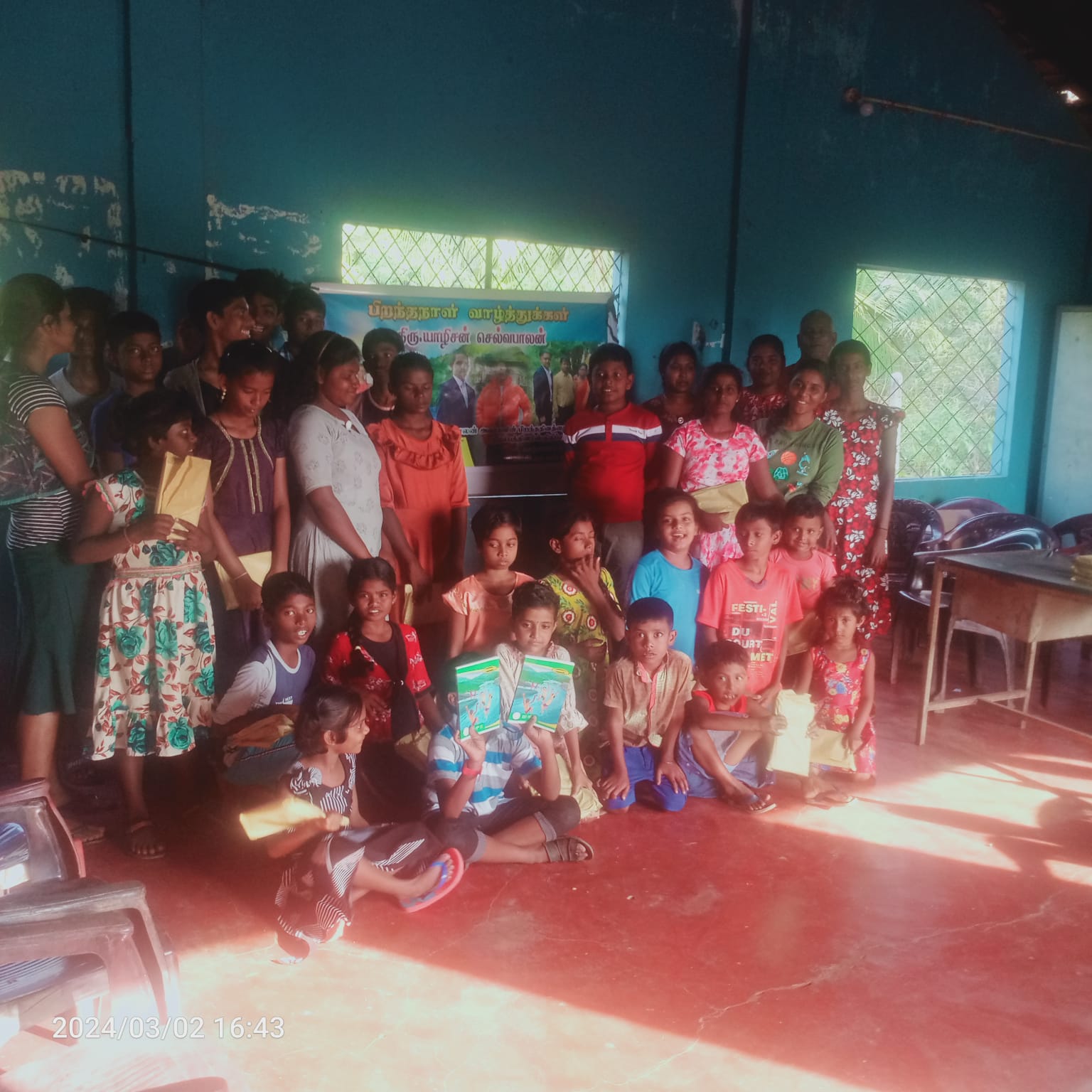 இவரது பிறந்தநாளை முன்னிட்டு மன்னார் மாவட்டத்தின் மாந்தை மேற்கு பிரதேச செயலகப் பிரிவின் பரப்புக்கடந்தான் கிராம அலுவலர் பிரிவிற்குட்ப்பட்ட பாடசாலையில் கற்றல் உபகரணங்கள் வழங்கி வைக்கப்பட்டது. மாணவ, மாணவிகள், அவர்களது பெற்றோர்கள் எனப் பலரும் ஒன்றுகூடி இவரது பிறந்த நாளை மகிழ்ச்சியுடன் பிறந்தநாள் பாட்டுப் பாடி கொண்டாடினார்கள். பிறந்த நாள் கொண்டாட்டத்தில் கலந்து கொண்ட அனைவருக்கும் சிற்றுண்டி, வழங்கப்பட்டது.