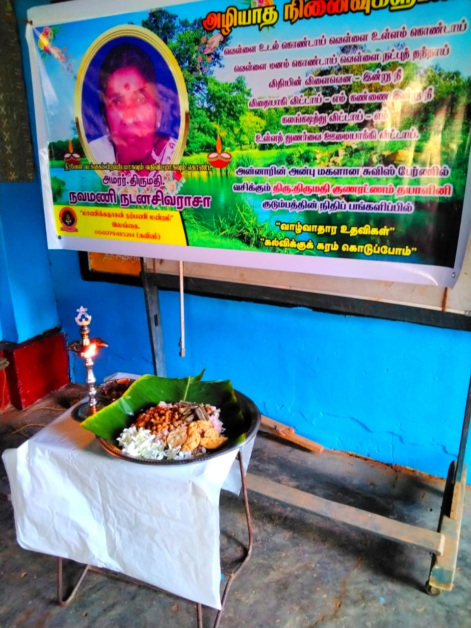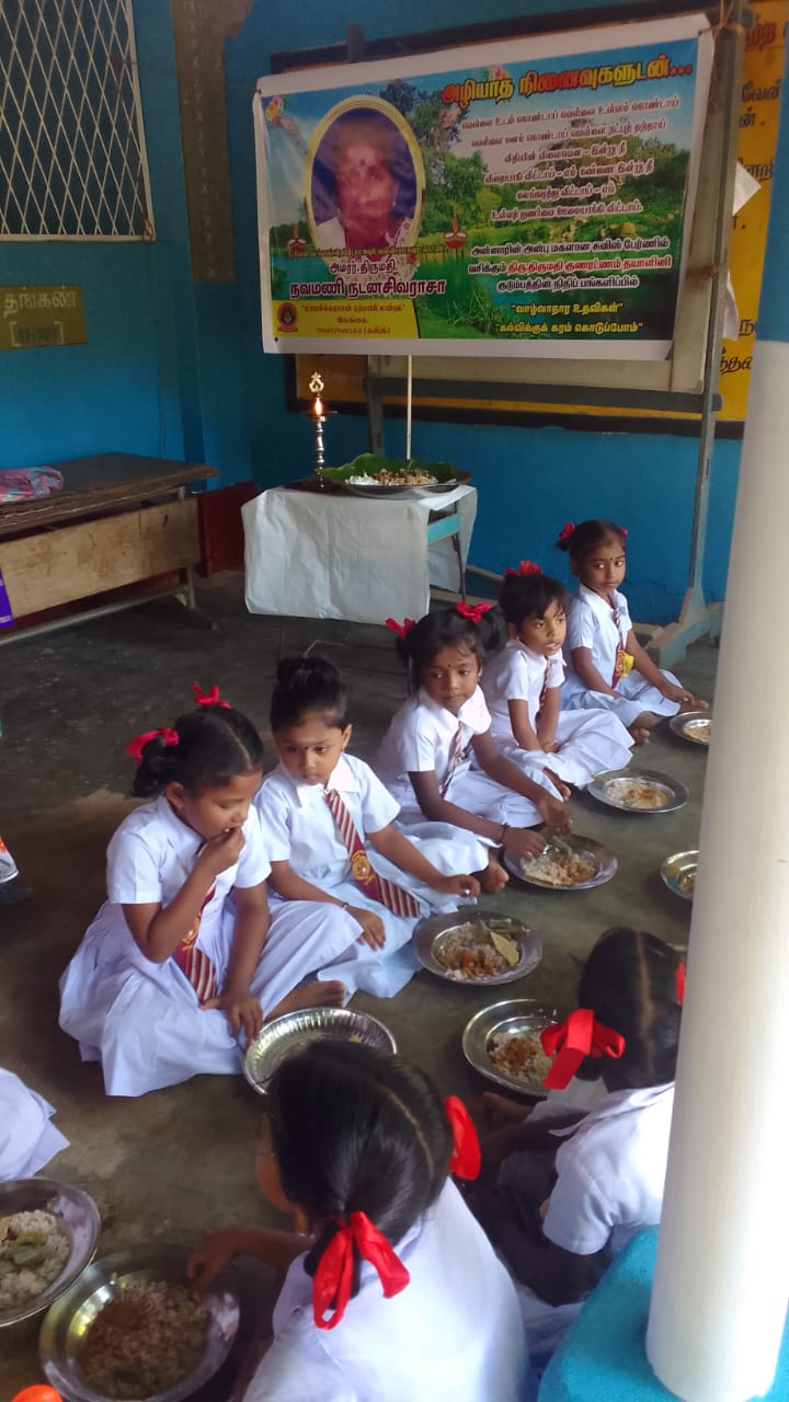 சமய,சமூக செயற்பாடடாளர்களான திரு.திருமதி அமரர்கள் நடனசிவராராசா நவமணி ஆகியோரில் திருமதி நவமணி நடனசிவராசா அவர்களின் 31 ந் நாள் நினைவேந்தலில் அவரின் ஆத்மசாந்திக்காக இறைவனை வேண்டி, அவரின் ஞாபகார்த்தமாக சுவிஸில் வசிக்கும் அவரது மக்கள்களில் ஒருவரான மகள் திருமதி. தயாளினி குணரெட்ணம் அவர்களின் நிதிப் பங்களிப்பில் விசேட மதிய உணவு வழங்கப்பட்டது.