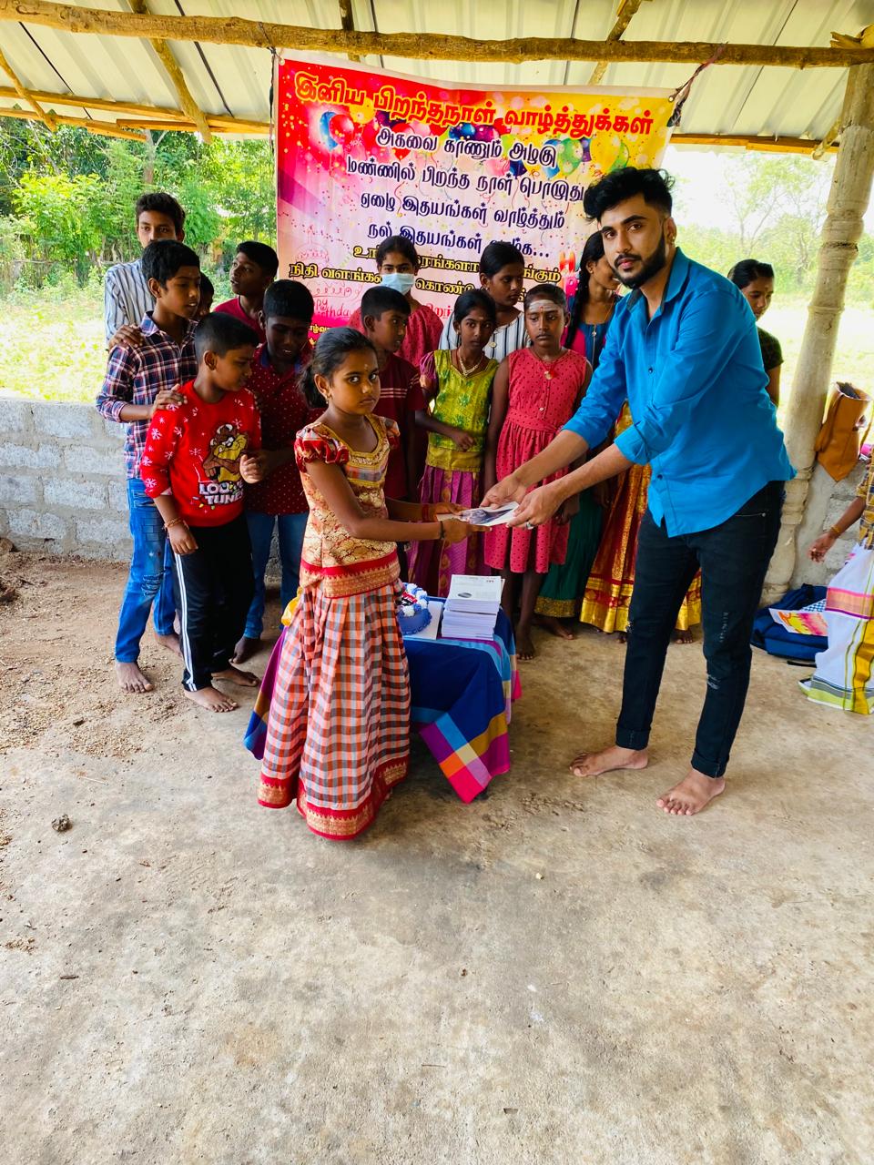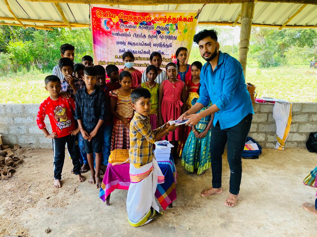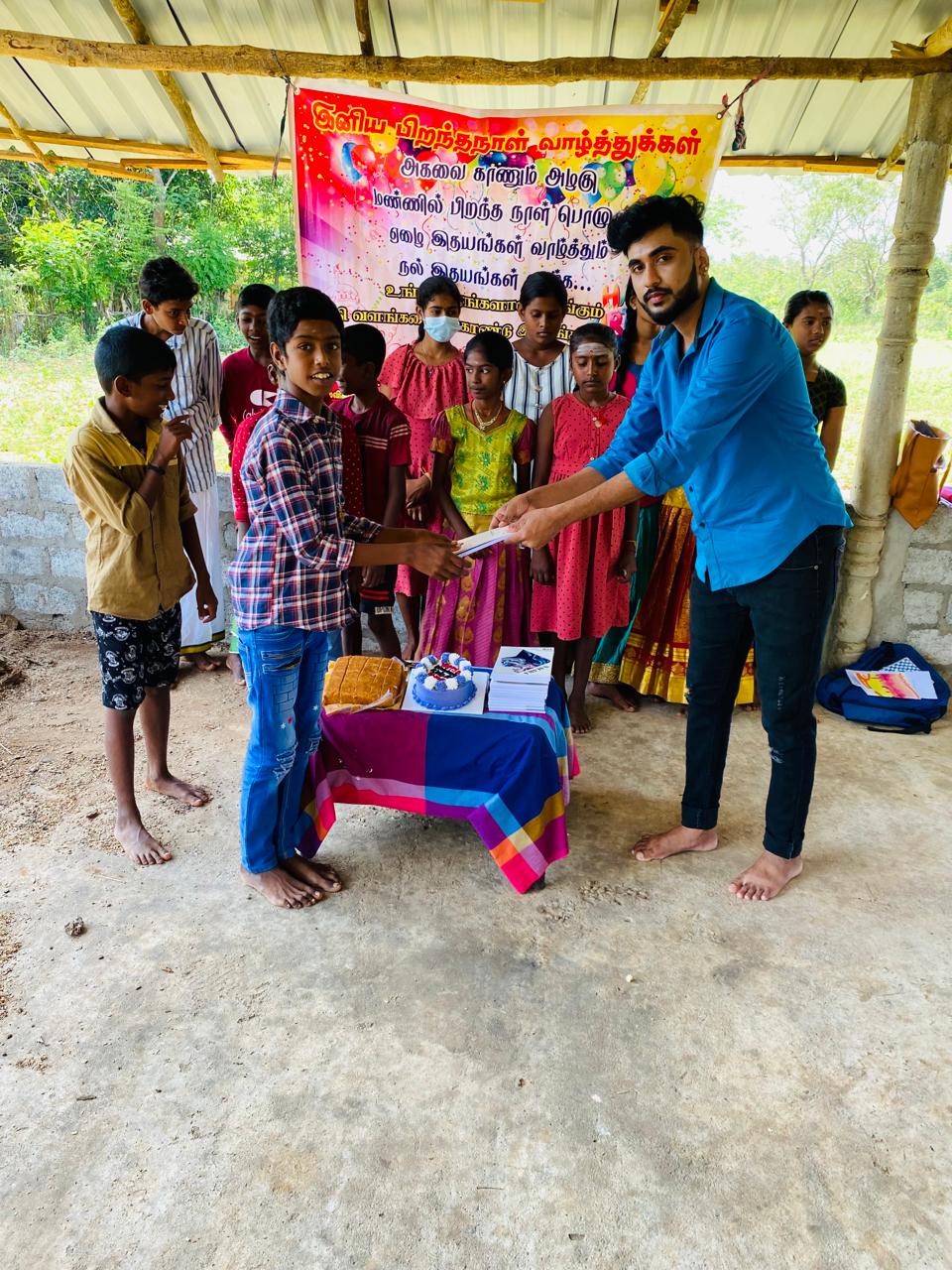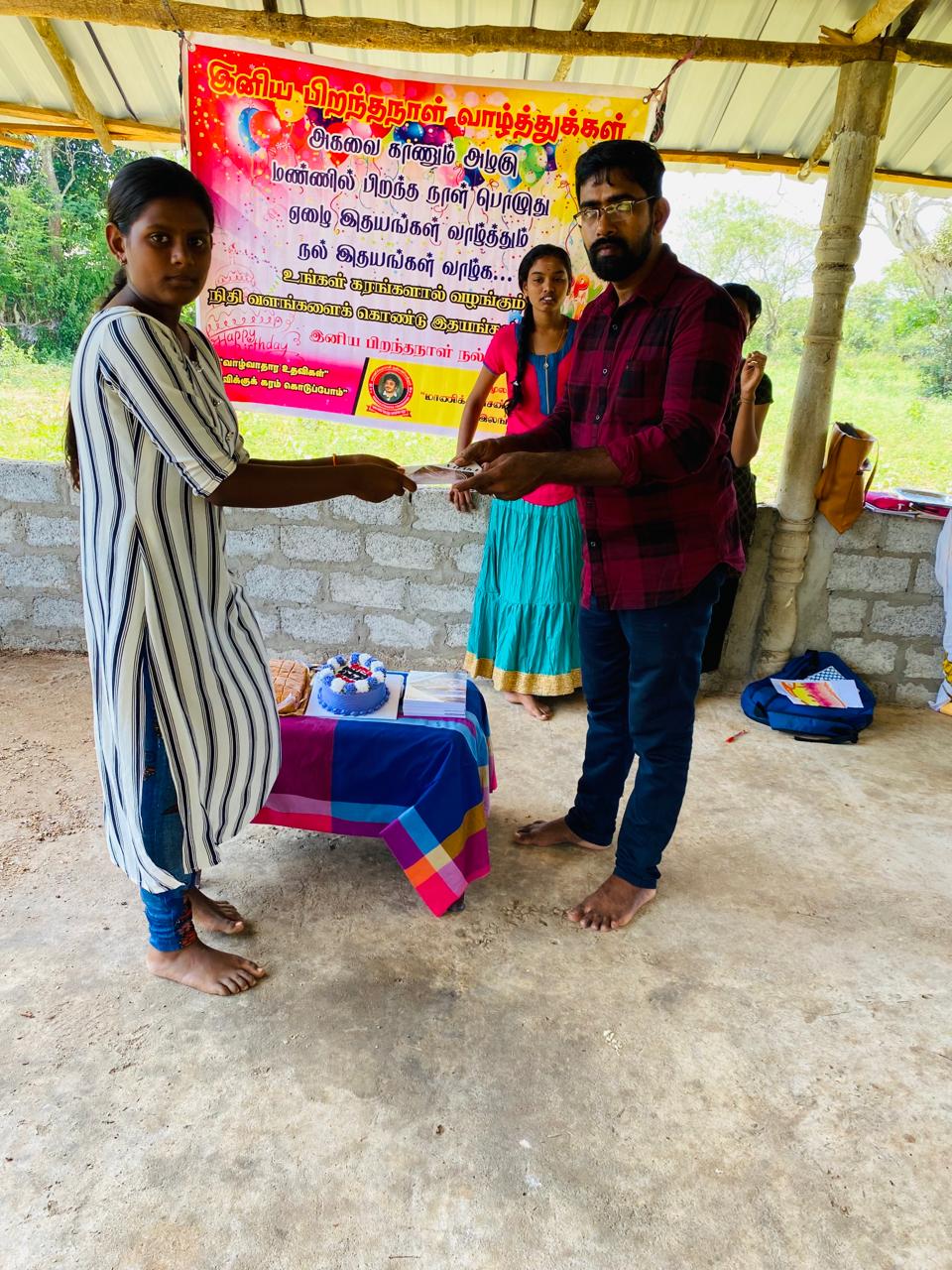 புங்கையூர் தோன்றல்களான அமரர்கள் சொக்கலிங்கம் நாகேஸ் தம்பதிகளின் பரம்பரையின் பொக்கிசங்களில் ஒருவரும், அக்குடும்பத்தின் மூத்தவரும், லண்டன் ஈலிங் கனக துர்க்கை அம்மன் ஆலய நிர்வாகசபை முன்னாள் செயலாளரும், அறங்காவலரும், சமய, சமூகத் தொண்டருமான லண்டனில் வசிக்கும் கண்ணன் எனும் திரு.சொக்கலிங்கம் கருணைலிங்கம் அவர்களின் பிறந்தநாளை முன்னிட்டு அவரது பிள்ளைகளின் நிதிப் பங்களிப்பில், வவுனியா கிராமமொன்றில், கேக் வெட்டி பிறந்தநாள் வாழ்த்துப் பாடி கொண்டாடப்பட்டதுடன், கலந்து கொண்ட மாணவ மாணவிகளுக்கு அவர்களின் பெற்றோருக்கும் சிற்றுண்டிகள் வழங்கப்பட்டது.