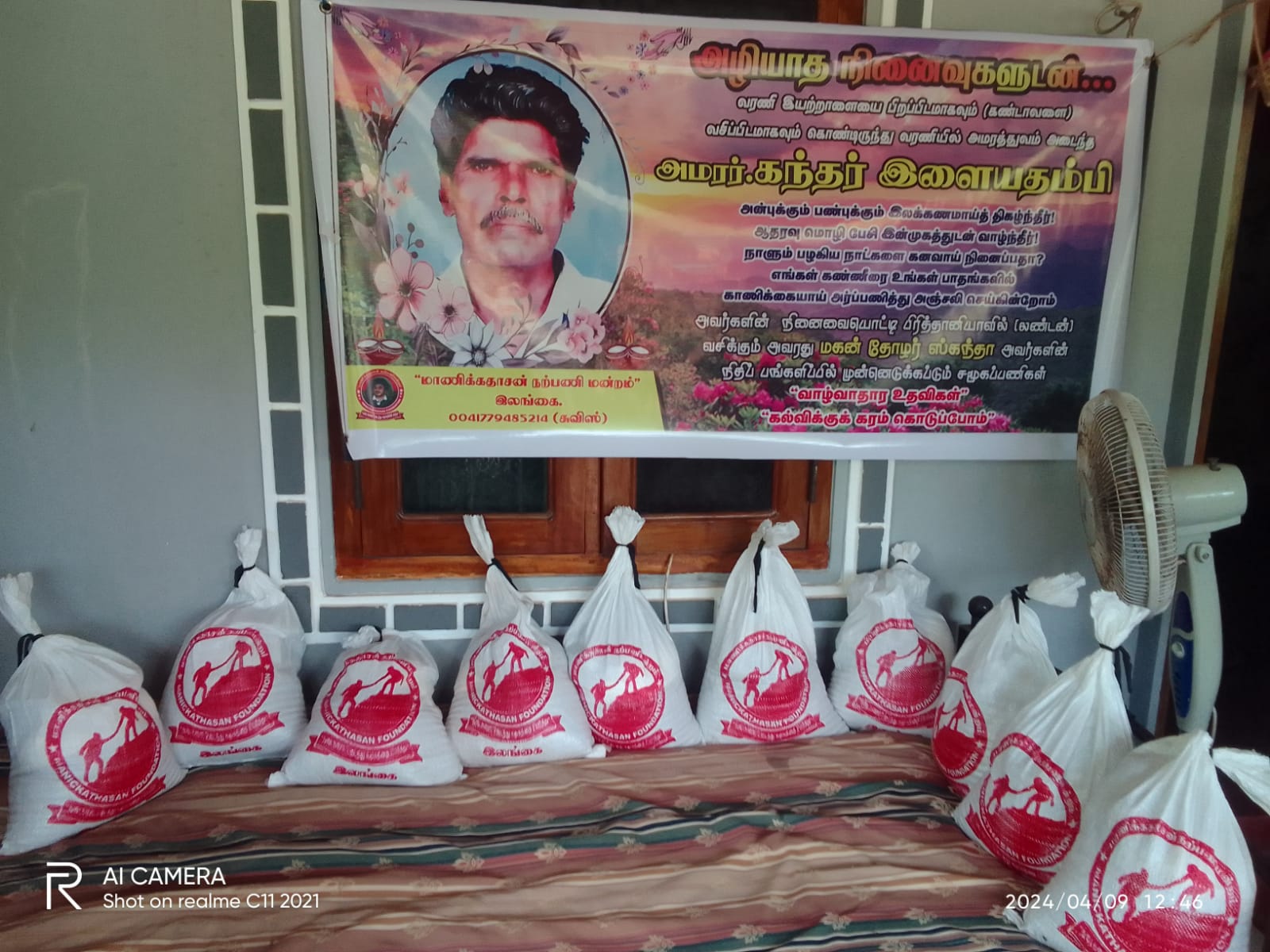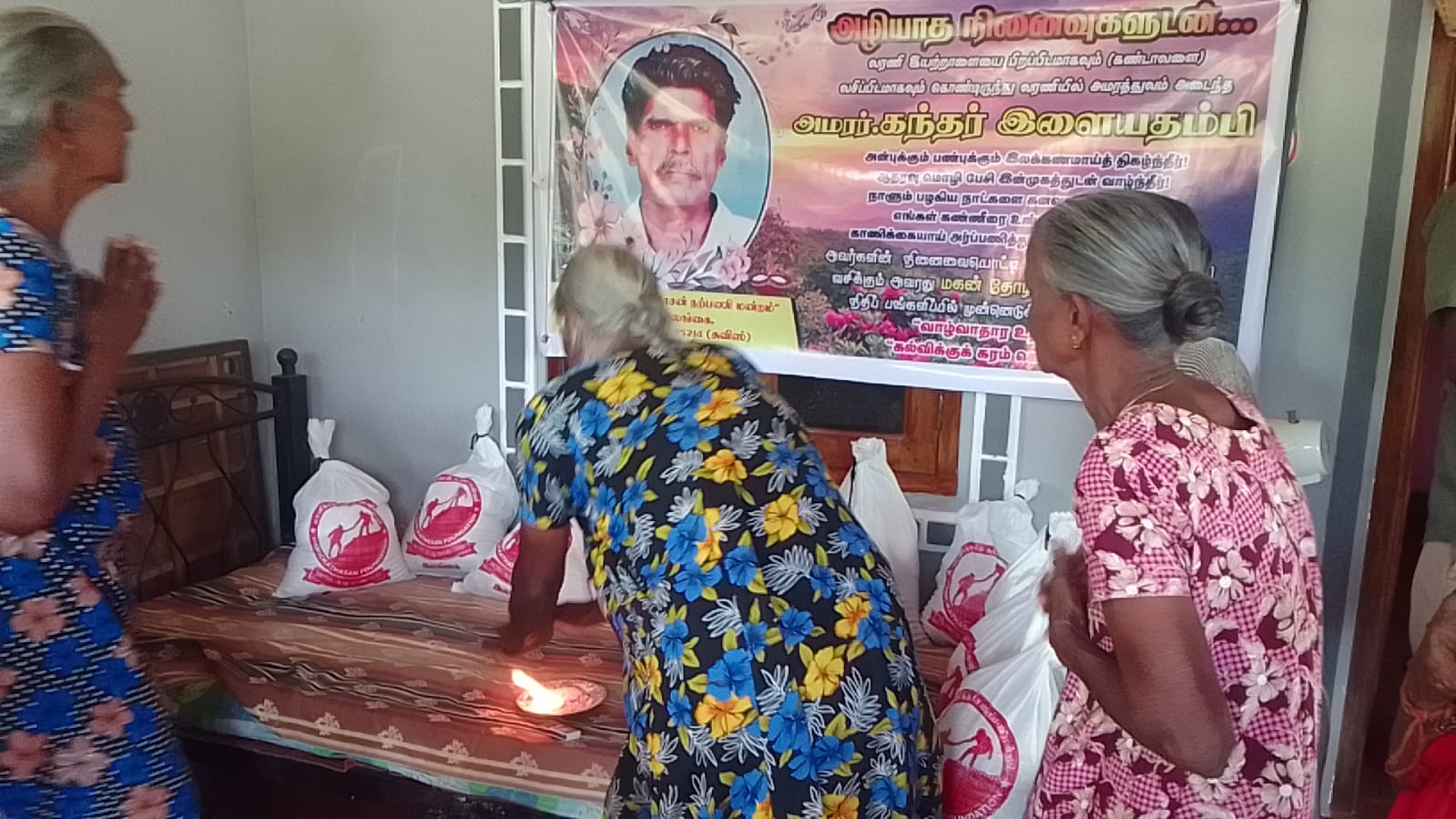 அமரர்.”வரணி” கந்தர் இளையதம்பி அவர்களின் நினைவாகவும், அன்னாரின் ஆத்மா சாந்தியடைய வேண்டியும் நடைபெற்ற மேற்படி நிகழ்வில் மிகவும் கஷ்ரமான சூழ்நிலையில் வாழும் தேவையுடைய சிலருக்கு பெறுமதியான உலருணவுப் பொதிகளும் வழங்கி வைக்கப்பட்டது.
