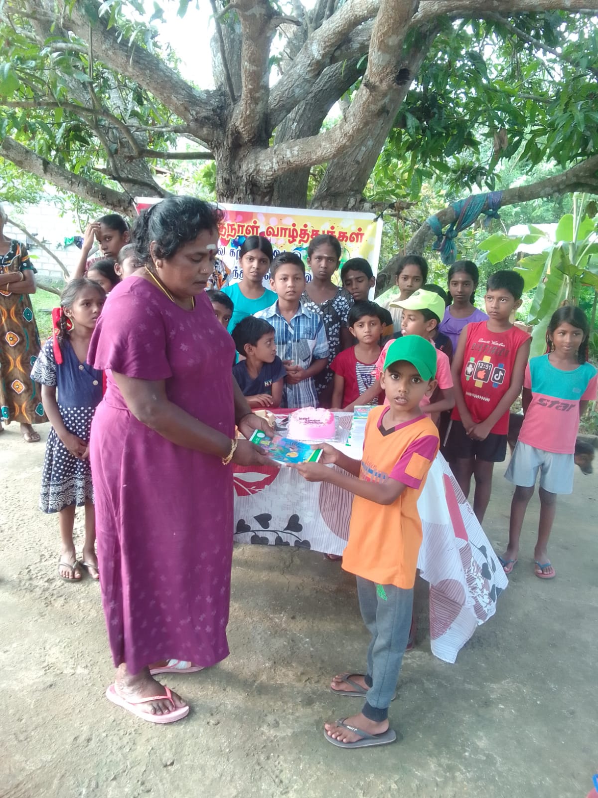 லண்டனில் வசிக்கும் பாபு மீரா தம்பதிகளின் ஏகபுதல்வன் கோபி இன்று தனது பிறந்தநாளை ஏழைகளின் இதயம் குளிர வன்னி எல்லைக் கிராமத்தில் மாலைநேர வகுப்புக்கு செல்லும் மாணவ மாணவிகளுக்கு கற்றலுக்கான அப்பியாசக் கொப்பிகள் வழங்கிக் கொண்டாடினார்.