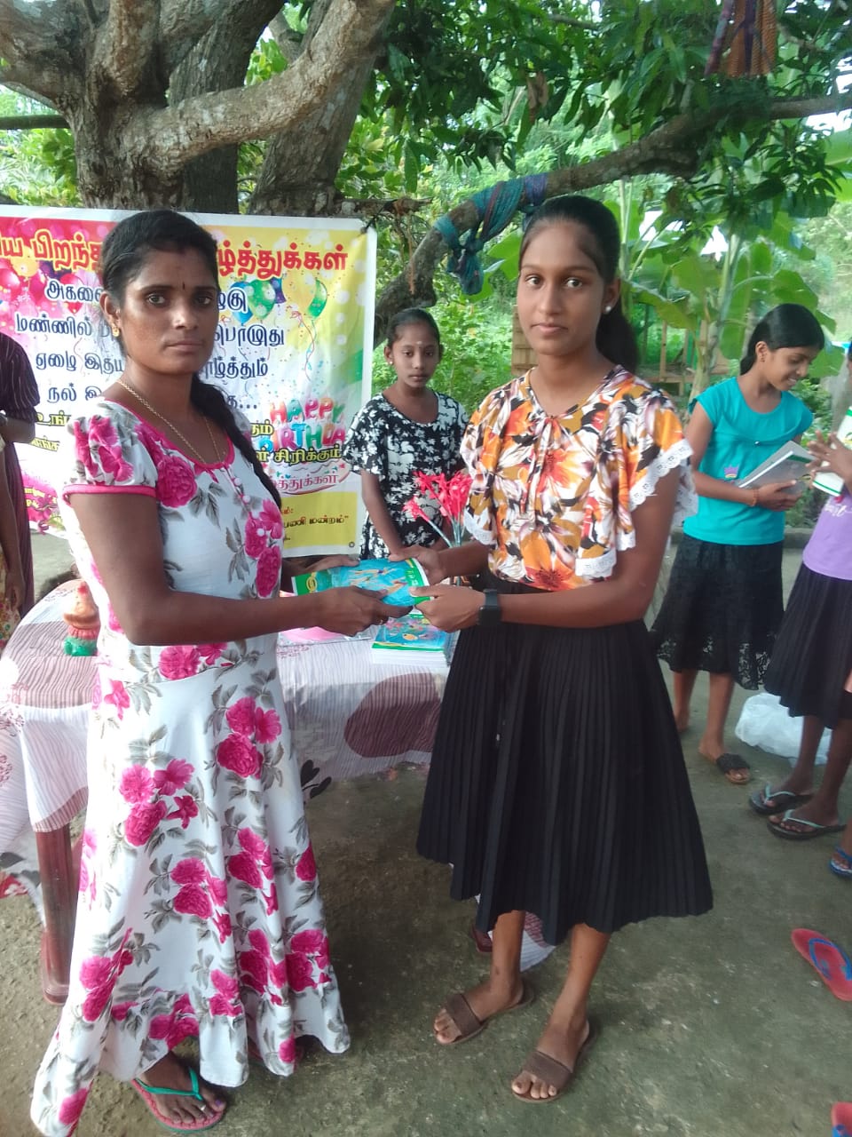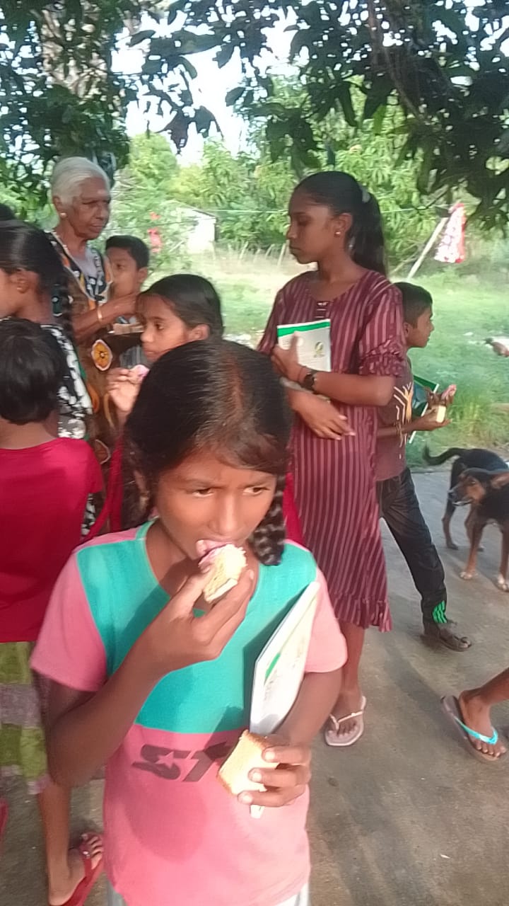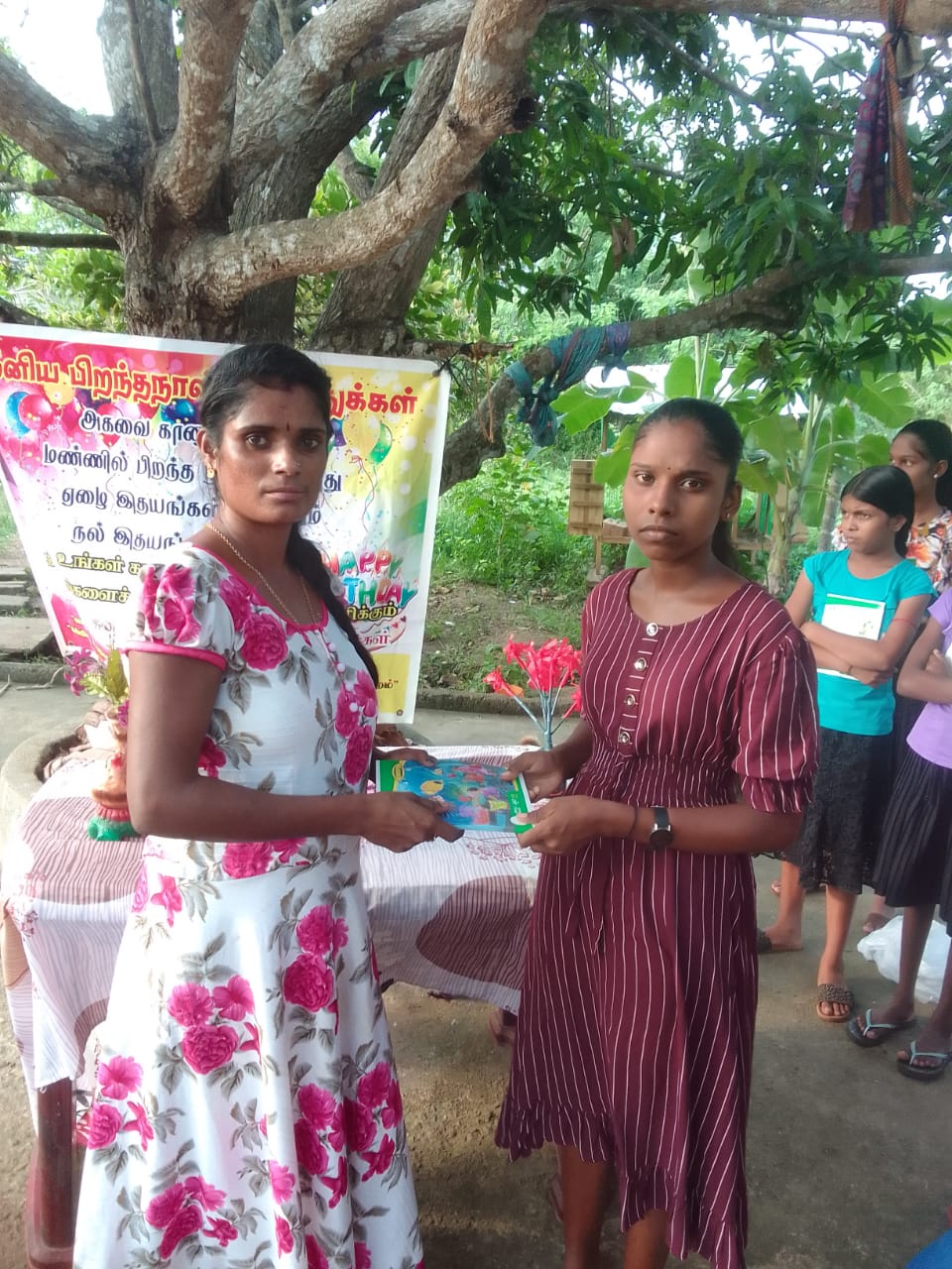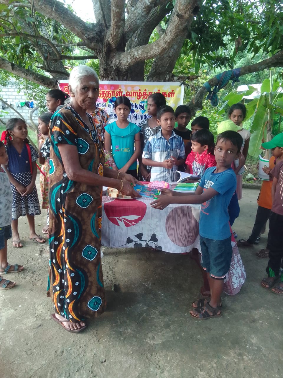 இத்துடன் திரு.திருமதி பாபு மீரா தம்பதிகள் தங்கள் ஏகபுதல்வனான கோபியின் பிறந்த நாளை முன்னிட்டு அக்கிராமத்தில் உள்ள மாலைநேர வகுப்புக்கு செல்லும் மாணவ மாணவிகளுக்கு கற்றலுக்கான அப்பியாசக் கொப்பிகள் வழங்கி வைத்தனர்.