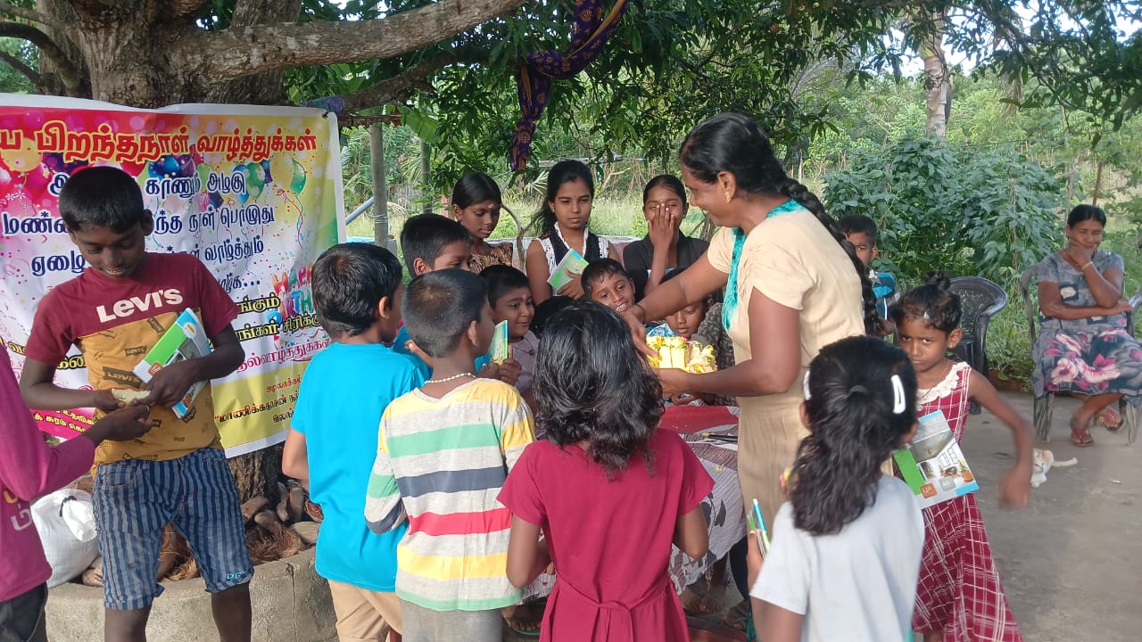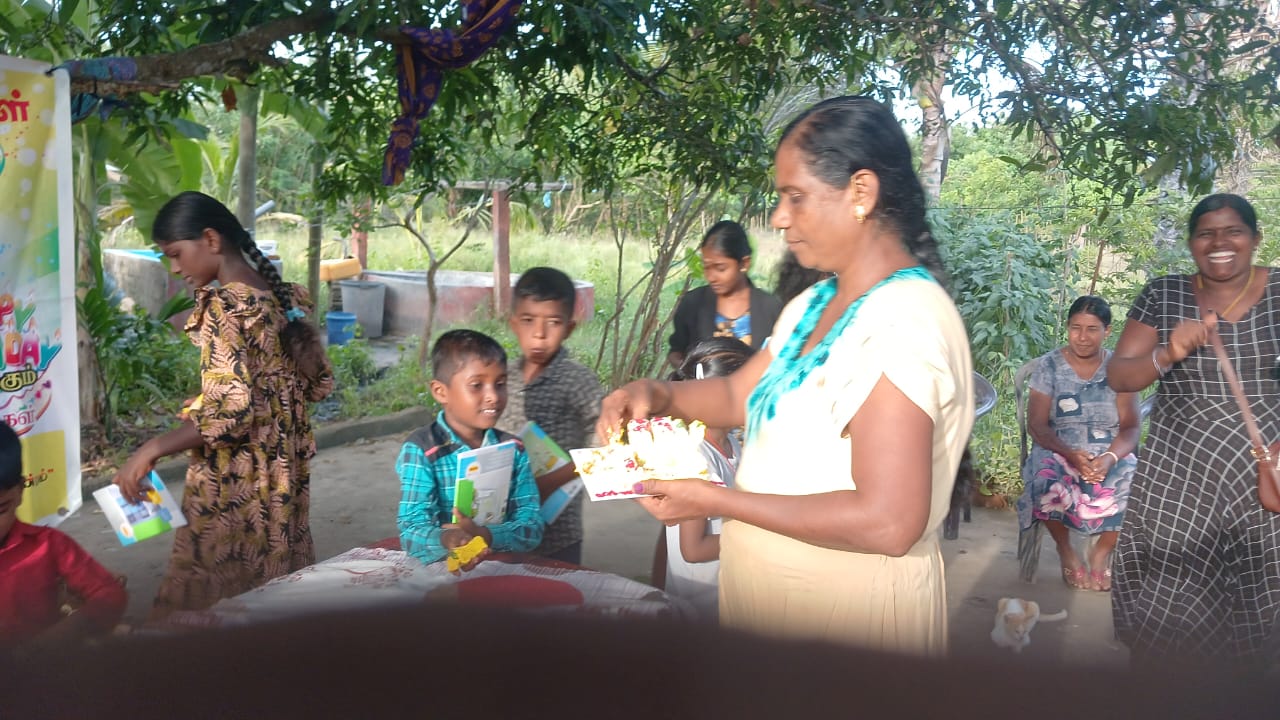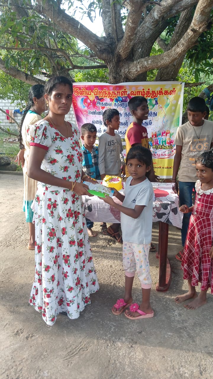 புங்குடுதீவு வழித்தோன்றலாய் லண்டனில் வாழ்ந்து அமரத்துவமடைந்த அமரர்களான சொக்கலிங்கம் நாகேஷ் தம்பதிகளின் இரண்டாவது மகள் ஜெயா என அழைக்கப்படும் பிரான்சில் வசிக்கும் திரு திருமதி சஸ்பாநிதி ஜெயக்குமாரி தம்பதிகளின் செல்வப் புதல்வி கௌசி அவர்கள் இன்று தனது பிறந்தநாளை வன்னிக் கிராமமொன்றில் கொண்டாடினார்.