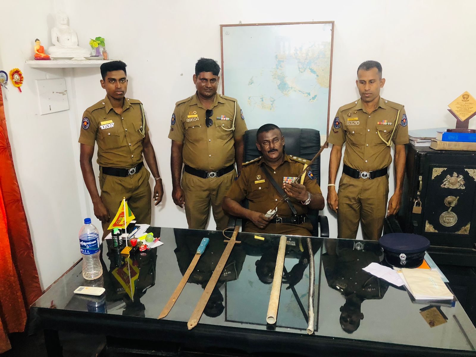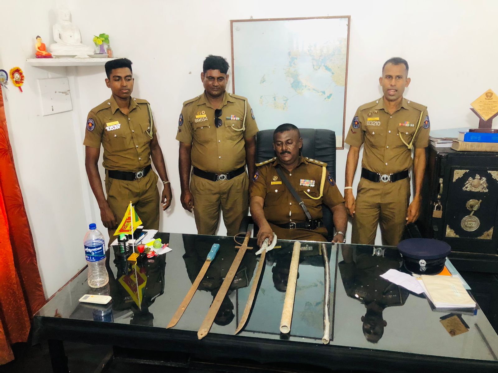 நேற்றிரவு ஊர்காவற்துறை தலைமை பொலிஸ் அதிகாரி விதான பத்திரன தலைமையிலான பொலிஸ் குழுவினரால் புங்குடுதீவு ஒன்பதாம் வட்டாரம் வல்லன் பகுதியிலுள்ள வீடொன்று சுற்றி வளைக்கப்பட்ட போது இரண்டு வாள்கள் மற்றும் கூரிய ஆயுதங்களுடன் தனுஜன் (கில்லி) எனப்படும் நபர் கைது செய்யப்பட்டுள்ளதோடு அங்கிருந்து தப்பியோடிய மற்றொரு நபரான பாலசுதர்சன் (மாட்டு பாலா) என்பவரை தேடி வருவதாகவும் பொலிஸார் தெரிவித்தனர் .