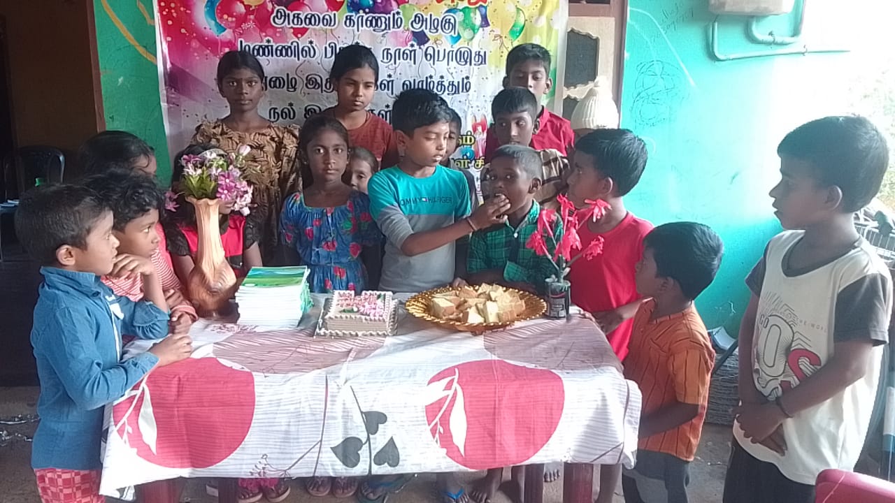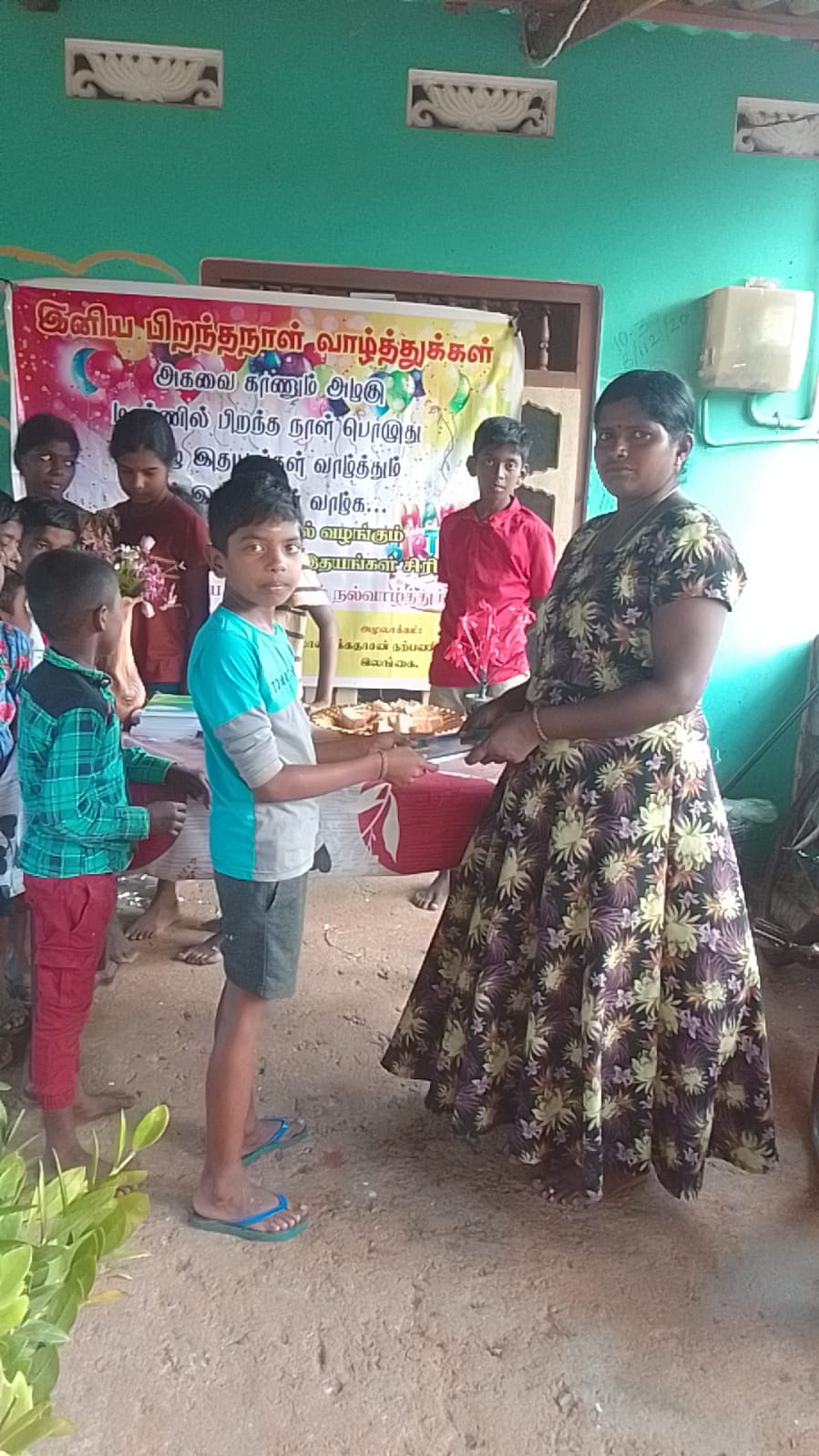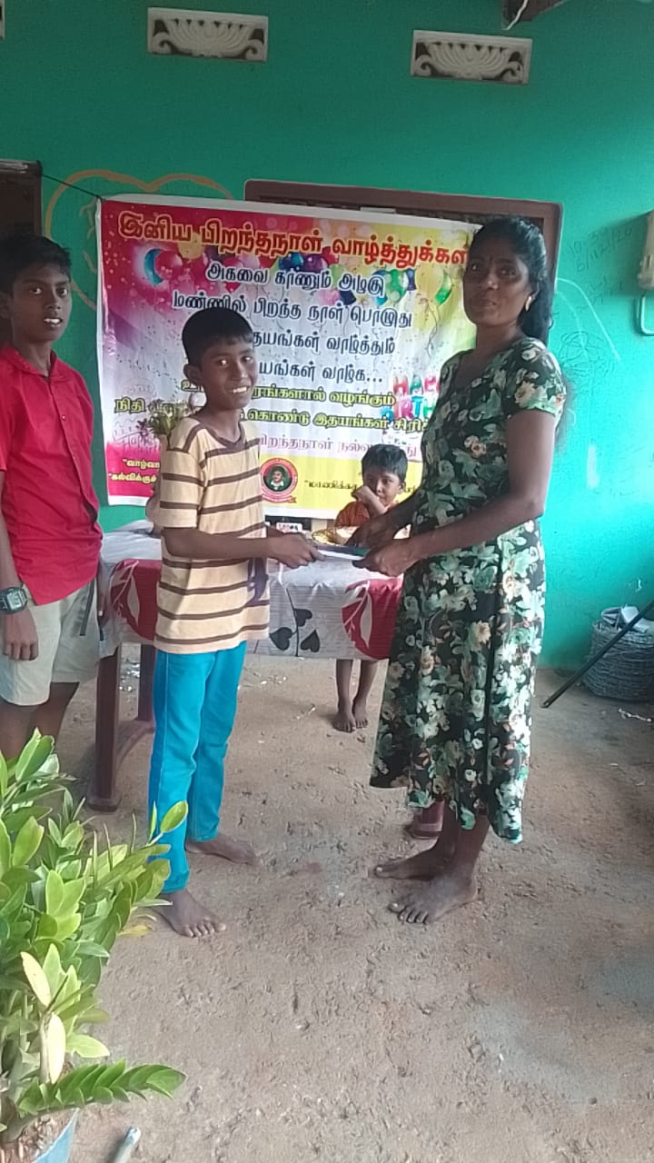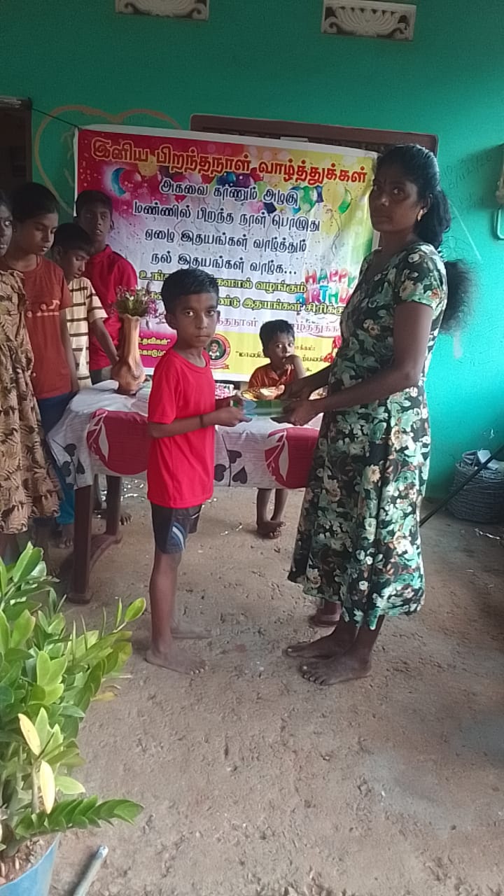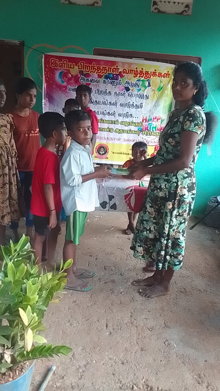 ஆனந்தன் அவர்களின் அறுபதாவது பிறந்த நாள் நிகழ்வுக்கு வருகை தந்த அனைத்து சிறுவர்களுக்கும் பிறந்த நாளைக் கொண்டாடும் ஆனந்தன் அவர்களது குடும்பத்தின் நிதிப்பங்களிப்பில் மாணிக்கதாசன் நற்பணி மன்றத்தின் ஊடாக சிற்றுண்டிகள் வழங்கி வைக்கப்பட்டது.