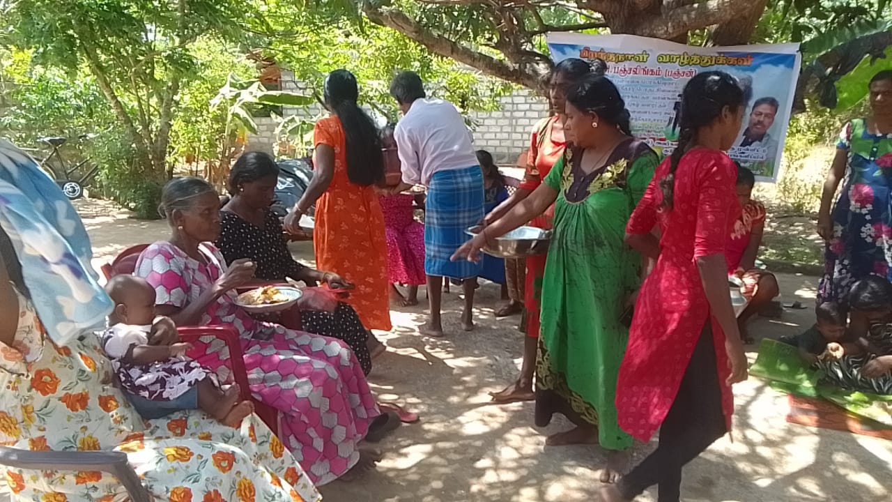 இன்றுமதியம் வன்னி எல்லைக் கிராமமொன்றில் விசேட சைவ உணவு வழங்கி வைக்கப்பட்டதுடன் கலந்து கொண்டோரின் குடும்ப உறவுகளுக்கும், மற்றும் வயது முதிர்ந்தோர், தேவையுடையோர் எனப் பலருக்கும் வீடுகளுக்கும் உணவு வழங்கி வைக்கப்பட்டது விசேட சிறப்பம்சமாகும்.