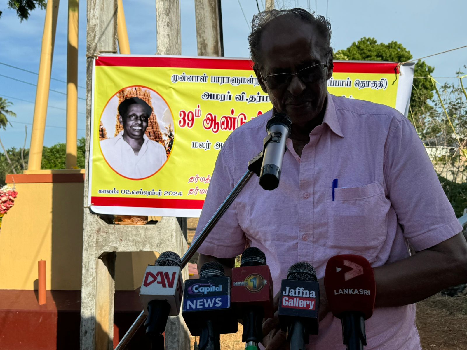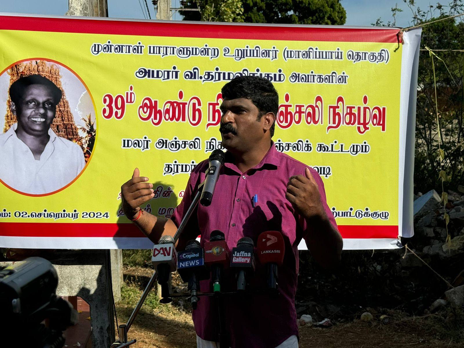 முன்னாள் நாடாளுமன்ற உறுப்பினர் வி.தர்மலிங்கம் அவர்களின் 39ம் ஆண்டு நினைவஞ்சலி இன்றையதினம் (02) அனுஷ்டிக்கப்பட்டது.