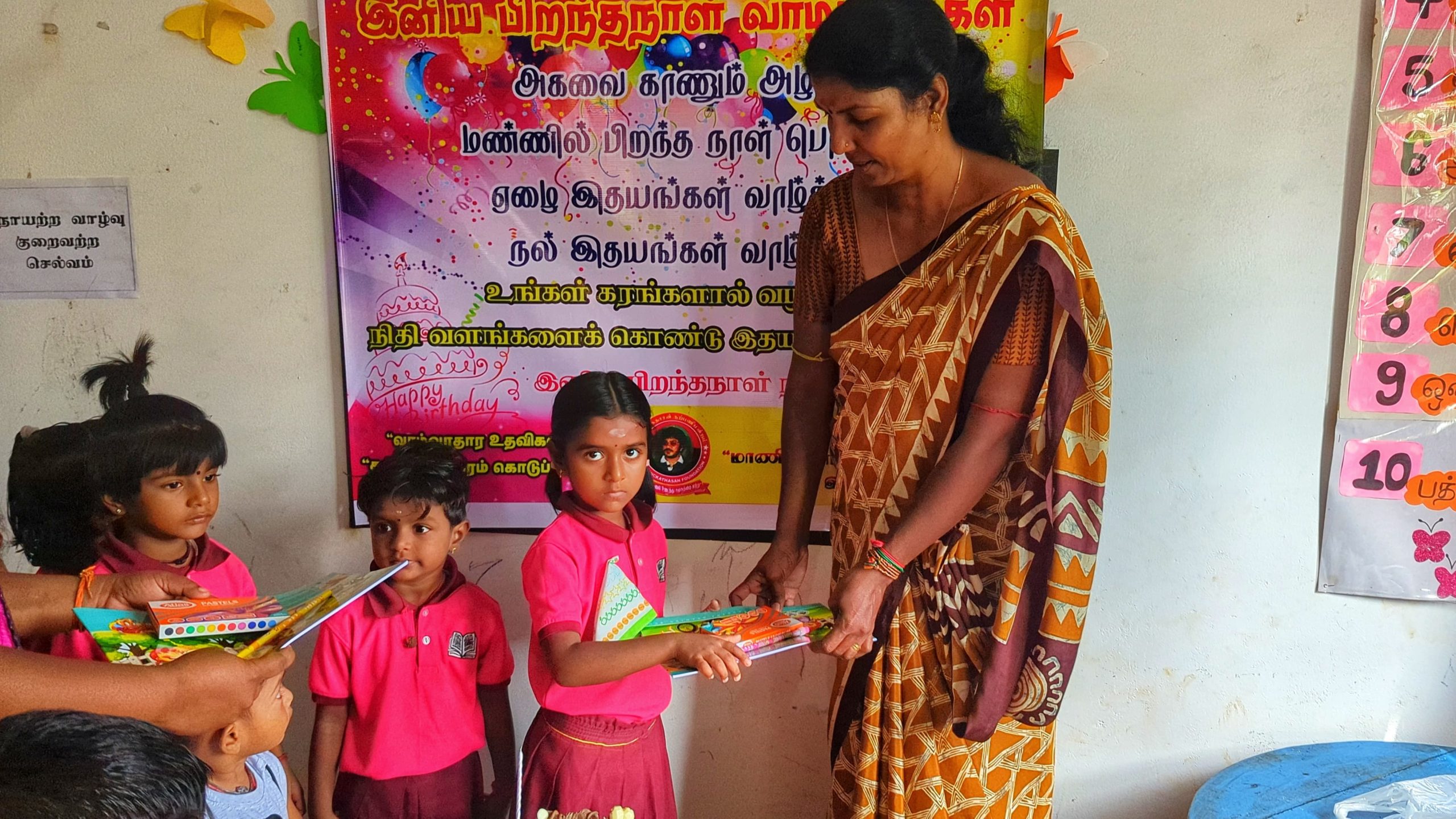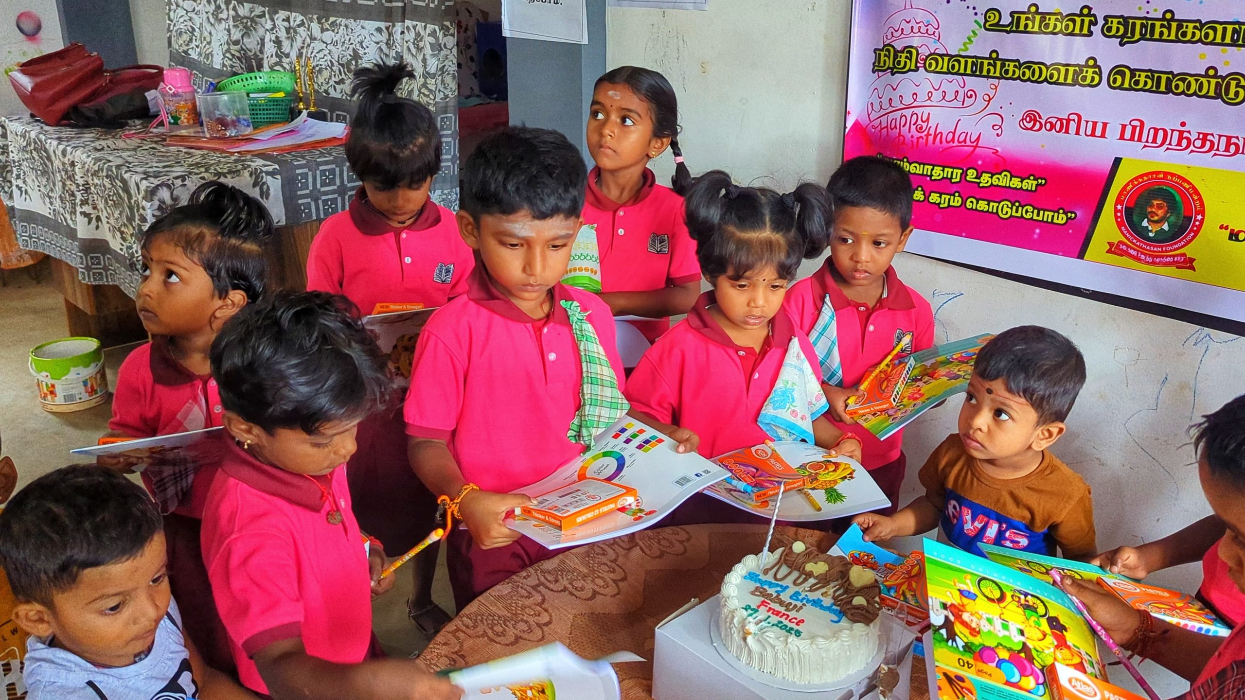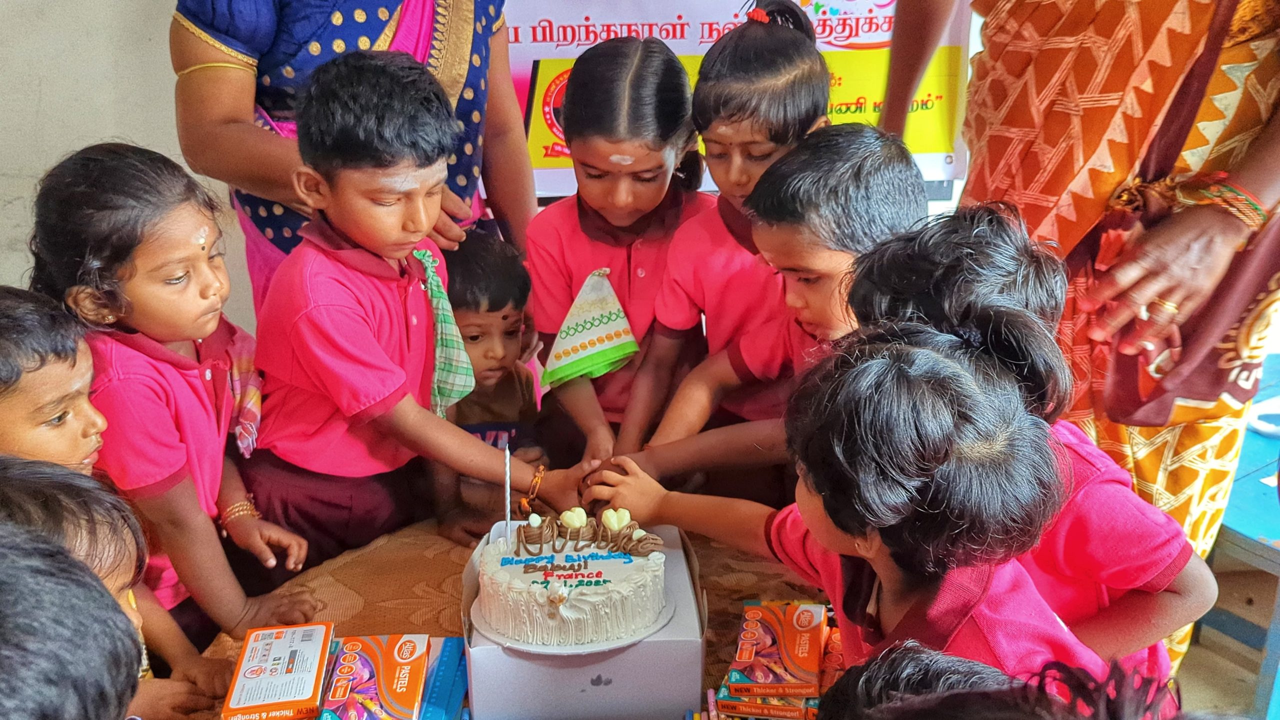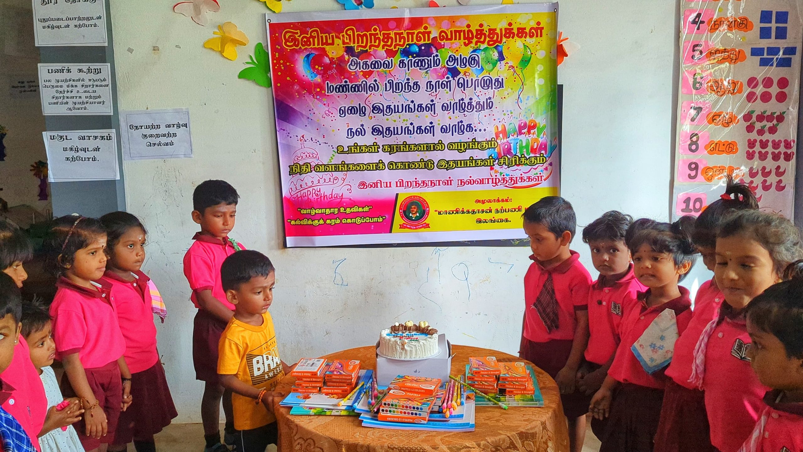 பிறந்தநாளான இன்று அப்பிரதேச மாணவமாணவிகள் சிலரும் அவரது பெற்றோர்களும் இணைந்து பிறந்தநாள் கேக் வெட்டி, வாழ்த்துப் பாடி சந்தோஷமாகக் கொண்டாடப்பட்டது. கலந்து கொண்ட அனைவருக்கும் சிற்றுண்டிகள் வழங்கி வைக்கப்பட்டது.