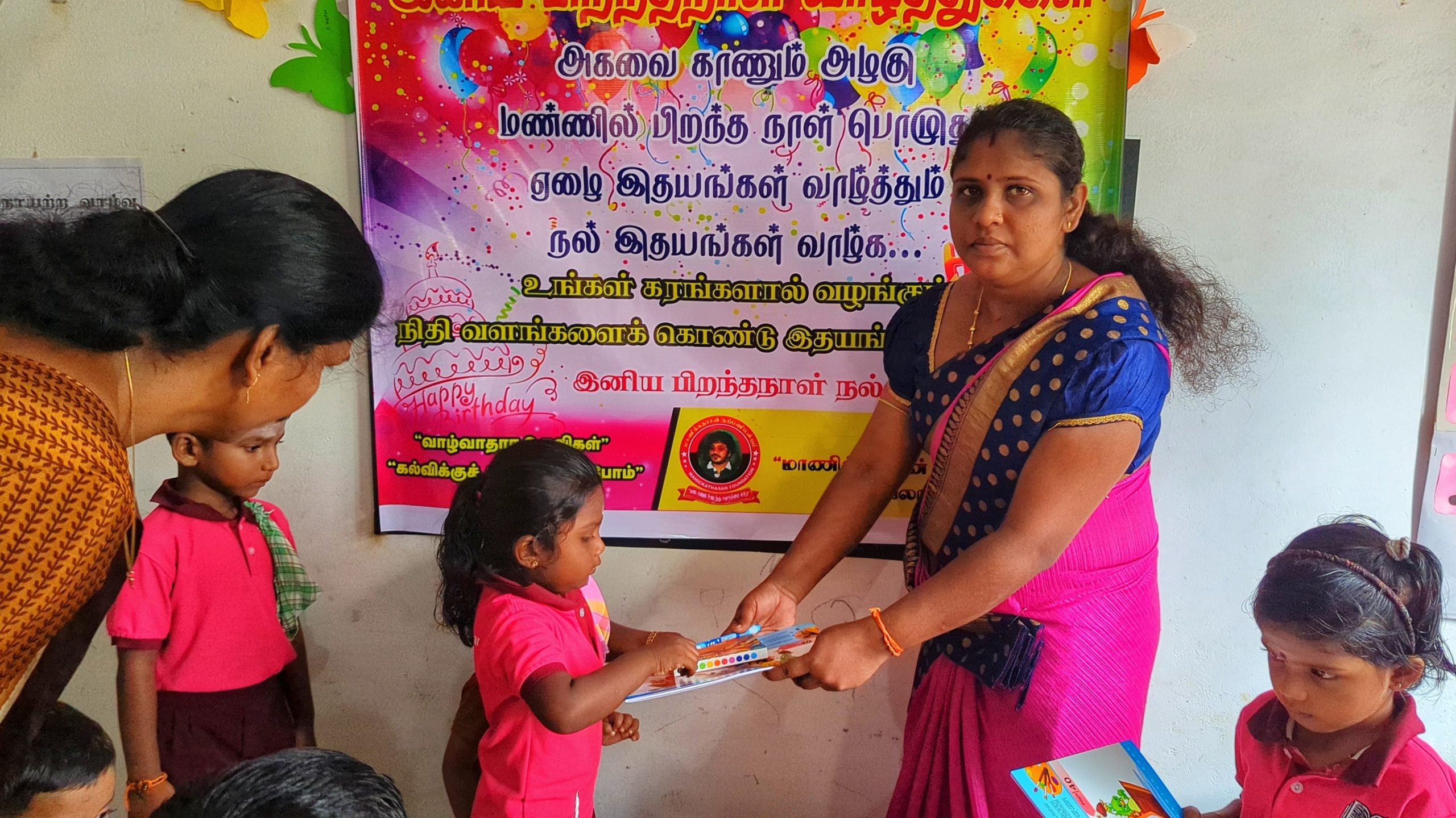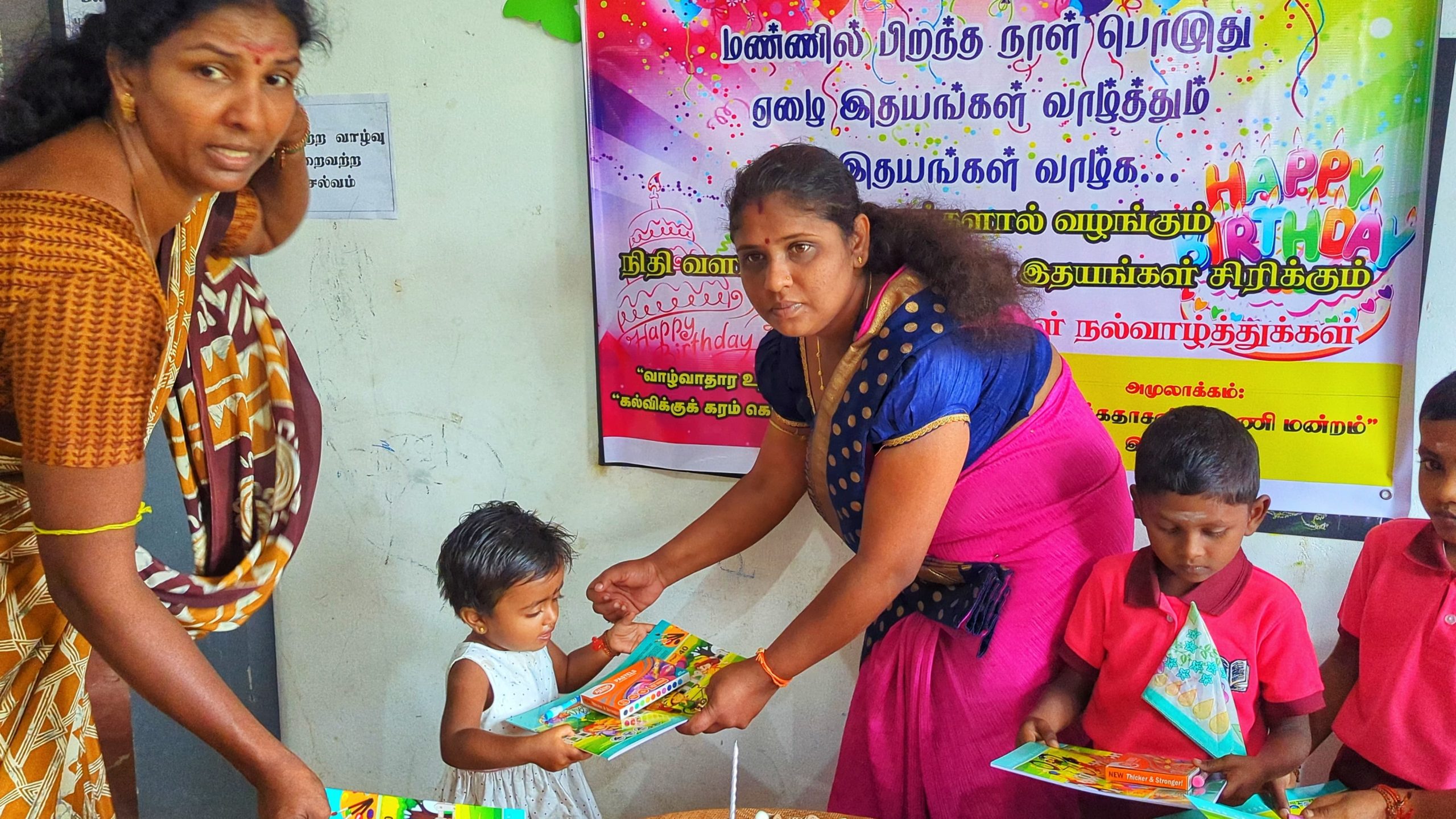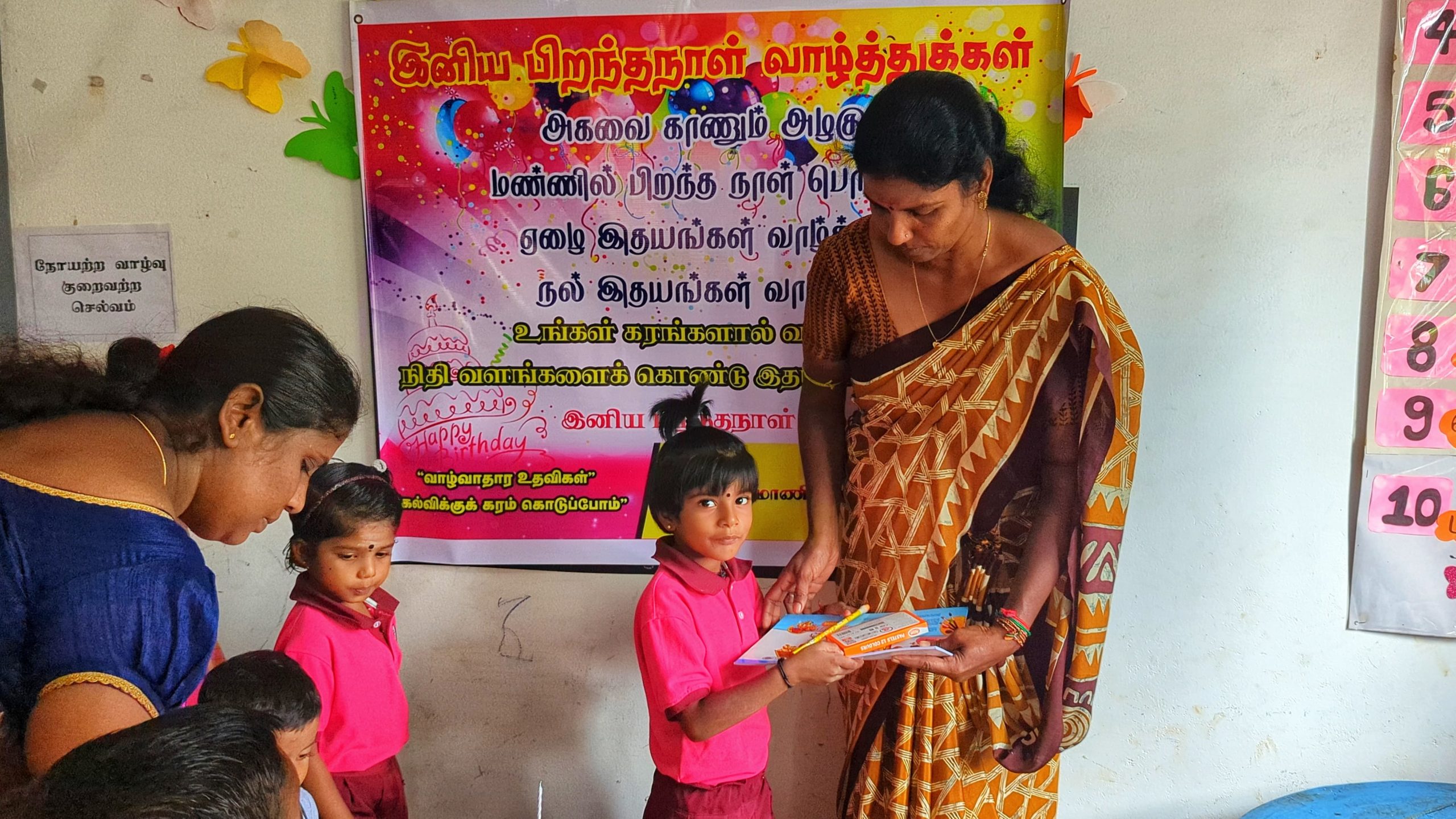 பிறந்தநாளான இன்று அப்பிரதேச மாணவமாணவிகள் சிலரும் அவரது பெற்றோர்களும் இணைந்து பிறந்தநாள் கேக் வெட்டி, வாழ்த்துப் பாடி சந்தோஷமாகக் கொண்டாடப்பட்டது. கலந்து கொண்ட அனைவருக்கும் சிற்றுண்டிகள் வழங்கி வைக்கப்பட்டது.