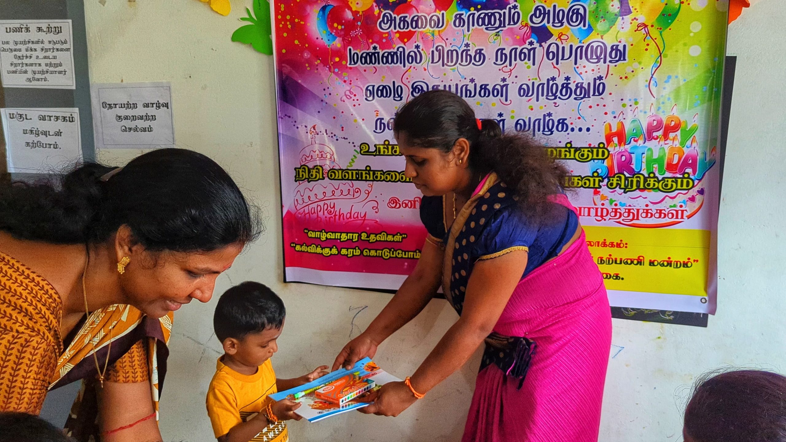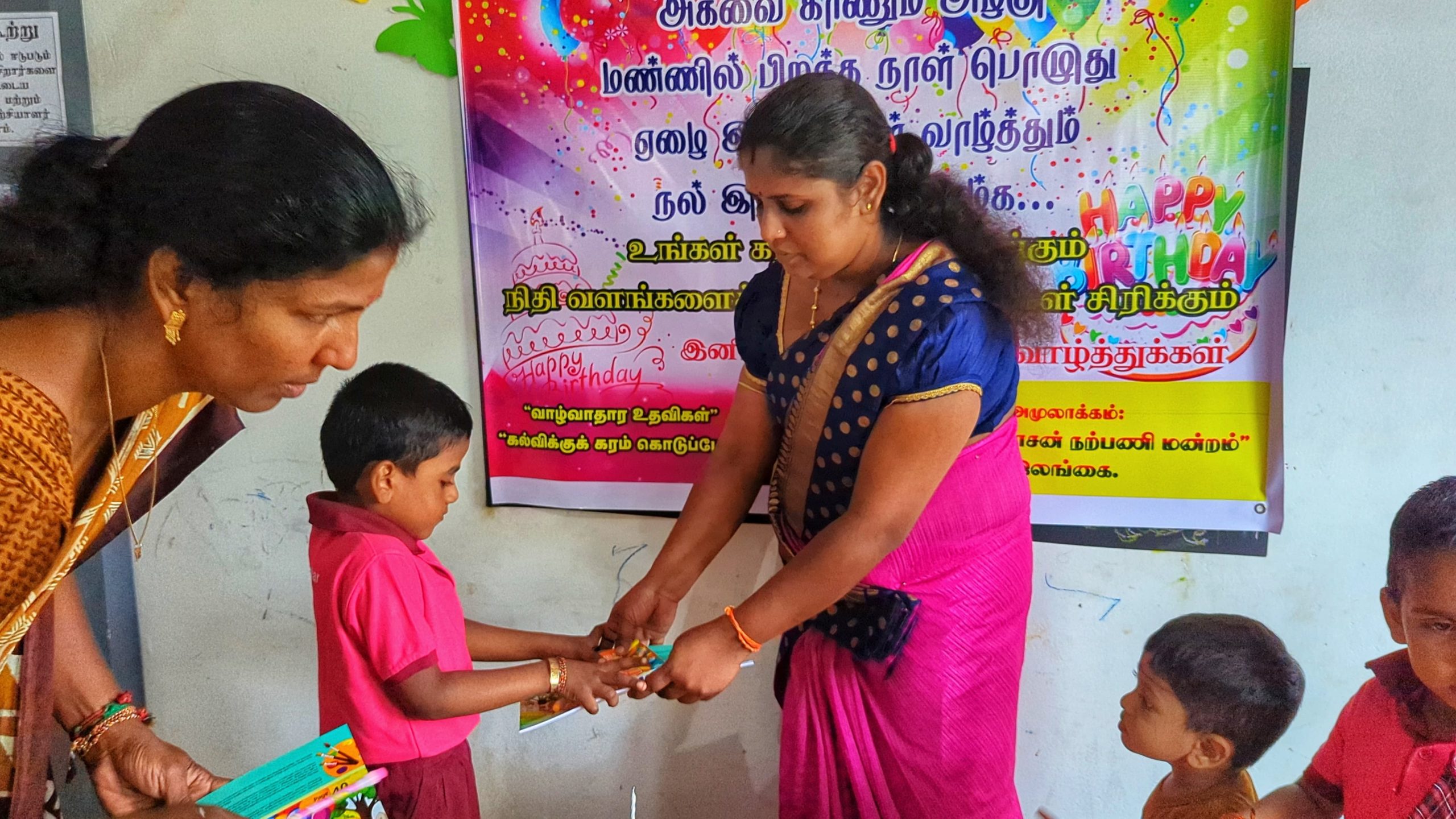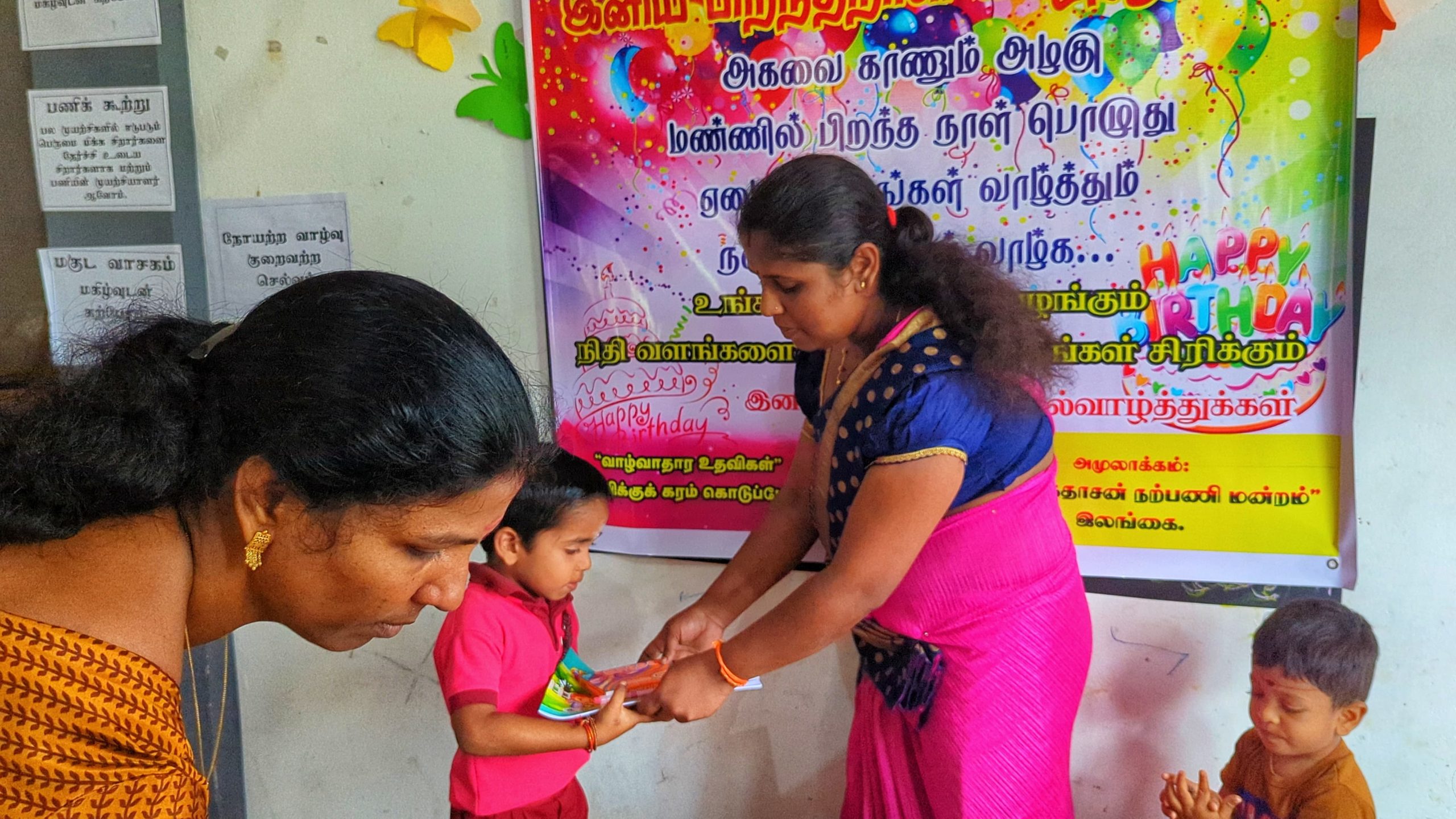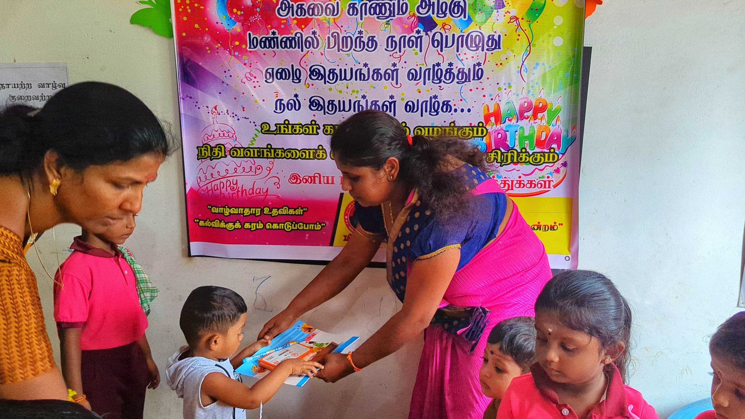பிறந்தநாளான இன்று அப்பிரதேச மாணவமாணவிகள் சிலரும் அவரது பெற்றோர்களும் இணைந்து பிறந்தநாள் கேக் வெட்டி, வாழ்த்துப் பாடி சந்தோஷமாகக் கொண்டாடப்பட்டது. கலந்து கொண்ட அனைவருக்கும் சிற்றுண்டிகள் வழங்கி வைக்கப்பட்டது.