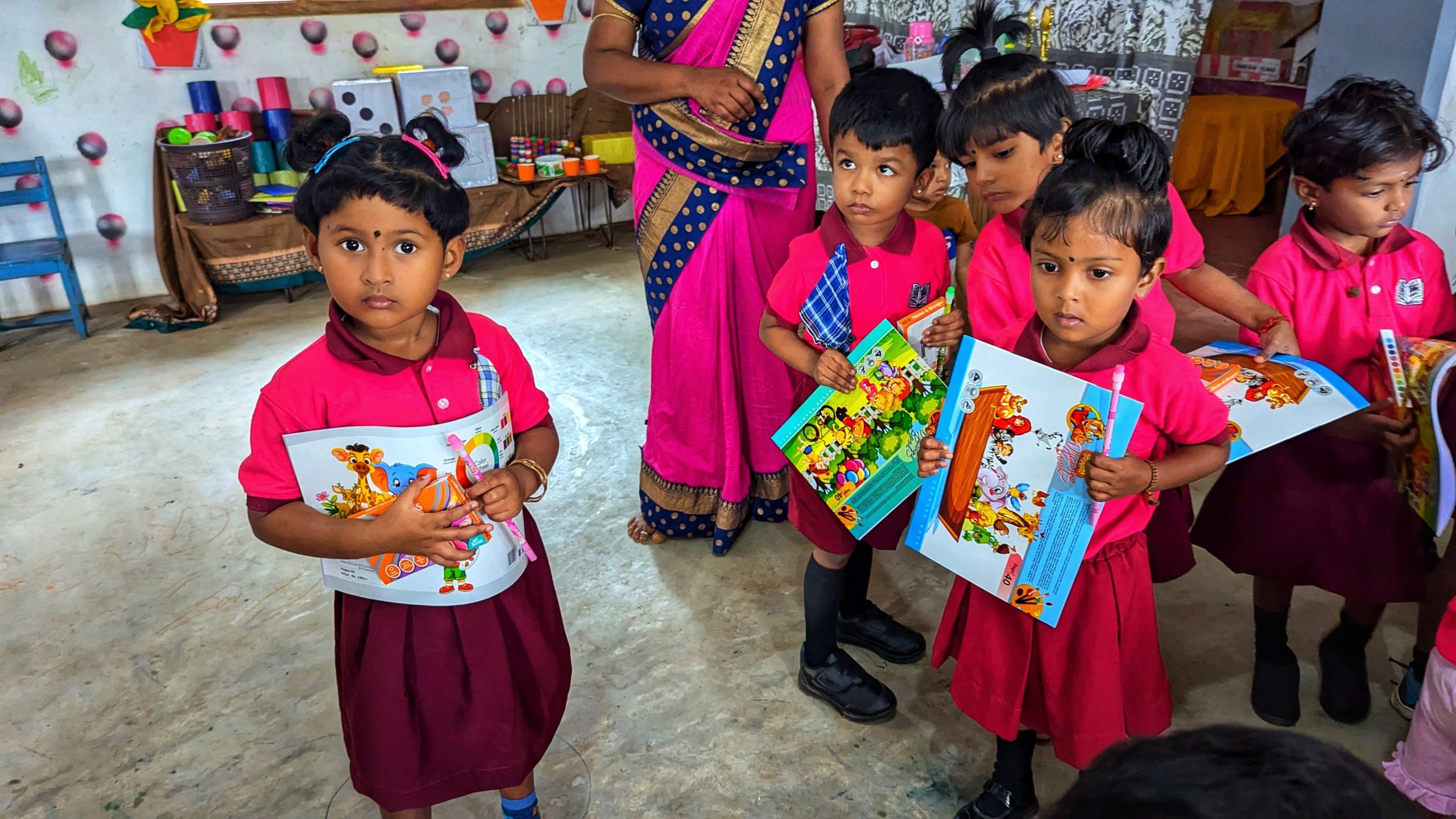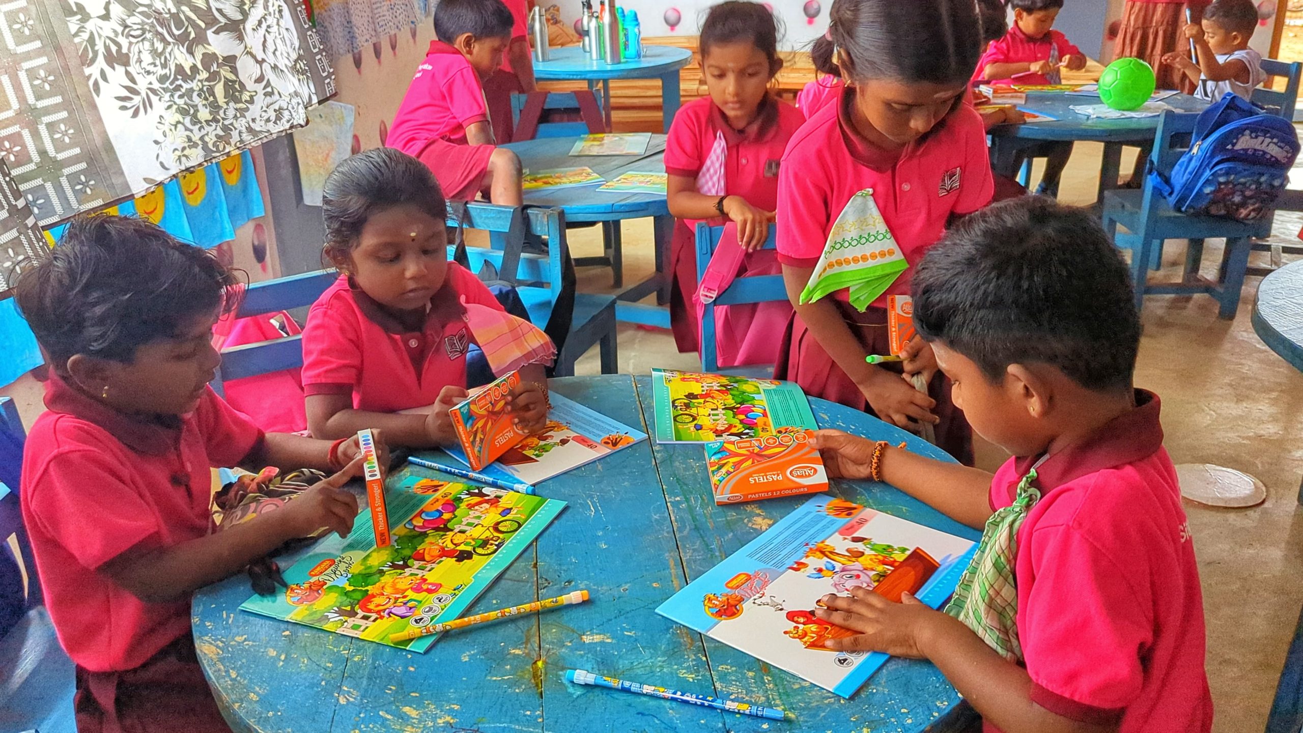 அதேநேரம் செல்வன்.பாபுஜி அவர்களது நிதிப் பங்களிப்பில் பிறந்தநாள் நிகழ்வில் கலந்து கொண்ட மாணவ மாணவியர்களுக்கும், பாலர் பாடசாலை குழந்தைகளுக்கும் கற்றல் உபகரணங்களாக கற்றலுக்கான வசதிக்கு சித்திரக் கொப்பிகள், கலர் சோக் பெட்டிகள், பென்சில்கள் வழங்கி வைக்கப்பட்டது..