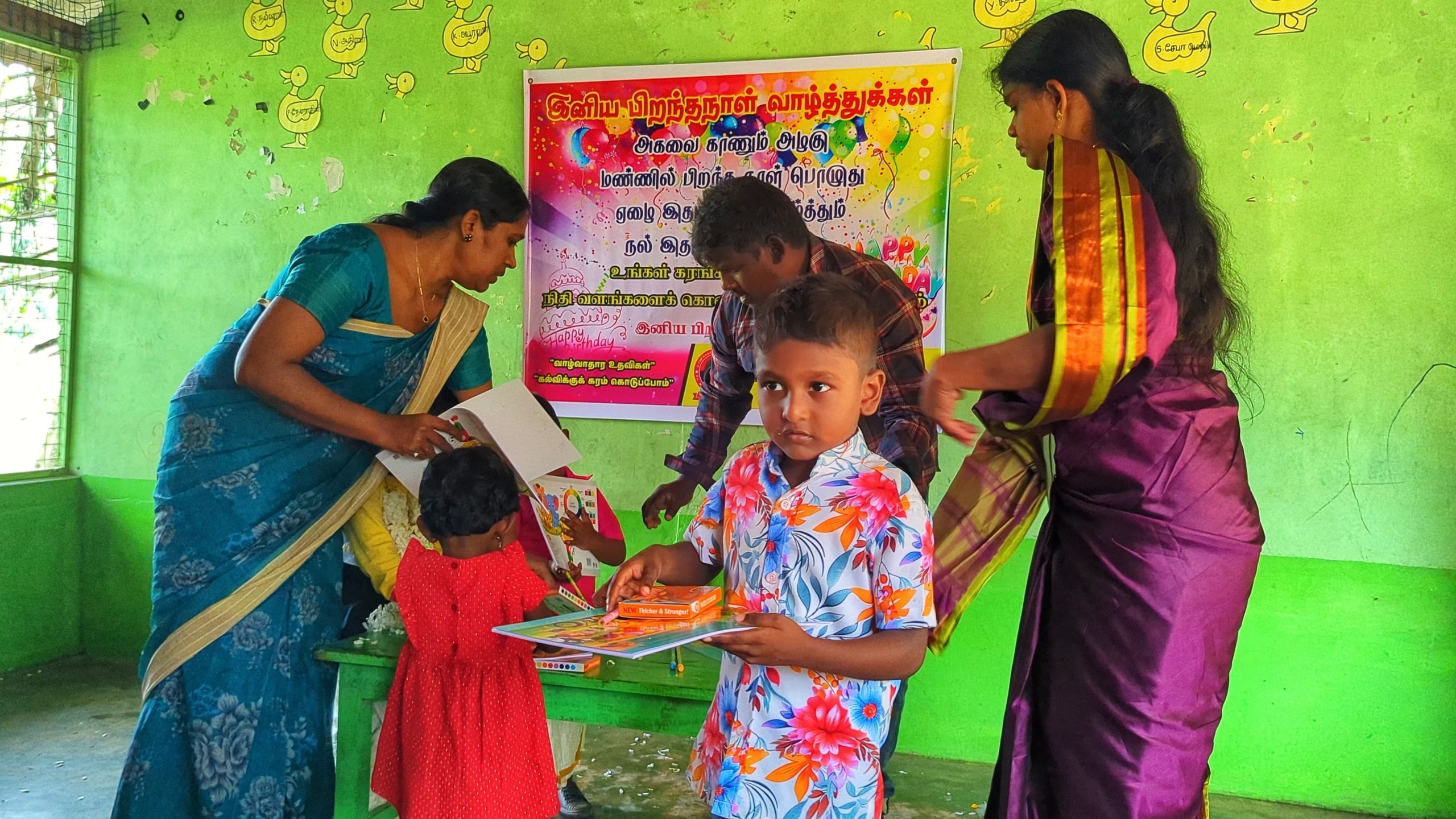இதேவேளை சுதா என எல்லோராலும் அன்புடன் அழைக்கப்படும் திரு சுதாகரன் அவர்களது குடும்பத்தின் முழுமையான நிதிப் பங்களிப்பில் கலந்து கொண்ட முன்பள்ளி மாணவ மாணவிகளுக்கு கற்றல் உபகரணங்களாக சித்திரக் கொப்பிகளும், கலர் சொக் பெட்டிகள், பென்சில்களும் வழங்கி வைக்கப்பட்டது.