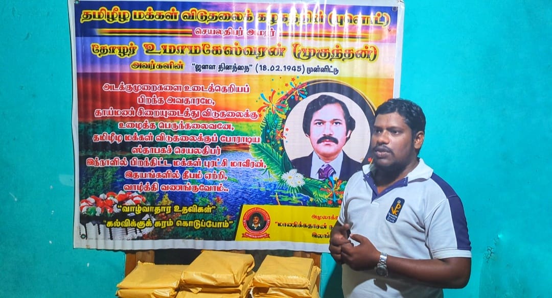 ஈழவிடுதலைப் போராட்ட முன்னோடிகளில் ஒருவரும், மாபெரும் மக்கள் சேனையான புளொட் எனும் தமிழீழ மக்கள் விடுதலைக் கழகத்தின் ஸ்தாபகரும், அதன் செயலதிபருமான மக்கள் போராட்டத்தின் மாபெரும் தளபதியான தோழர் முகுந்தன் என அறியப்பட்ட அமரர் கதிர்காமர உமாமகேஸ்வரன் அவர்களது என்பதாவது பிறந்தநாள் நினைவு, தாயகத்தில் மாணிக்கதாசன் நற்பணி மன்றத்தின் ஒழுங்கமைப்பில் “புலம்பெயர் புளொட் தோழர்கள்” சிலரின் நிதிப் பங்களிப்பில், கற்றலுக்கான உபகரணங்கள் வழங்கிக் கொண்டாடப்பட்டது.