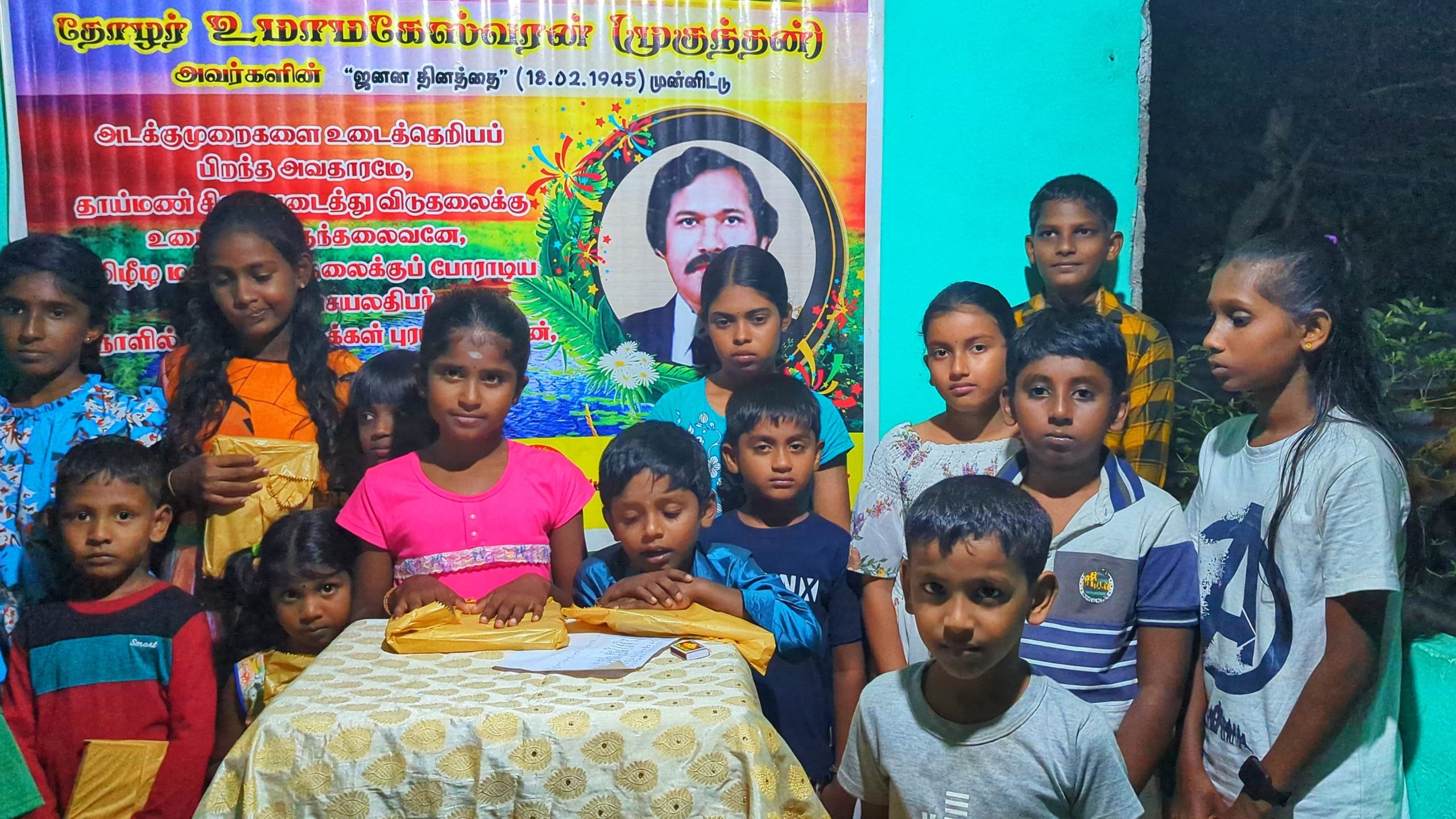 நிகழ்வில் கலந்து கொண்ட கிராம மக்கள் சிறியோர் முதல், பெரியோர் வரை தோழர்.முகுந்தன் எனும் செயலதிபர் உமாமகேஸ்வரன் அவர்களின் பிறந்தநாளை கொண்டாடும்முகமாக “அவரது ஆத்மா சாந்தியடைய வேண்டி” தீபாராதனை காடடப்பட்டு, தேவார பாராயணம் பாடப்பட்டு அஞ்சலி செலுத்தினர்.