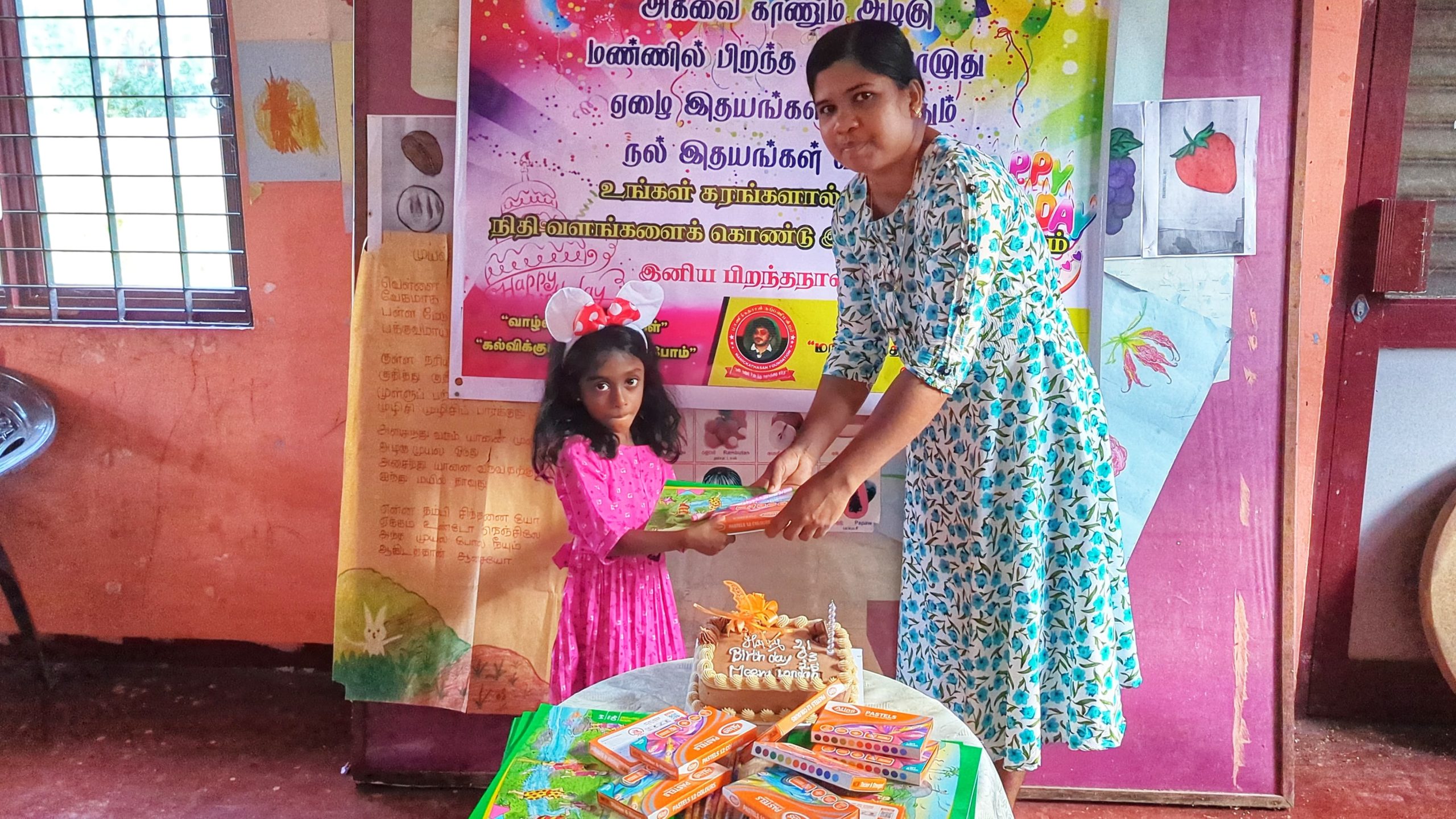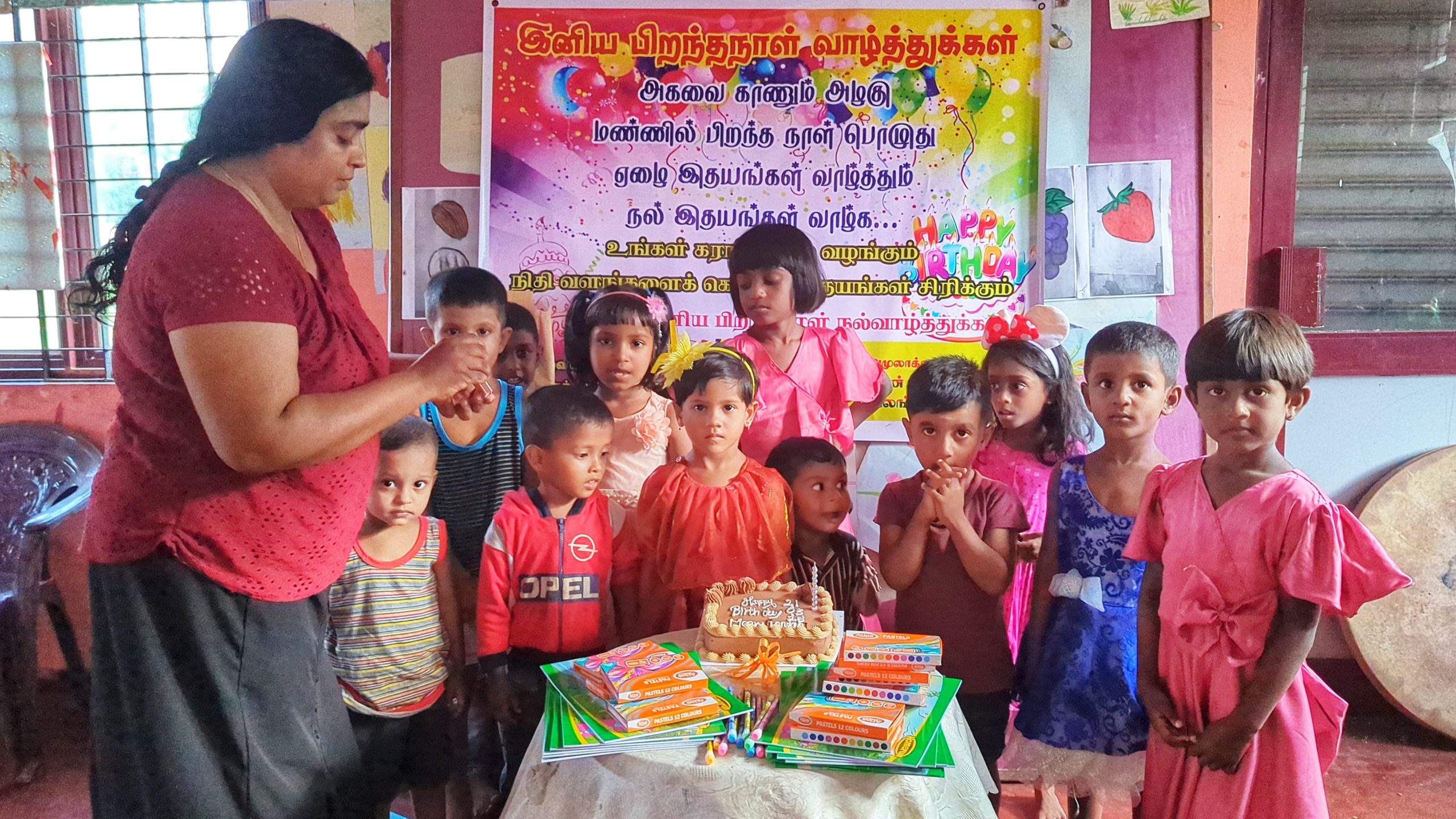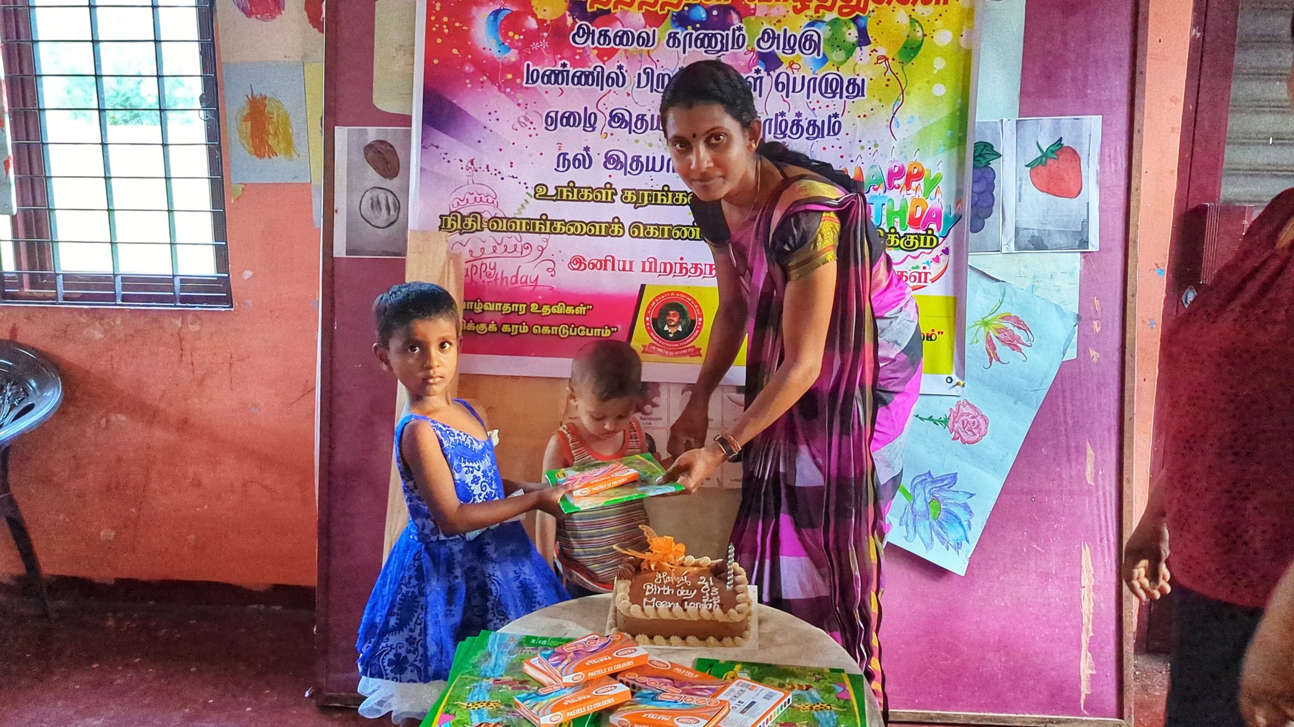 முதல் நிகழ்வாக மாணவ சிறார்களும், பெற்றோர்கள் கலந்து கொண்டு லண்டனில் வசிக்கும் மீரா அவர்களின் சார்பாக கேக் வெட்டி பிறந்த நாள் பாட்டுப்பாடி மகிழ்ச்சியாக கொண்டாடப்பட்டது.